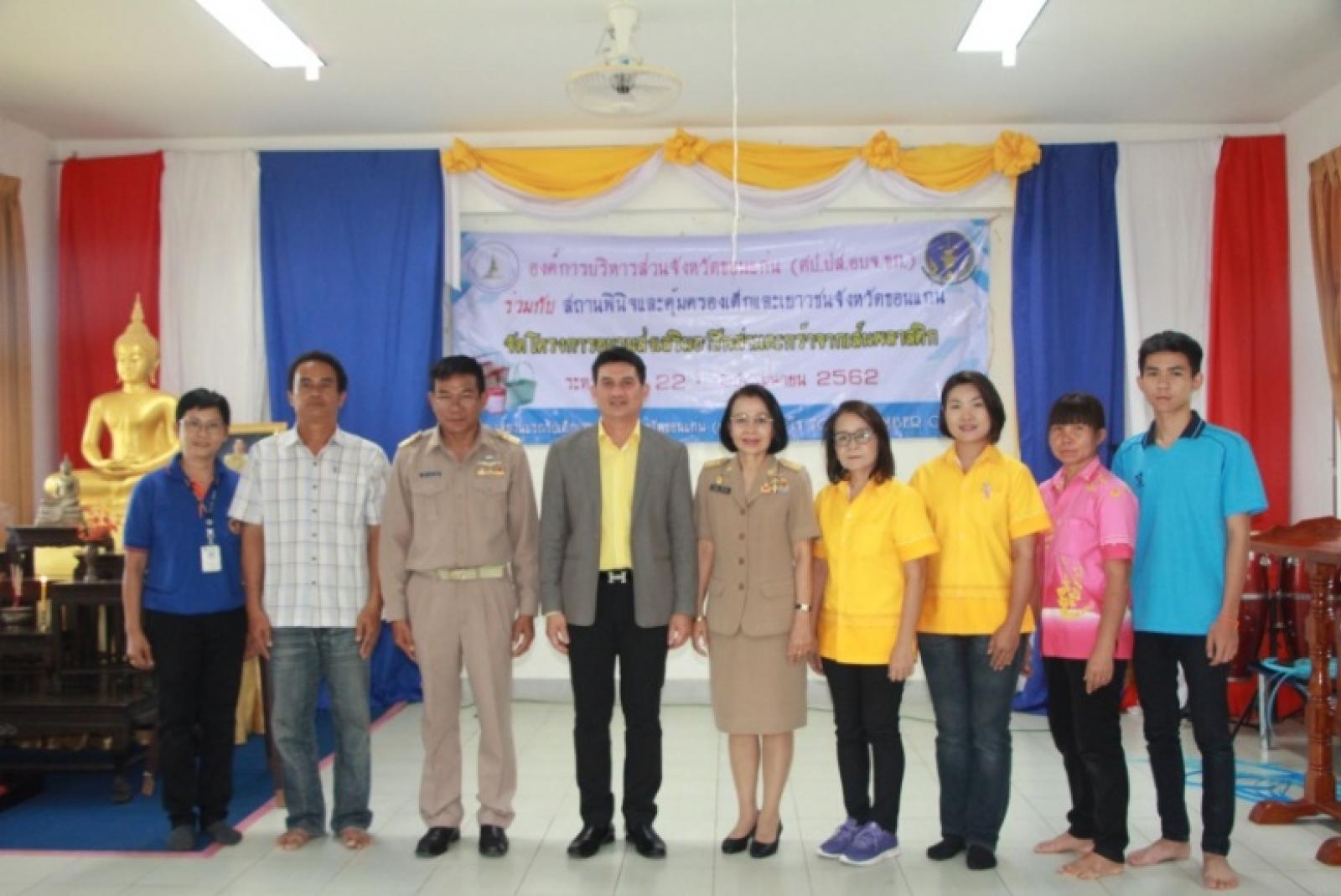 เมื่อวันที่ 22 เมษายน 2562 เวลา 10.00 น. ดร.พงษ์ศักดิ์ ตั้งวานิชกพงษ์ นายก อบจ.ขอนแก่นมอบหมายให้ นายสิทธิกุล ภูคำวงศ์ รองนายก อบจ.ขอนแก่นเป็นประธานเปิดโครงการอบรมส่งเสริมอาชีพสานตะกร้าจากเส้นพลาสติก พร้อมด้วยนางสาวนงลักษณ์ รัตนจันทร์ รองปลัด อบจ.ขอนแก่น ร่วมเป็นเกียรติในโครงการโดยได้รับการกล่าวรายงานจากนายสุรวิทย์ เลิกนอกนครภูมิ หัวหน้าสถานแรกรับเด็กและเยาวชน ณ สถานพินิจและคุ้มครองเด็กและเยาวชนจังหวัดขอนแก่น ต.ศิลา อ.เมืองขอนแก่น จ.ขอนแก่น