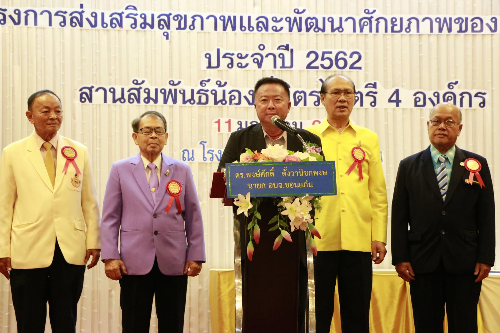 วันที่ 11 มกราคม 2562 เวลา 10.00น. ดร.พงษ์ศักดิ์ ตั้งวานิชกพงษ์ นายกอบจ.ขอนแก่น เป็นประธานในพิธีเปิดโครงการอบรมส่งเสริมสุขภาพและพัฒนาศักยภาพของผู้สูงอายุ ประจำปี 2562 โดยมีนายอุดม เย็นสบาย ประธานชมรมสร้างเสริมสุขภาพผู้สูงอายุศูนย์อนามัยที่7 ขอนแก่น เป็นผู้กล่าวรายงาน ในโอกาสนี้มี ส.อบจ.ขอนแก่น อ.เมืองขอนแก่น เขต 2 นายวุฒิพร ศรีมังกรแก้ว, นางพัฒนาวดี วิริยปิยะ ปลัด อบจ.ขอนแก่น พร้อมคณะผู้บริหาร และหัวหน้าส่วนราชการสังกัด อบจ.ขอนแก่น ร่วมเป็นเกียรติในพิธี ณ โรงแรมวีวิช ขอนแก่น อ.เมืองขอนแก่น จังหวัดขอนแก่น