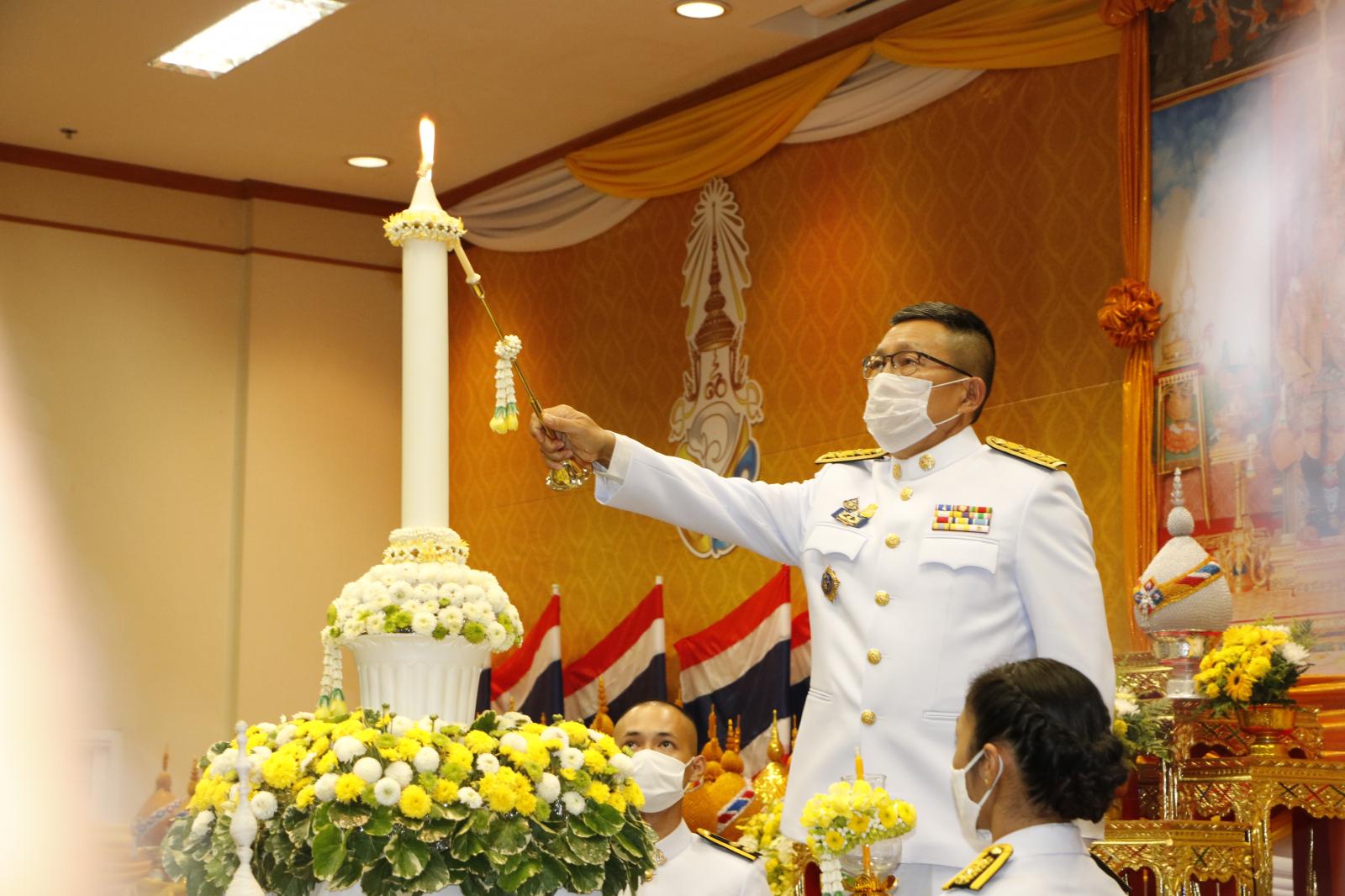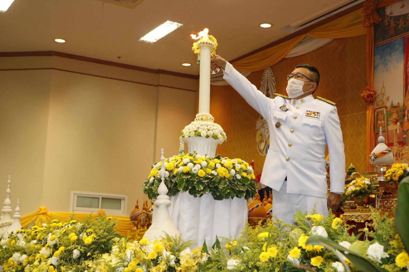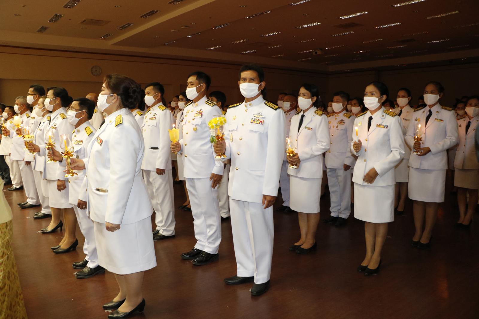 ร่วมพิธีถวายเครื่องสักการะและวางพานพุ่มและพิธีจุดเทียนถวายพระพรชัยมงคล