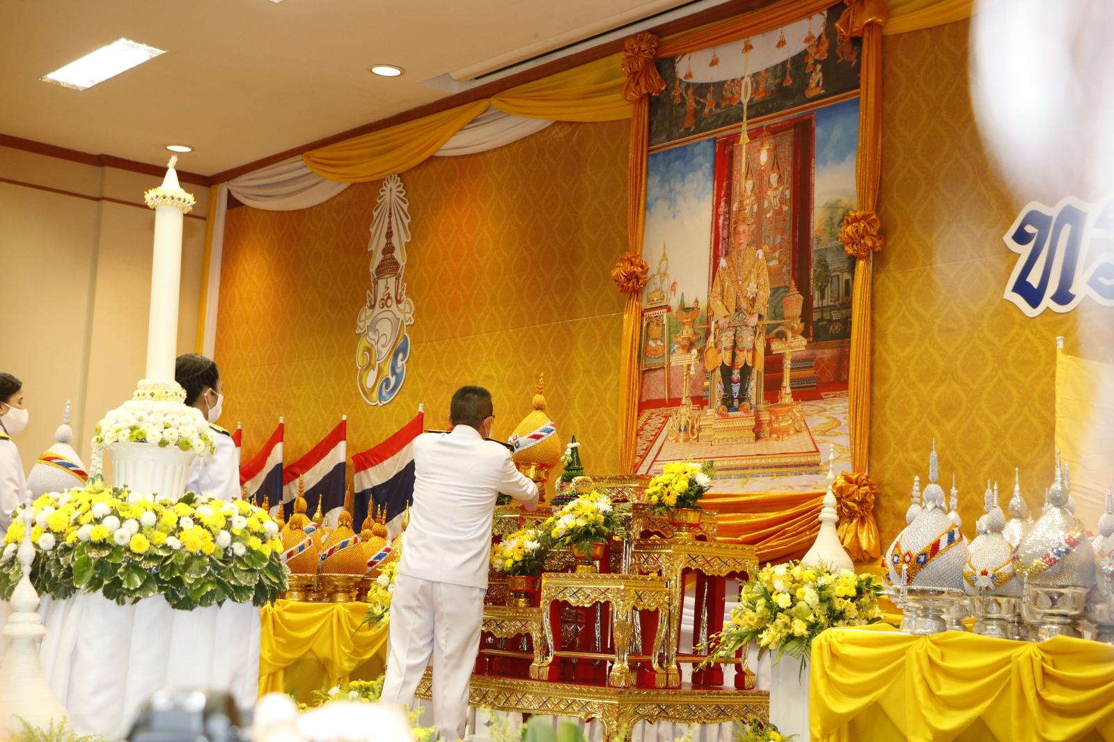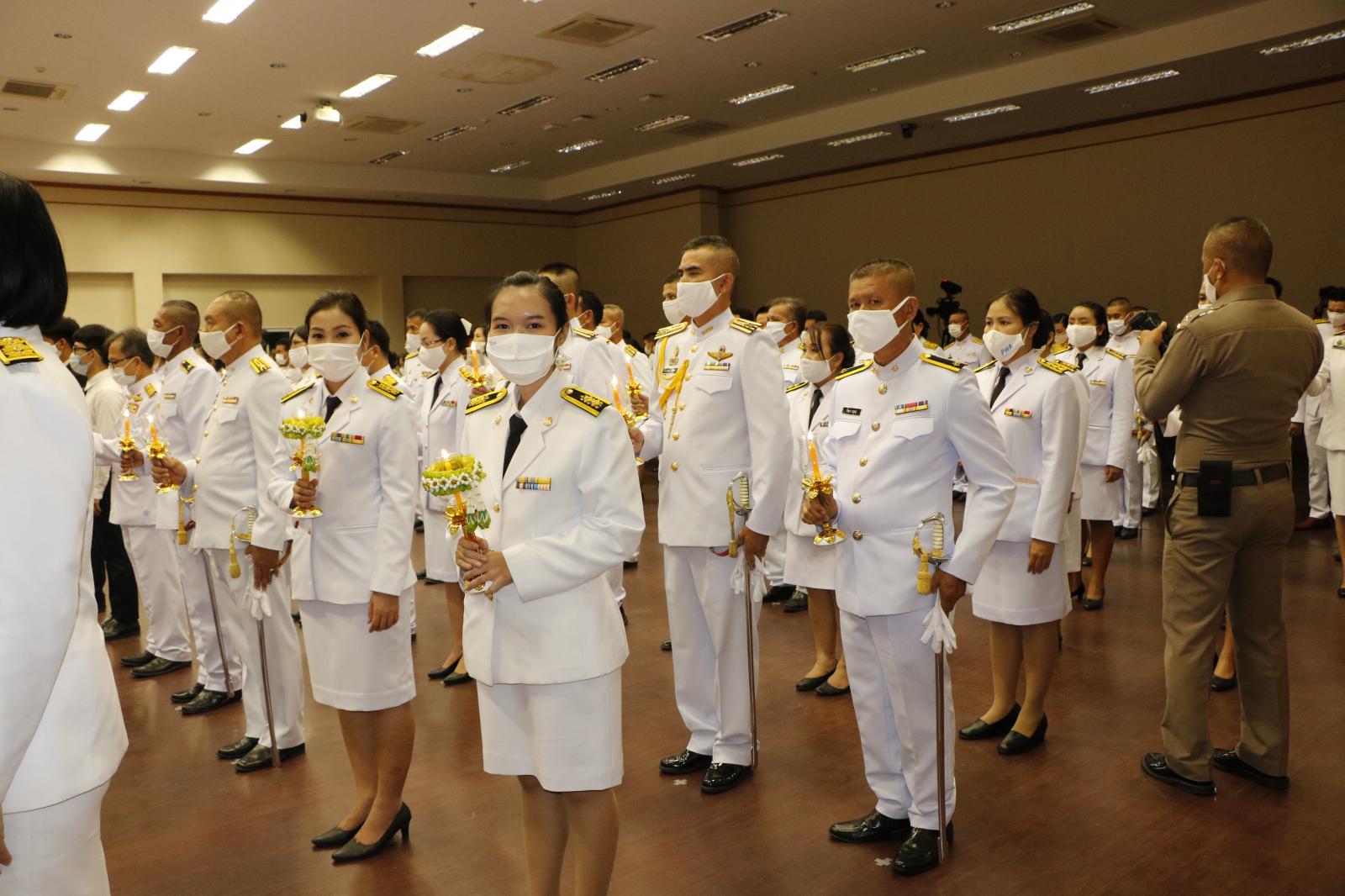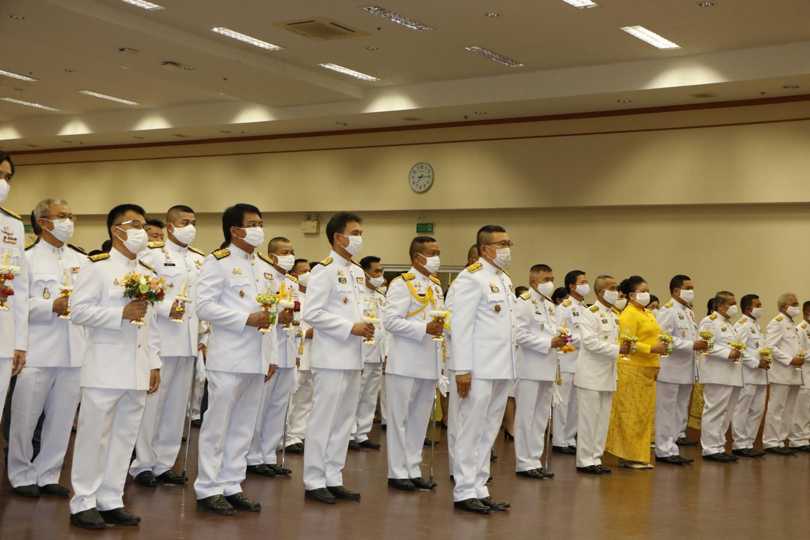 ร่วมพิธีถวายเครื่องสักการะและวางพานพุ่มและพิธีจุดเทียนถวายพระพรชัยมงคล