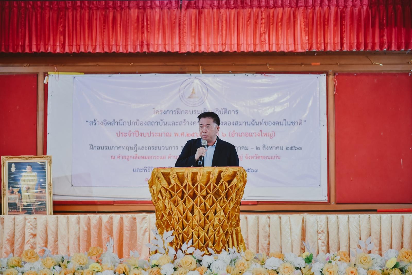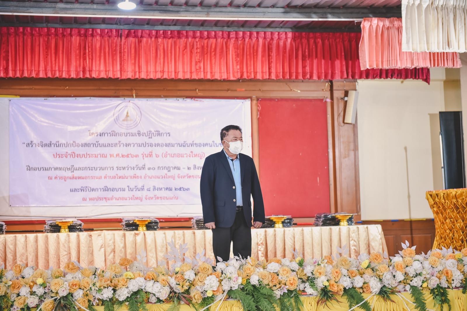วันที่ 8 สิงหาคม 2563 เวลา 13.30 น. ดร.พงษ์ศักดิ์ ตั้งวานิชกพงษ์ นายกองค์การบริหารส่วนจังหวัดขอนแก่น เป็นประธานปิดโครงการอบรมเชิงปฏิบัติการ"สร้างจิตสำนึกปกป้องสถาบันและสร้างความปรองดองสมานฉันท์ของคนในชาติ" ประจำปีงบประมาณ พ.ศ.2563 รุ่นที่ 6 (อ.แวงใหญ่) พร้อมมอบเกียรติบัตรแก่คณะครูฝึก วิทยากร เจ้าหน้าที่ และ มอบวุฒิบัตรผู้ผ่านการฝึกอบรม โดยมีนายทองสุข ธนูรัตน์ สมาชิกสภาองค์การบริหารส่วนจังหวัดขอนแก่น เขต อ.แวงใหญ่ กล่าวรายงาน ณ หอประชุมอำเภอแวงใหญ่ จังหวัดขอนแก่น