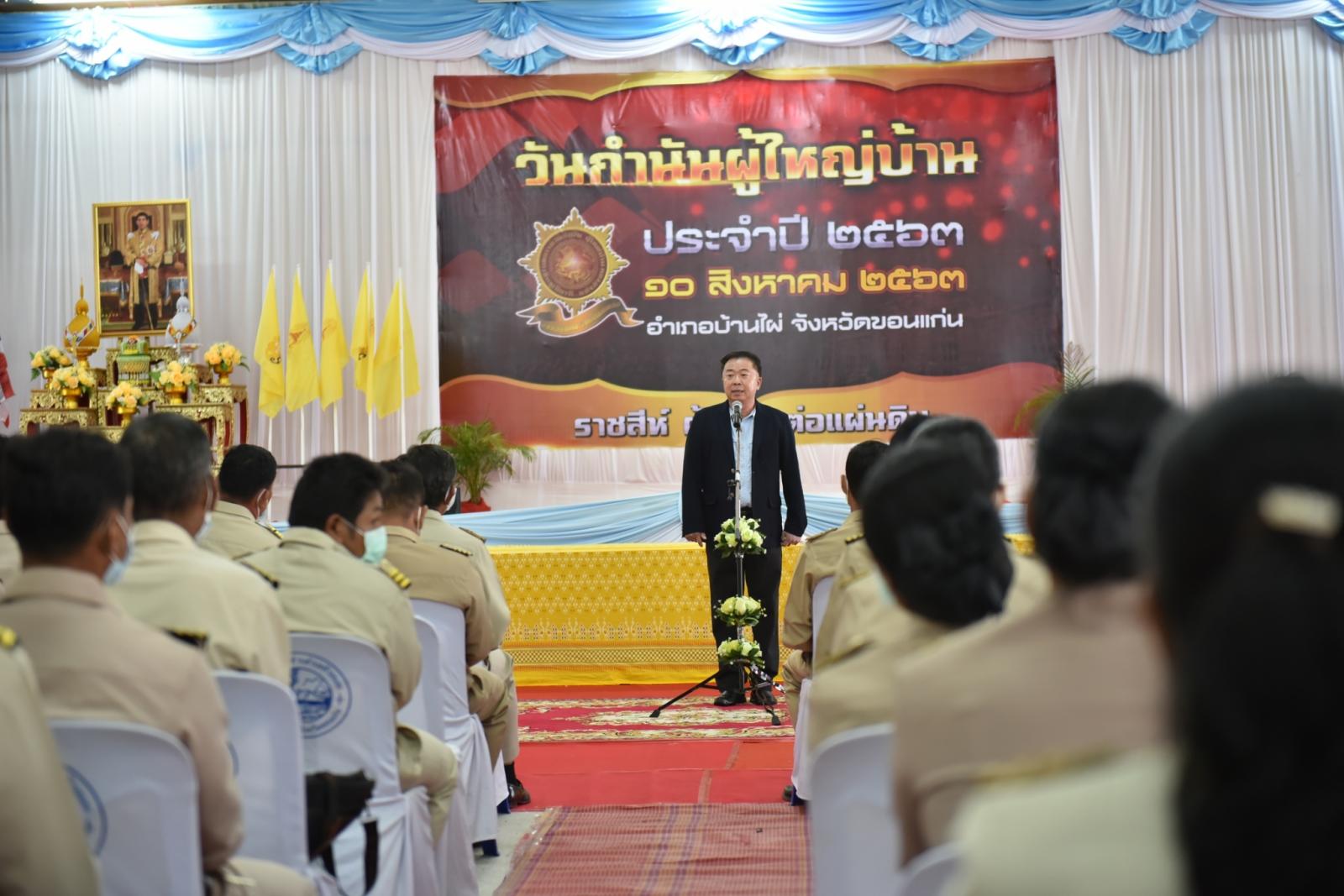 วันที่ 10 สิงหาคม 2563 เวลา 11.00 น. ดร.พงษ์ศักดิ์ ตั้งวานิชกพงษ์ นายกองค์การบริหารส่วนจังหวัดขอนแก่น ร่วมเป็นเกียรติและพบปะให้กำลังใจ กำนัน ผู้ใหญ่บ้าน ในพื้นที่อำเภอบ้านไผ่ เนื่องในงาน"มหกรรมวันกำนัน-ผู้ใหญ่บ้าน อ.บ้านไผ่ ประจำปี 2563 โดยมี นายรุจน์ รังษี นายอำเภอบ้านไผ่ พร้อมคณะให้การต้อนรับ ณ หอประชุมอำเภอบ้านไผ่ จังหวัดขอนแก่น