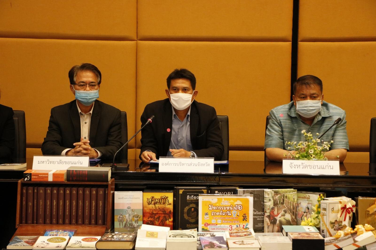 เมื่อวันที่ 11 สิงหาคม 2563 เวลา 10.30 น. ดร.พงษ์ศักดิ์ ตั้งวานิชกพงษ์ นายก อบจ.ขอนแก่น มอบหมายให้ นายสิทธิกุล ภูคำวงศ์ รองนายก อบจ.ขอนแก่น ร่วมแถลงข่าวงานมหกรรมหนังสือภาคอีสาน ครั้งที่ 8 (I-SAN BOOK FAIR 2020) และงาน I-SAN STATIONARY FAIR 2020 ภายใต้แนวคิด “สร้างสังคมอีสาน สู่สังคมรักการอ่าน” โดยมี นายวรทัศน์ ธุลีจันทร์ รองผู้ว่าราชการจังหวัดขอนแก่น, นายธวัชชัย รื่นรมย์สิริ รองนายก ทน.ขอนแก่น, รศ.ดร.ไมตรี อินทร์ประสิทธิ์ รองอธิการบดีฝ่ายการศึกษาและบริหารวิชาการ มหาวิทยาลัยขอนแก่น, นางสาวฐาปนี โปร่งรัศมี อุปนายกสมาคมผู้จัดพิมพ์และผู้จัดจำหน่ายหนังสือแห่งประเทศไทย(PUBAT), นางสาวสุรัชสานุ์ ทองมี ผอ.สำนักงานส่งเสริมการจัดประชุมและนิทรรศการ ภาคตะวันออกเฉียงเหนือ (TCEB) และนางศรีสุภรณ์ ชมศรีหาราชพร รองผู้อำนวยการการท่องเที่ยวแห่งประเทศไทย สำนักงานขอนแก่น ร่วมเป็นผู้แถลงข่าว ณ ห้องสารสิน สำนักงานอธิการบดี มหาวิทยาลัยขอนแก่น อ.เมืองขอนแก่น จ.ขอนแก่น