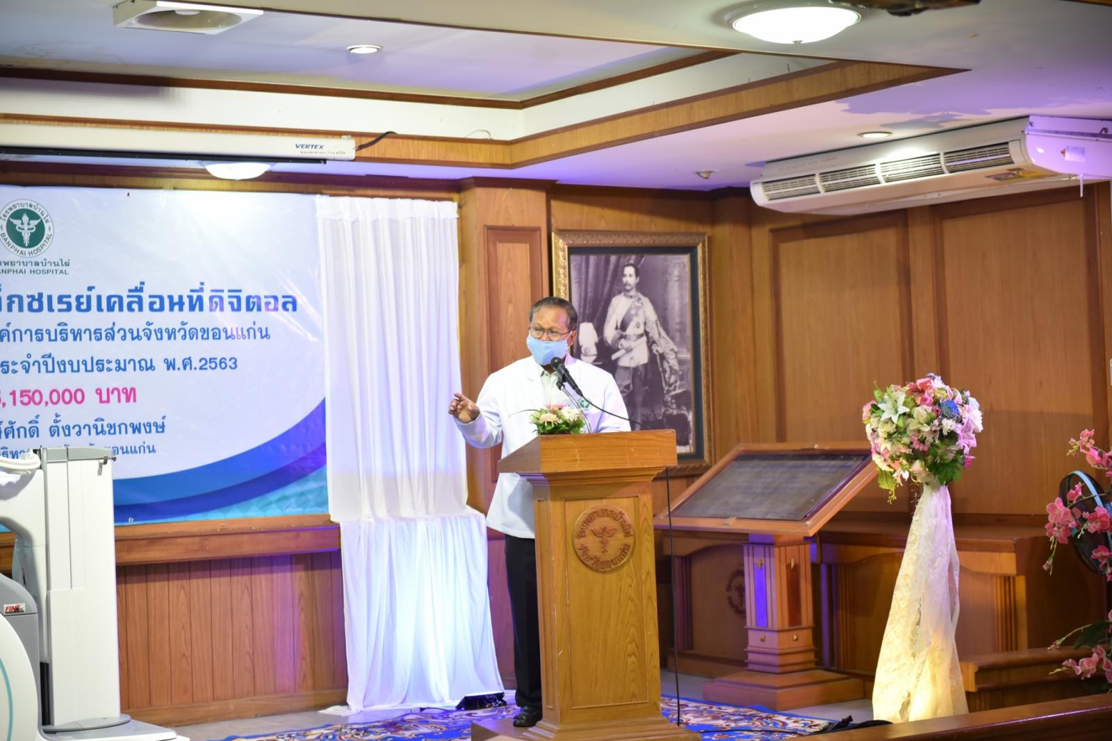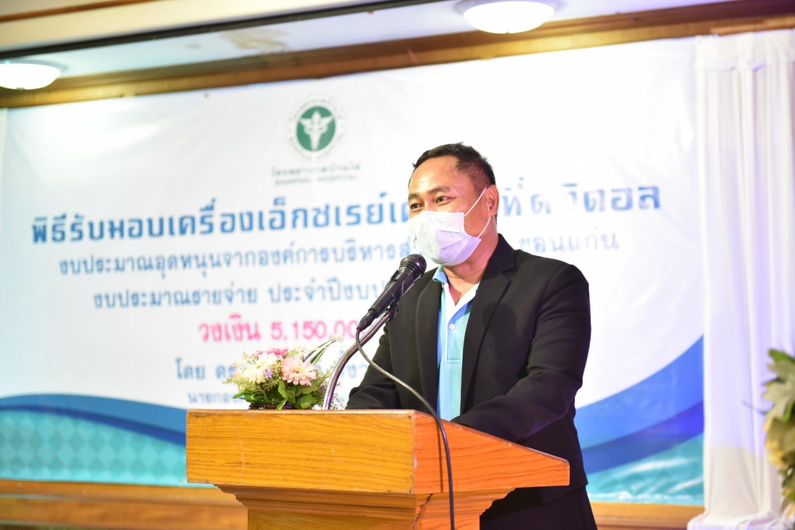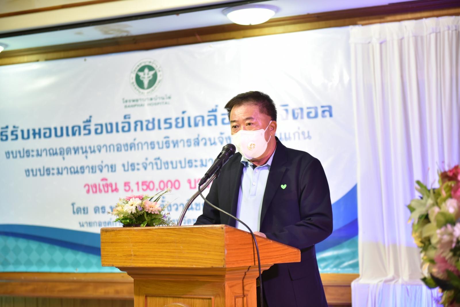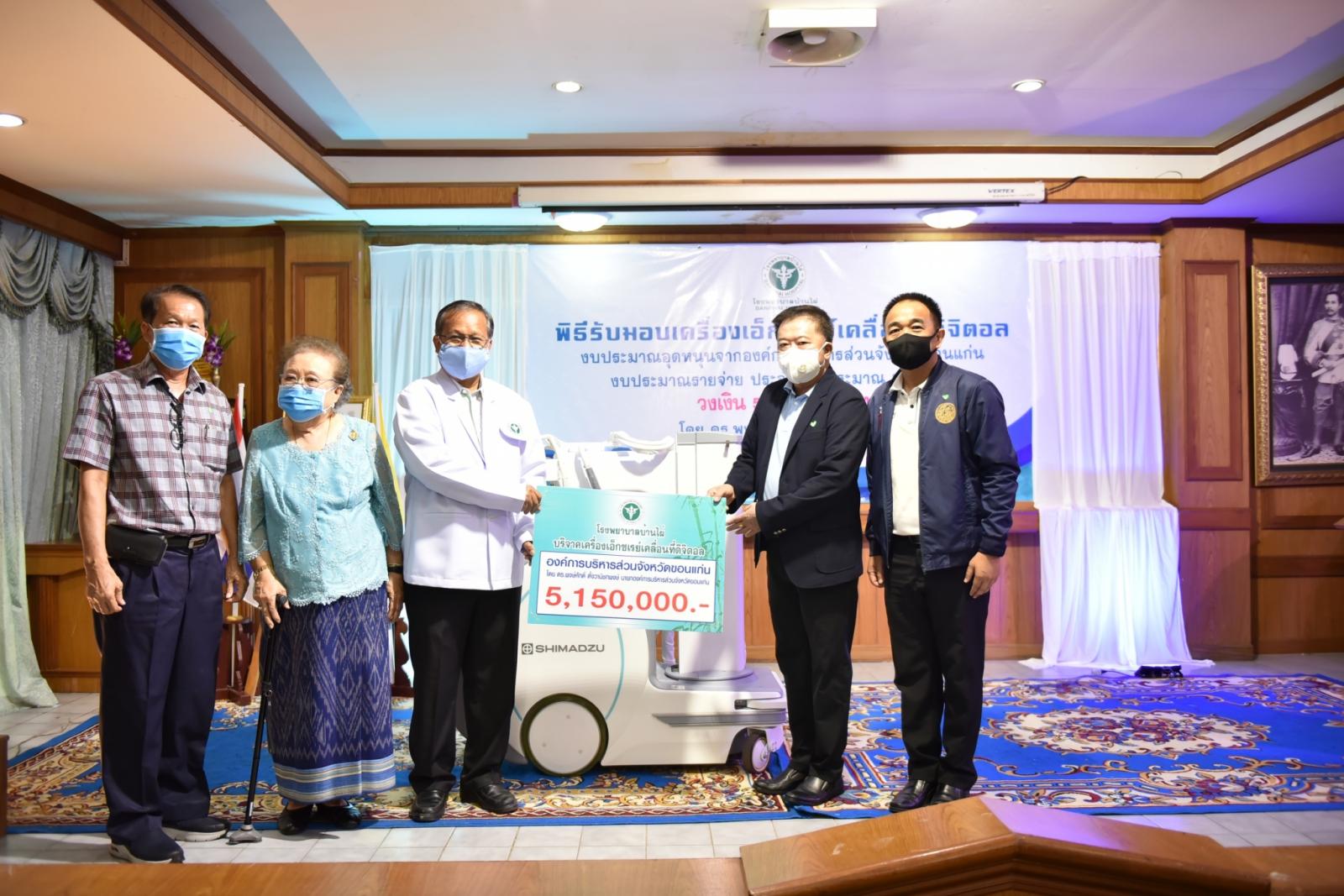 วันที่ 11 สิงหาคม 2563 เวลา 14.00 น. ดร.พงษ์ศักดิ์ ตั้งวานิชกพงษ์ นายกองค์การบริหารส่วนจังหวัดขอนแก่น เป็นประธานในพิธีส่งมอบครุภัณฑ์ทางการแพทย์ เครื่องเอ็กซเรย์เคลื่อนที่ดิจิตอล พร้อมแผ่นรับภาพแบบดิจิตอล จำนวน 1 เครื่อง ให้กับโรงพยาบาลบ้านไผ่ โดยมี นายแพทย์อดุลย์ บำรุง ผู้อำนวยการโรงพยาบาลบ้านไผ่ พร้อมด้วย คณะแพทย์ พยาบาล และเจ้าหน้าที่ รับมอบ ในโอกาสนี้มี นายรุจน์ รังษี นายอำเภอบ้านไผ่ นายองอาจ ฉัตรชัยพลรัตน์ โฆษกประจำรัฐมนตรีว่าการกระทรวงคมนาคม ร่วมเป็นเกียรติ ณ ห้องประชุมไพจิตร ปวะบุตร โรงพยาบาลบ้านไผ่ อำเภอบ้านไผ่ จังหวัดขอนแก่น