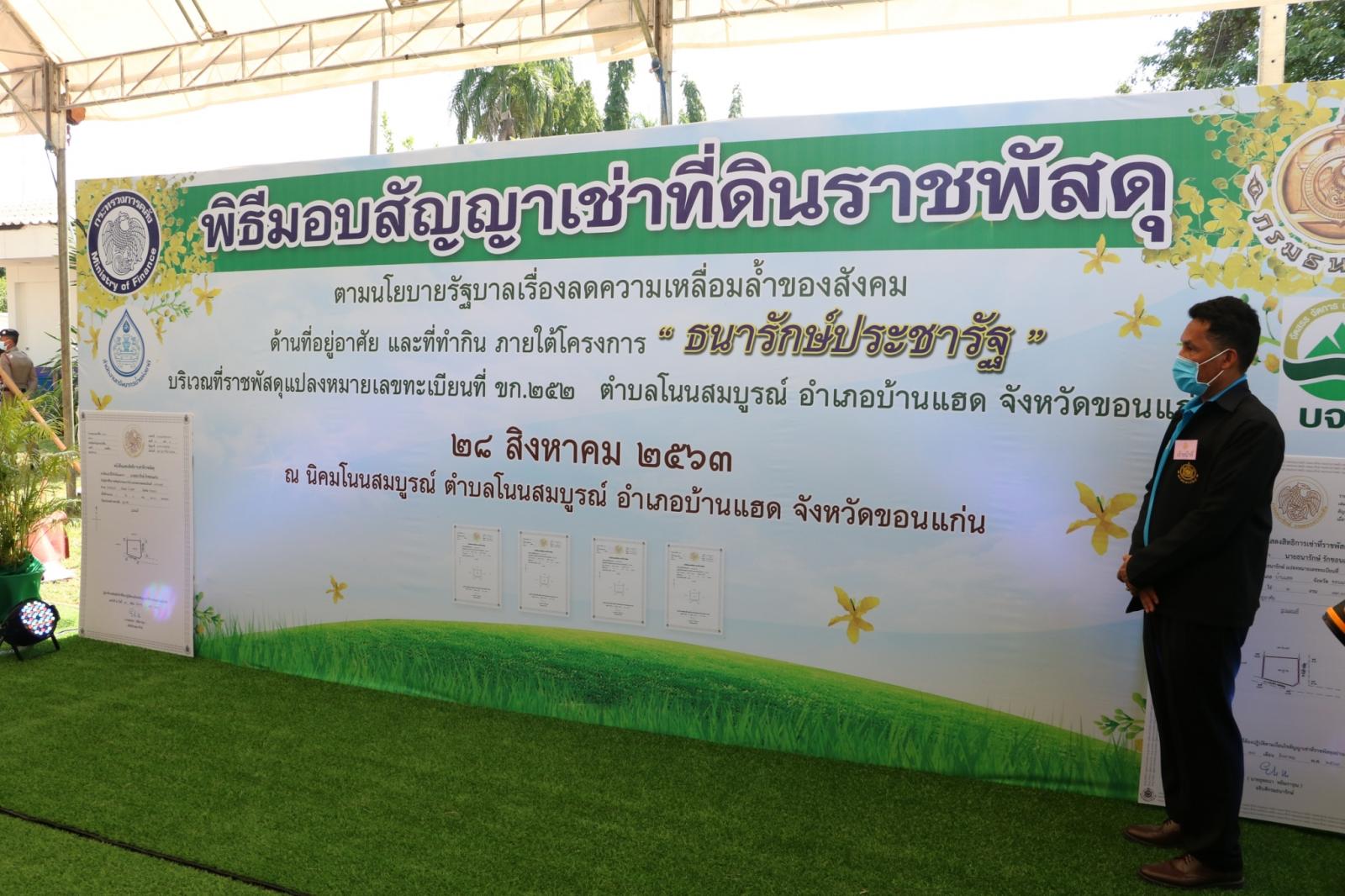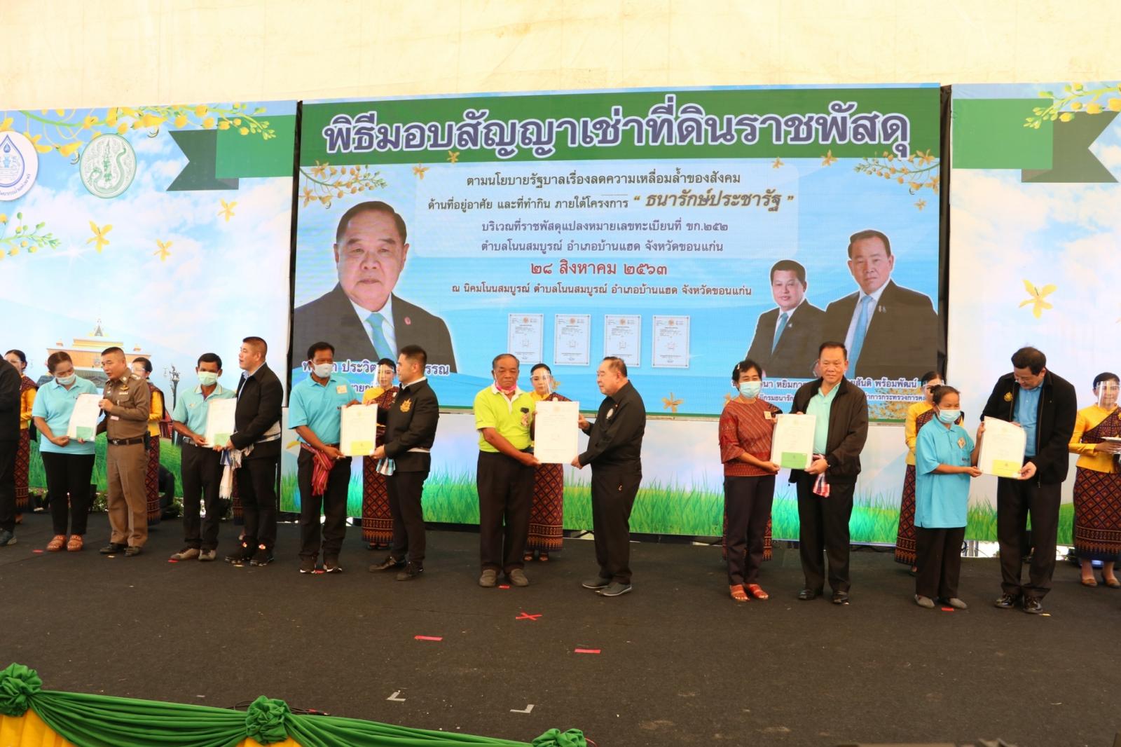 เมื่อวันที่ 28 สิงหาคม 2563 เวลา 08.30 น. ดร.พงษ์ศักดิ์ ตั้งวานิชกพงษ์ นายก อบจ.ขอนแก่น มอบหมายให้ นายสิทธิกุล ภูคำวงศ์ รองนายก อบจ.ขอนแก่น ร่วมพิธีมอบสัญญาเช่าที่ดินราชพัสดุตามโครงการ “ธนารักษ์ประชารัฐ” โดยมี พล.อ.ประวิตร วงษ์สุวรรณ รองนายกรัฐมนตรี เป็นประธาน, ดร.สมศักดิ์ จังตระกุล ผู้ว่าราชการจังหวัดขอนแก่น กล่าวต้อนรับ ณ บริเวณศาลาอนุสรณ์ราชประชาสมาสัยฯ กรมธนารักษ์ ต.โนนสมบูรณ์ อ.บ้านแฮด จ.ขอนแก่น