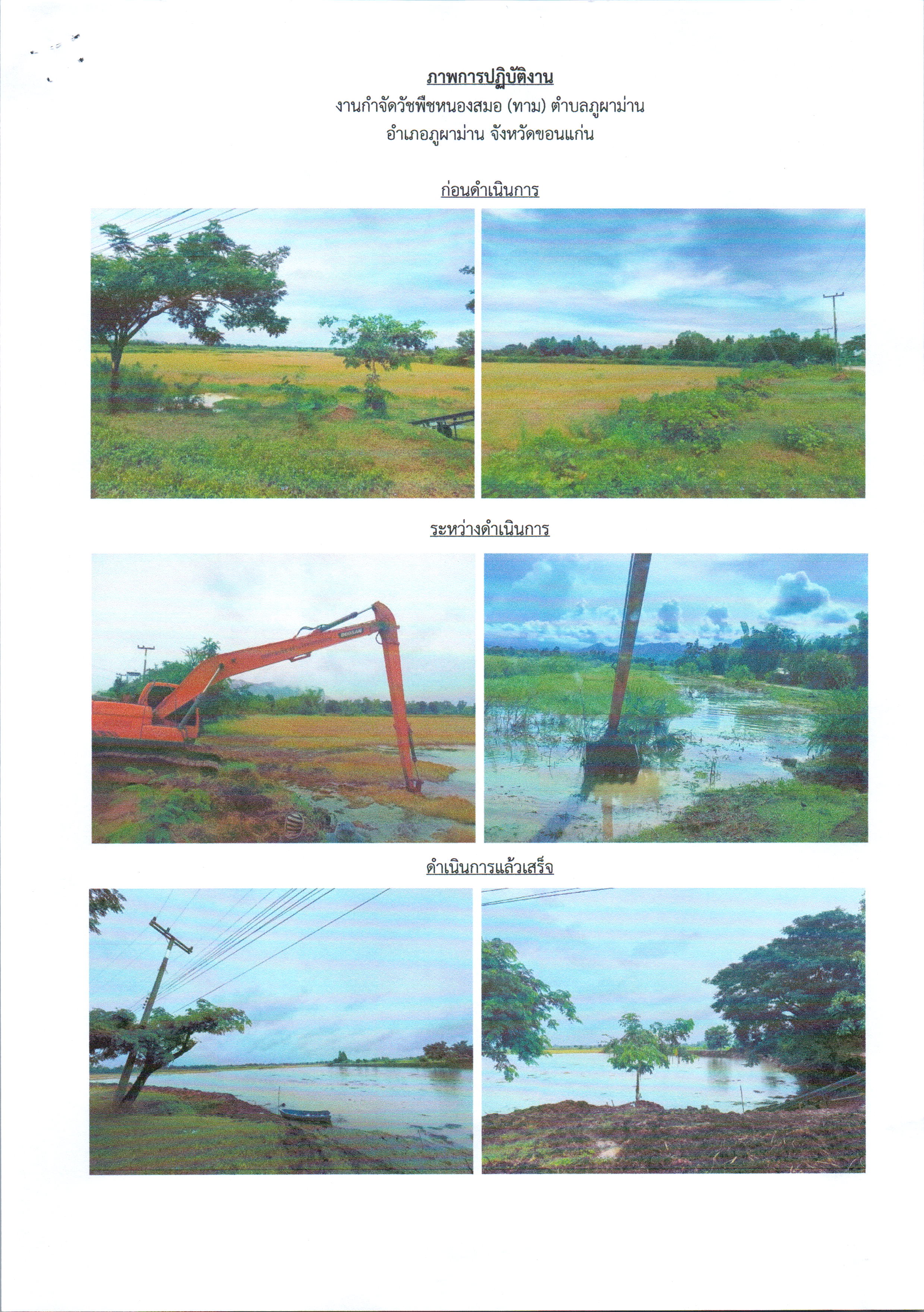 สำนักช่าง ฝ่ายสาธารณูปโภค นำเครื่องจักรกลเข้าดำเนินการกำจัดวัชพืชในหนองสมอ (ทาม) ต.ภูผาม่าน อ.ภูผาม่าน จ.ขอนแก่น
