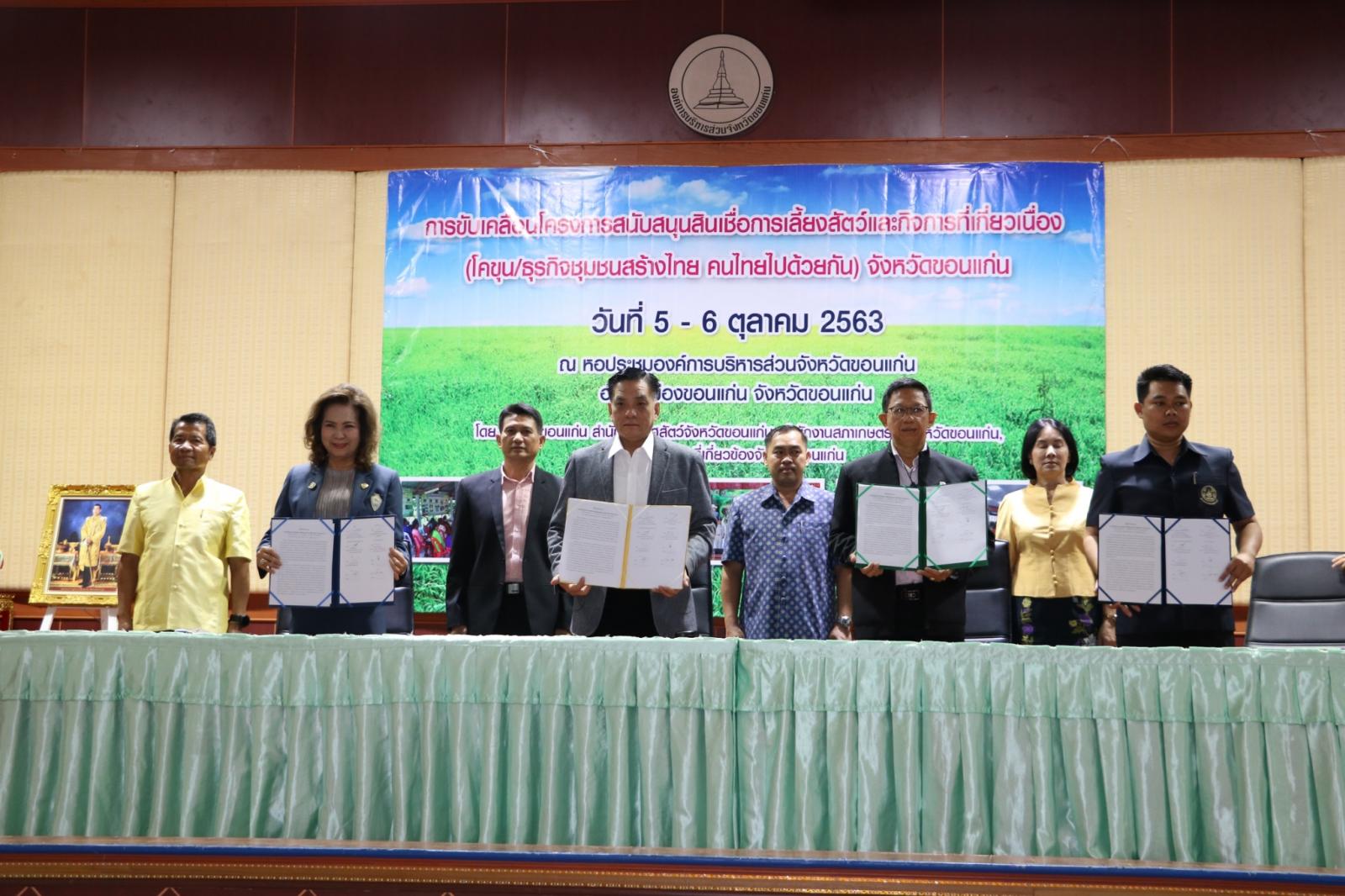 ในวันที 6 ตุลาคม 2563 เวลา 10.00 น. ดร.พงษ์ศักดิ์ ตั้งวานิชกพงษ์ นายก อบจ.ขอนแก่น มอบหมายให้ นายสิทธิกุล ภูคำวงศ์ รองนายก อบจ.ขอนแก่น ร่วมลงนามบันทึกความเข้าใจ (MOU) การขับเคลื่อนโครงการโคเนื้อสร้างชาติและกิจการที่เกี่ยวเนื่อง ในโอกาสนี้มี นายศรัทธา คชพลายุกต์ รองผู้ว่าราชการจังหวัดขอนแก่น ภาคีเครือข่าย ประกอบด้วย องค์กรเกษตรกร, ธนาคารเพื่อการเกษตรและสหกรณ์การเกษตร, ภาครัฐและผู้ประกอบการ ร่วมลงนาม ณ หอประชุมองค์การบริหารส่วนจังหวัดขอนแก่น อ.เมืองขอนแก่น จ.ขอนแก่น