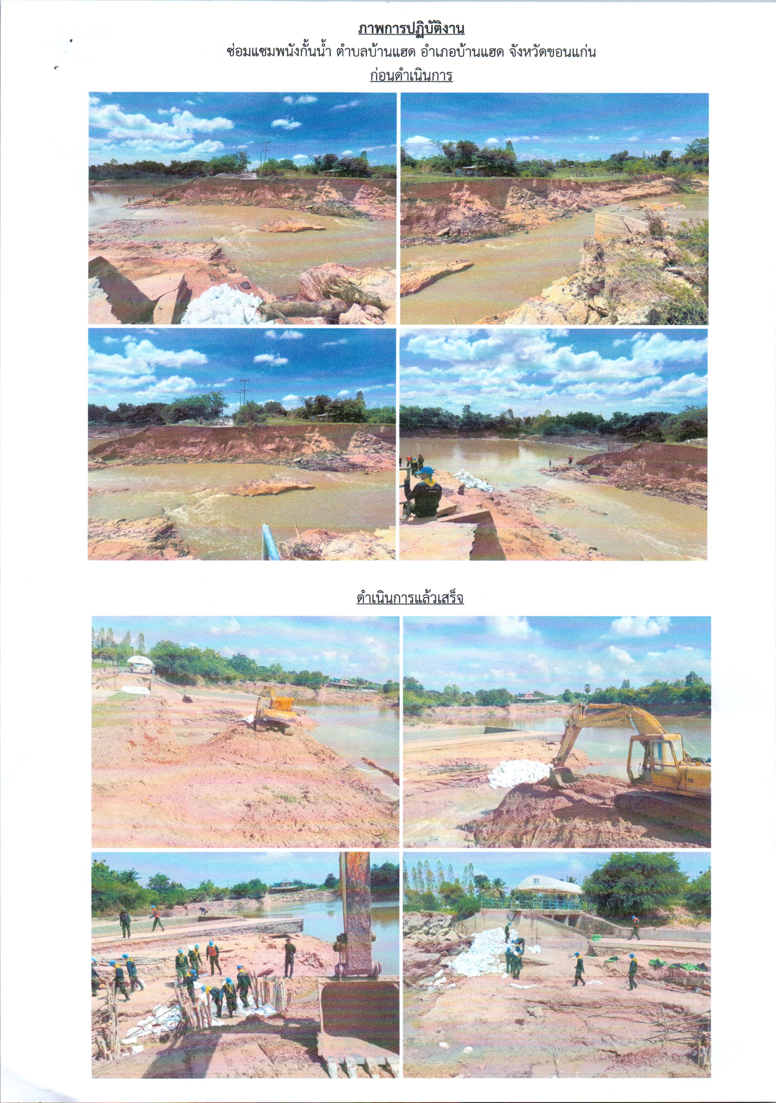 สำนักช่าง ฝ่ายสาธารณูปโภค นำเครื่องจักรกลเข้าดำเนินการซ่อมแซมพนังกั้นน้ำ ต.บ้านแฮด อ.บ้านแฮด จ.ขอนแก่น