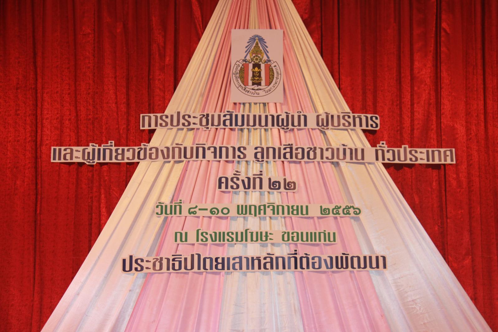 เมื่อวันที่ ๘ พฤศจิกายน ๒๕๕๖ ดร.พงษ์ศักดิ์ ตั้งวานิชกพงษ์ นายกอบจ.ขอนแก่น มอบหมายให้ นายธาดา พรหมสาขา ณ สกนคร รองปลัด อบจ.ขอนแก่น ร่วมพิธีเปิดการประชุมสัมมนา ผู้นำ ผู้บริหารและผู้เกี่ยวข้องกับกิจการลูกเสือชาวบ้านทั่วประเทศ ครั้งที่ ๒๒ ในการจัดงานครั้งนี้ อบจ.ขอนแก่น ได้อุดหนุนงบประมาณกองบังคับการตำรวจตระเวนชายแดน ภาค ๒ เพื่อนำไปดำเนินการจัดงานดังกล่าว จำนวน ๕๐๐,๐๐๐ บาท