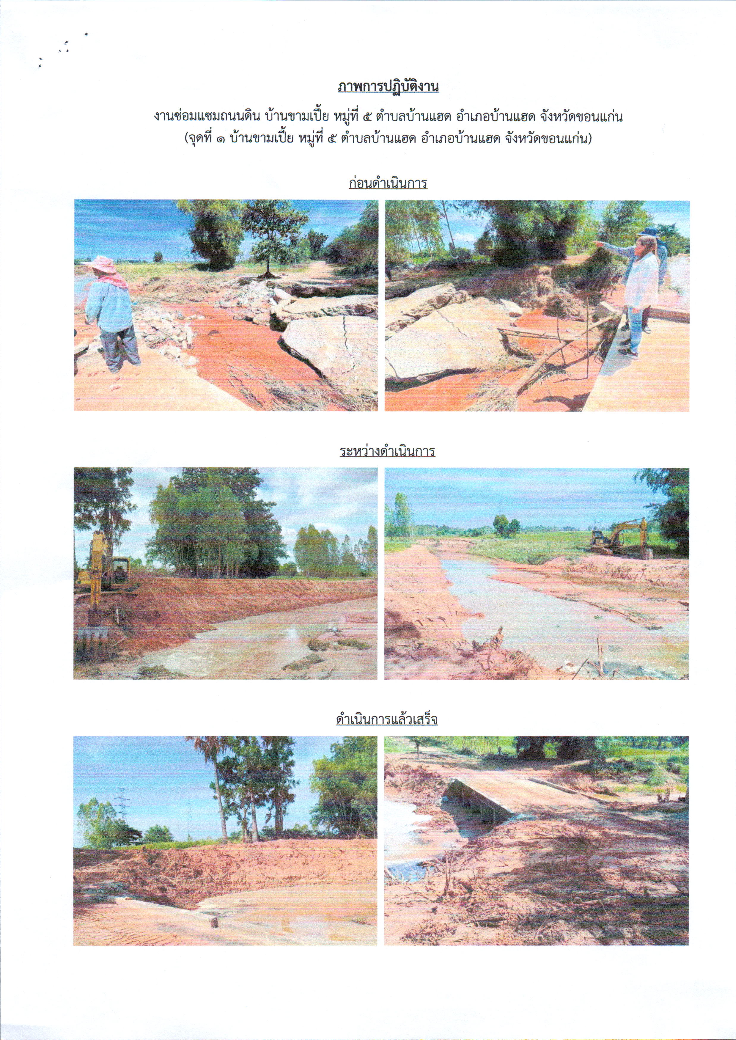 สำนักช่าง ฝ่ายสาธารณูปโภค นำเครื่องจักรกลเข้าซ่อมแซมถนนดินที่ได้รับความเสียหายจากอุทกภัยในเขตพื้นที่บ้านขามเปี้ย ม.5 ต.บ้านแฮด อ.บ้านแฮด จ.ขอนแก่น