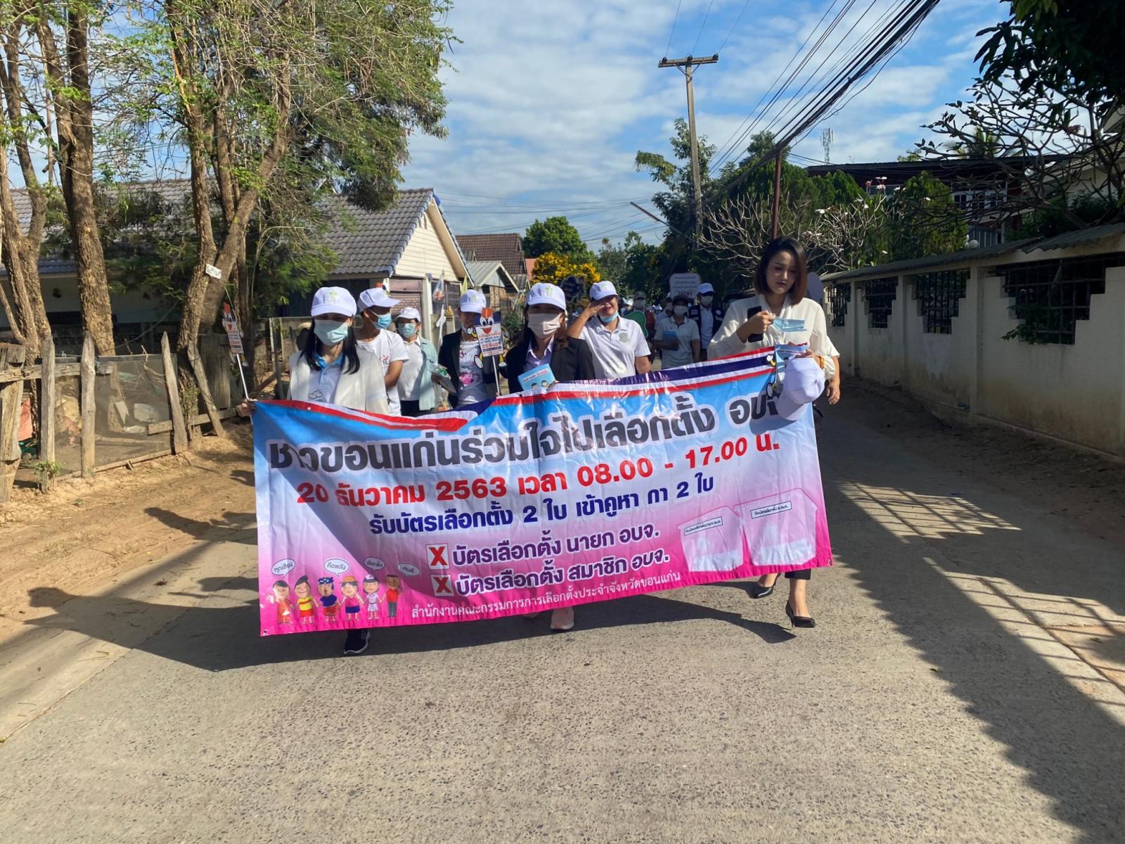เดินรณรงค์ประชาสัมพันธ์การเลือกตั้งสมาชิกสภาองค์การบริหารส่วนจังหวัดขอนแก่น และนายกองค์การบริหารส่วนจังหวัดขอนแก่น ณ เขตตำบลท่าพระ อ.เมือง จ.ขอนแก่น