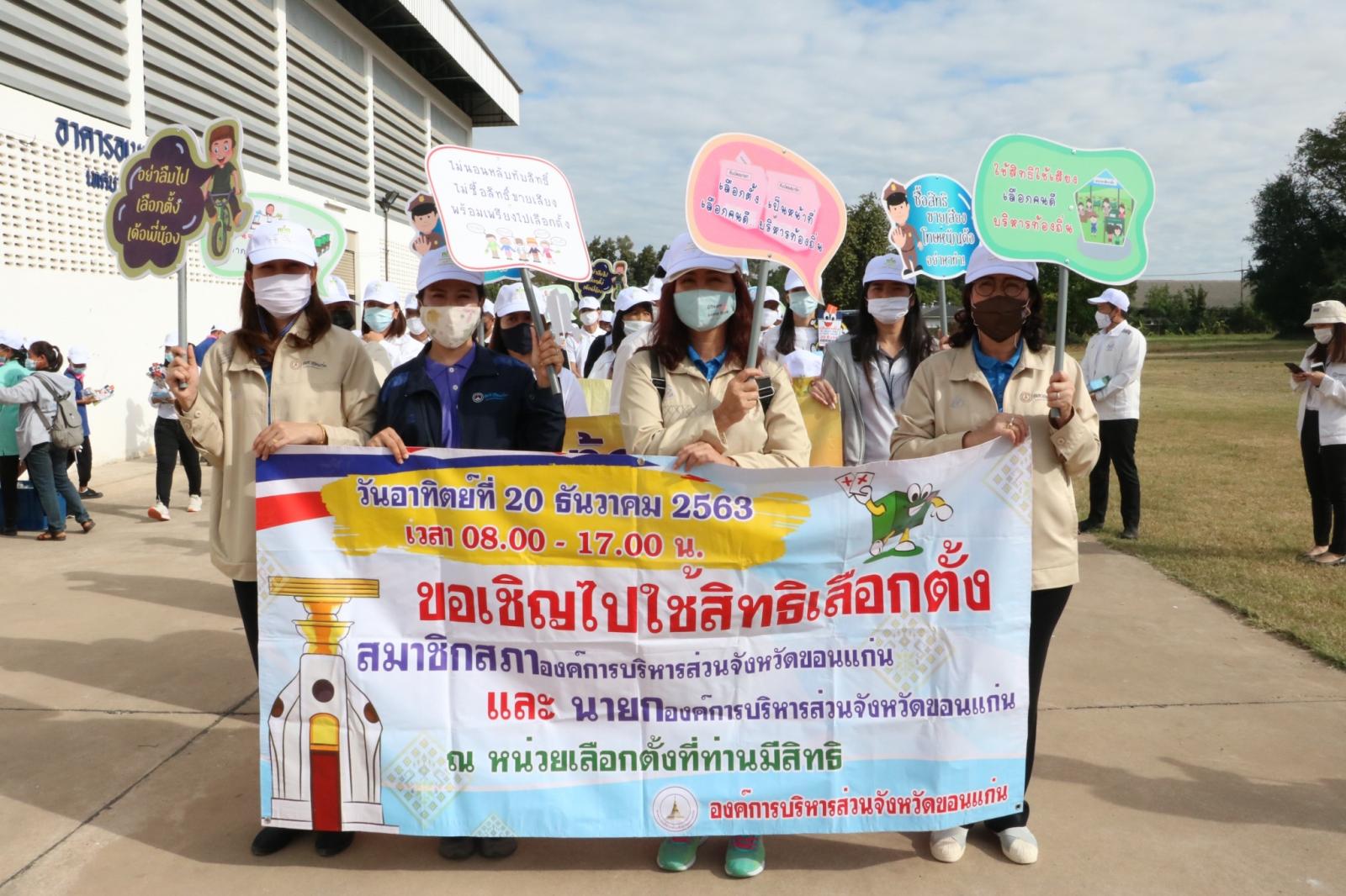 เมื่อวันที่ 16 ธันวาคม 2563 เวลา 09.00 น. นางพัฒนาวดี วิริยปิยะ ปลัดองค์การบริหารส่วนจังหวัดขอนแก่น ในฐานะผู้อำนวยการการเลือกตั้งประจำองค์การบริหารส่วนจังหวัดขอนแก่น พร้อมด้วยคณะผู้บริหาร หัวหน้าส่วนราชการ ข้าราชการ พนักงาน องค์การบริหารส่วนจังหวัดขอนแก่น ร่วมกับ สำนักงานคณะกรรมการการเลือกตั้งประจำจังหวัดขอนแก่น หน่วยงานรัฐ นักเรียน นักศึกษา ประชาชน เดินรณรงค์ประชาสัมพันธ์การเลือกตั้งสมาชิกสภาองค์การบริหารส่วนจังหวัดขอนแก่น และนายกองค์การบริหารส่วนจังหวัดขอนแก่น วันอาทิตย์ ที่ 20 ธันวาคม 2563 โดยมี นายศรัทธา คชพลายุกต์ รองผู้ว่าราชการจังหวัดขอนแก่นเป็นประธาน ณ เขตตำบลท่าพระ อ.เมือง จ.ขอนแก่น