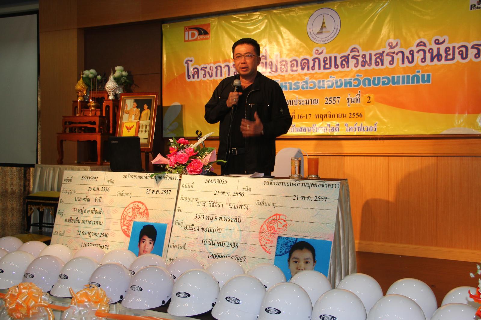 เมื่อเวลา 09.00 น.(วันที่ 16 พ.ย.56) ที่โรงเรียนสอนขับรถไอดี ไดร์ฟเวอร์ ถนนชัยพฤกษ์ ต.ในเมือง อ.เมือง จ.ขอนแก่น ดร.พงษ์ศักดิ์ ตั้งวานิชกพงษ์ นายกองค์การบริหารส่วนจังหวัดขอนแก่น เป็นประธานเปิดอบรม " โครงการฝึกอบรมเชิงปฎิบัติการขับขี่ปลอดภัยเสริมสร้างวินัยจราจร ประจำปี 2557 รุ่นที่ 2 ซึ่งทางกองกิจการขนส่ง องค์การบริหารส่วนจังหวัดขอนแก่น จัดขึ้น เพื่ออบรมให้ความรู้กฎจราจร ให้บริการออกใบขับขี่รถจักรยานยนต์ และเพื่อส่งเสริมให้ประชาชนมีความรู้ เสริมสร้างจิตสำนึกในการขับขี่อย่างปลอดภัย และมีใบอนุญาตขับรถถูกต้องตามกฎหมาย โดยมีผู้เข้าร่วมอบรมประกอบด้วย นักเรียน นักศึกษาและประชาชนในเขตจังหวัดขอนแก่น จำนวน 220 คน