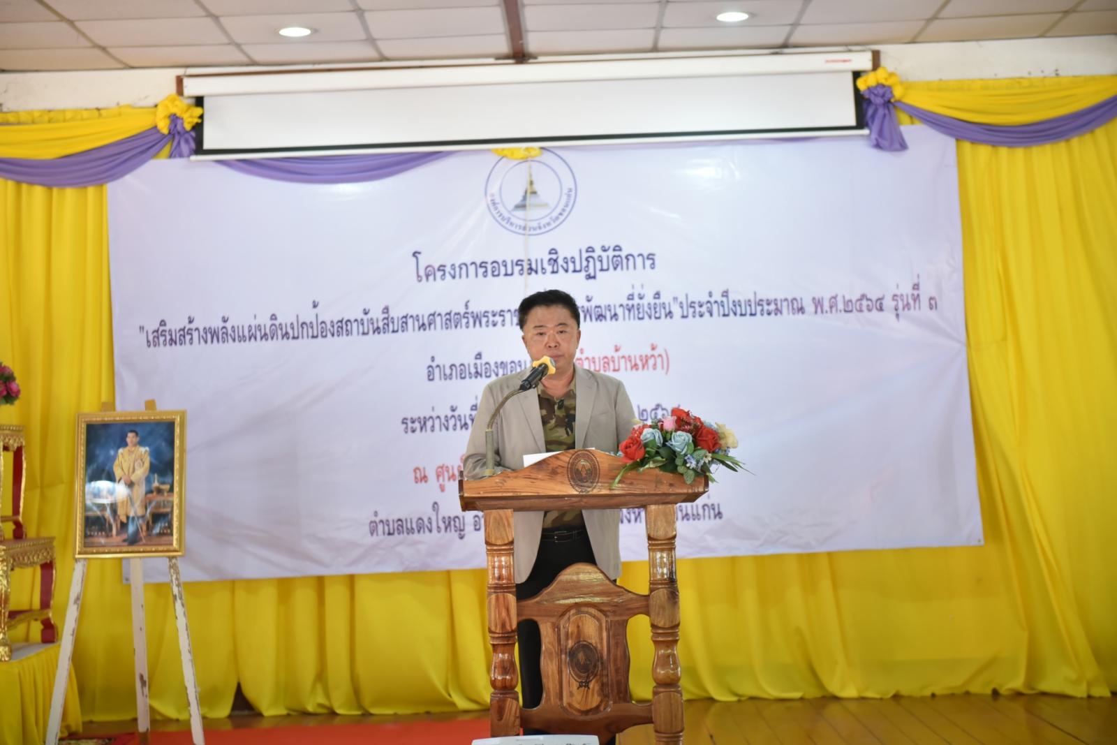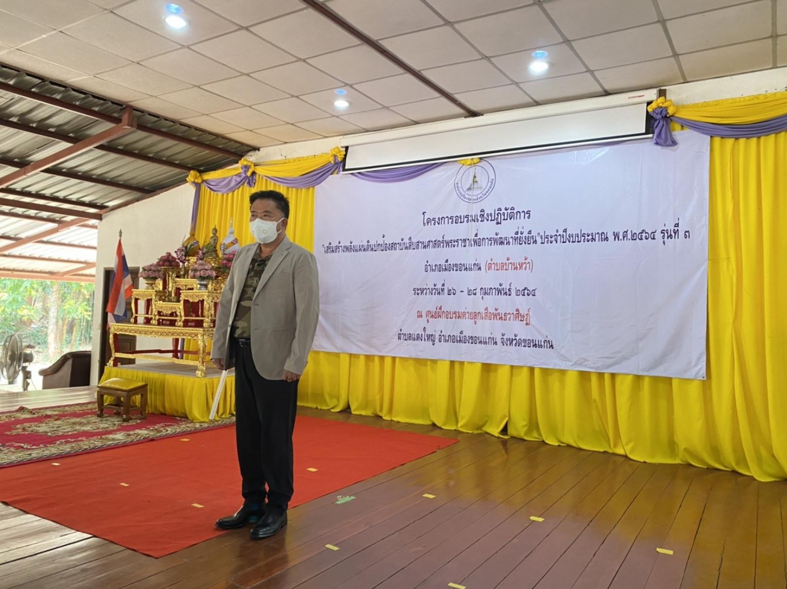 วันที่ 28 กุมภาพันธ์ 2564 เวลา15.00 น. ดร.พงษ์ศักดิ์ ตั้งวานิชกพงษ์ นายกองค์การบริหารส่วนจังหวัดขอนแก่น เป็นประธานปิดโครงการอบรมเชิงปฏิบัติการ “เสริมสร้างพลังแผ่นดินปกป้องสถาบันสืบสานศาสตร์พระราชาเพื่อการพัฒนาที่ยั่งยืน” รุ่นที่ 3 อำเภอเมืองขอนแก่น (ตำบลบ้านหว้า) ระหว่างวันที่ 26-28 กุมภาพันธ์ 2564 พร้อมทั้งมอบเกียรติบัตรแก่ผู้เข้าร่วมอบรม โดยมี นายวรเวทย์ ดิเรกศรี หัวหน้าสำนักปลัด อบจ.ขอนแก่น กล่าวรายงาน ณ ศูนย์ฝึกอบรมค่ายลูกเสือพันธวาศิษฏ์ ต.แดงใหญ่ อ.เมืองขอนแก่น จ.ขอนแก่น