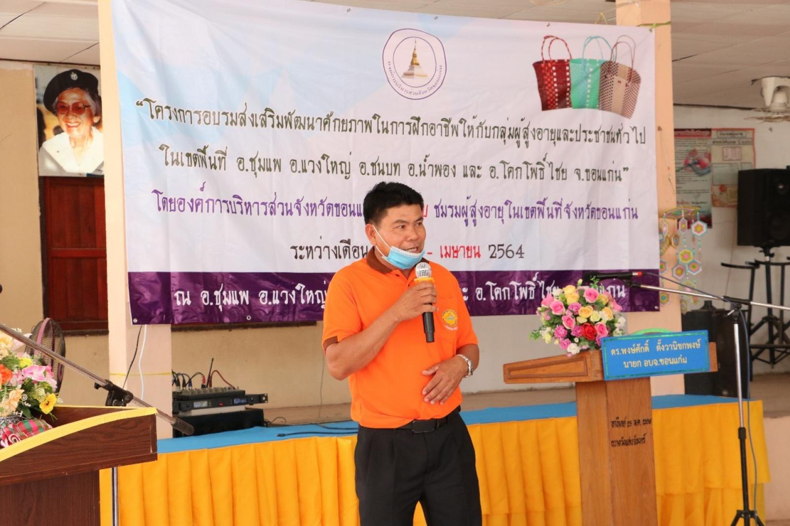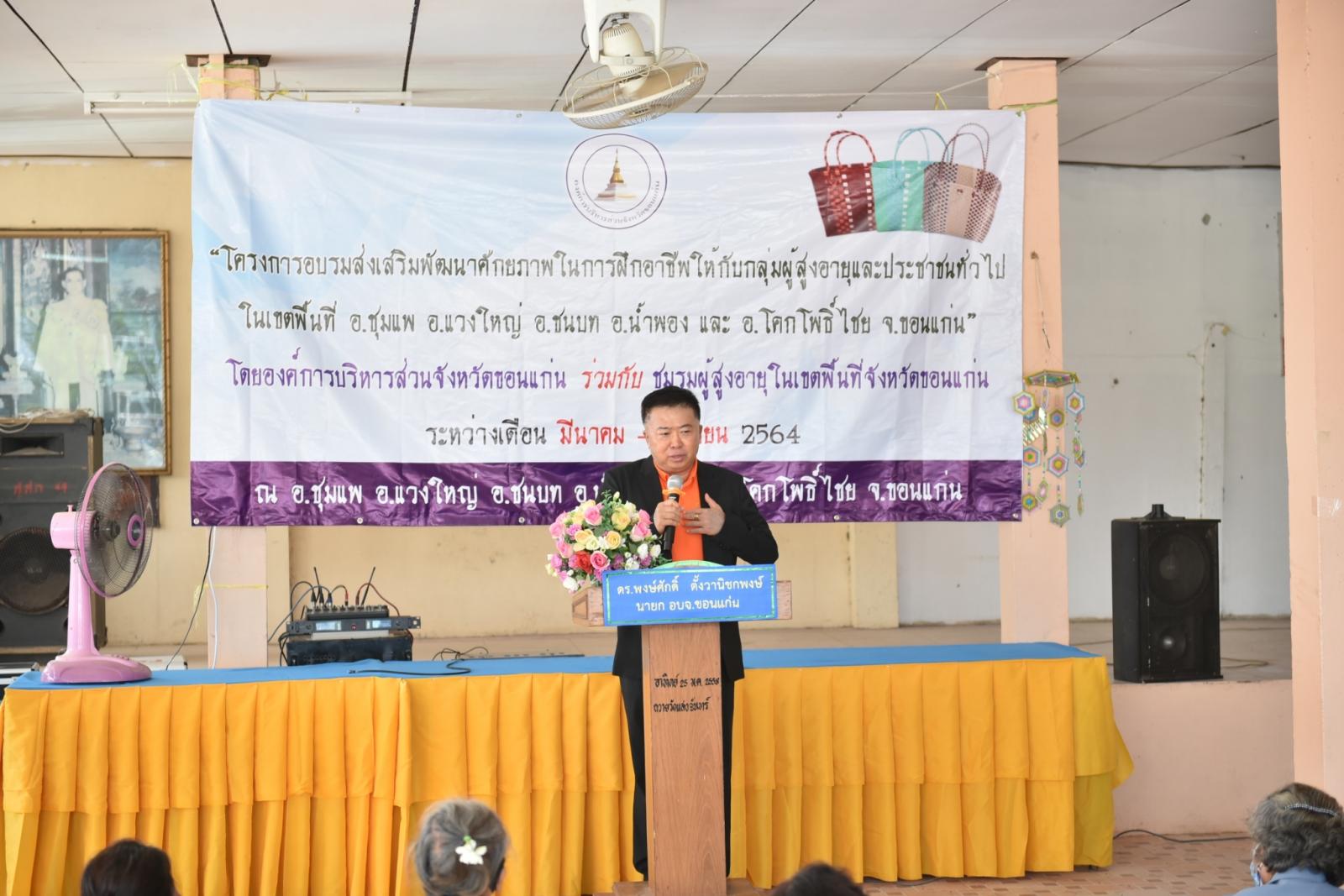 ในวันที่ 10 มีนาคม 2564 เวลา 11.00 น. ดร.พงษ์ศักดิ์ ตั้งวานิชกพงษ์ นายก อบจ.ขอนแก่น เป็นประธานเปิดโครงอบรมส่งเสริมพัฒนาศักยภาพให้กับกลุ่มผู้สูงอายุและประชาชนทั่วไปในเขตพื้นที่อำเภอชุมแพ จังหวัดขอนแก่น โดยมี นายยุทธนา ชินทะนาม ประธานชมรมผู้สูงอายุ อ.ชุมแพ เป็นผู้กล่าวรายงาน ในโอกาสนี้มีนางกฤษณา วังทอง ส.อบจ. อ.ชุมแพ เขต 3 ,นายวิศรุต ปู่เพ็ง ส.อบจ. อ.ชุมแพ เขต 2 ผู้นำชุมชน ร่วมเป็นเกียรติ ณ โรงเรียนผู้สูงอายุ บ.โสกก้อง ต.วังหินลาด อ.ชุมแพ จ.ขอนแก่น