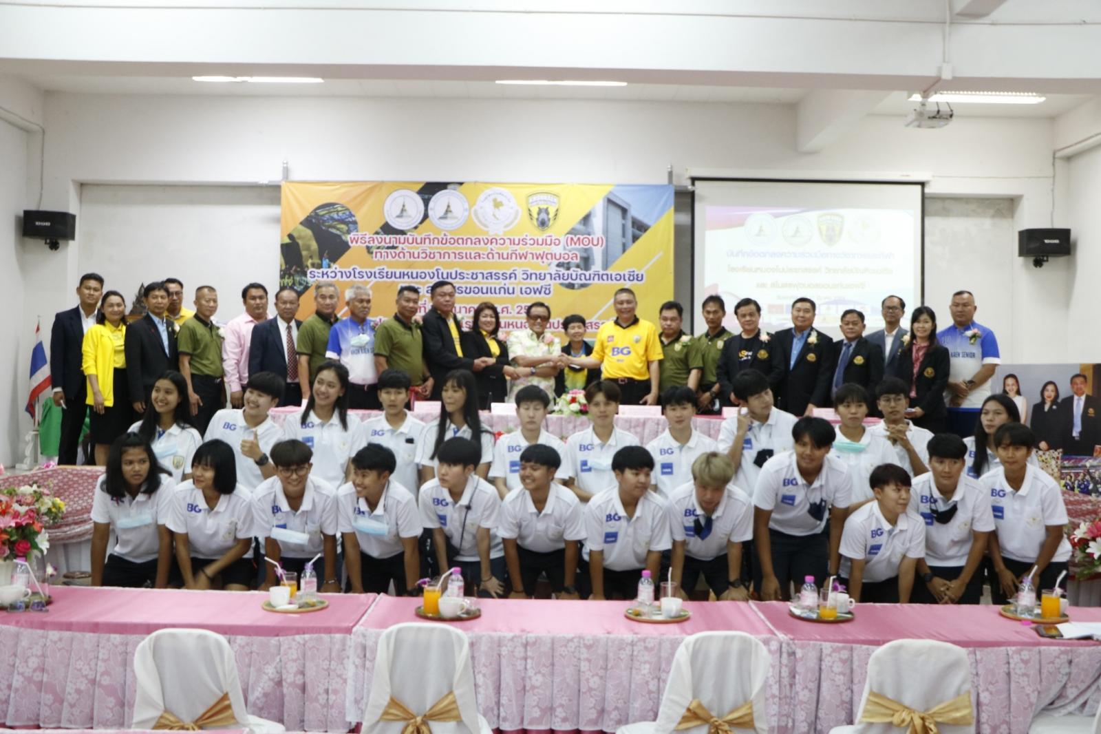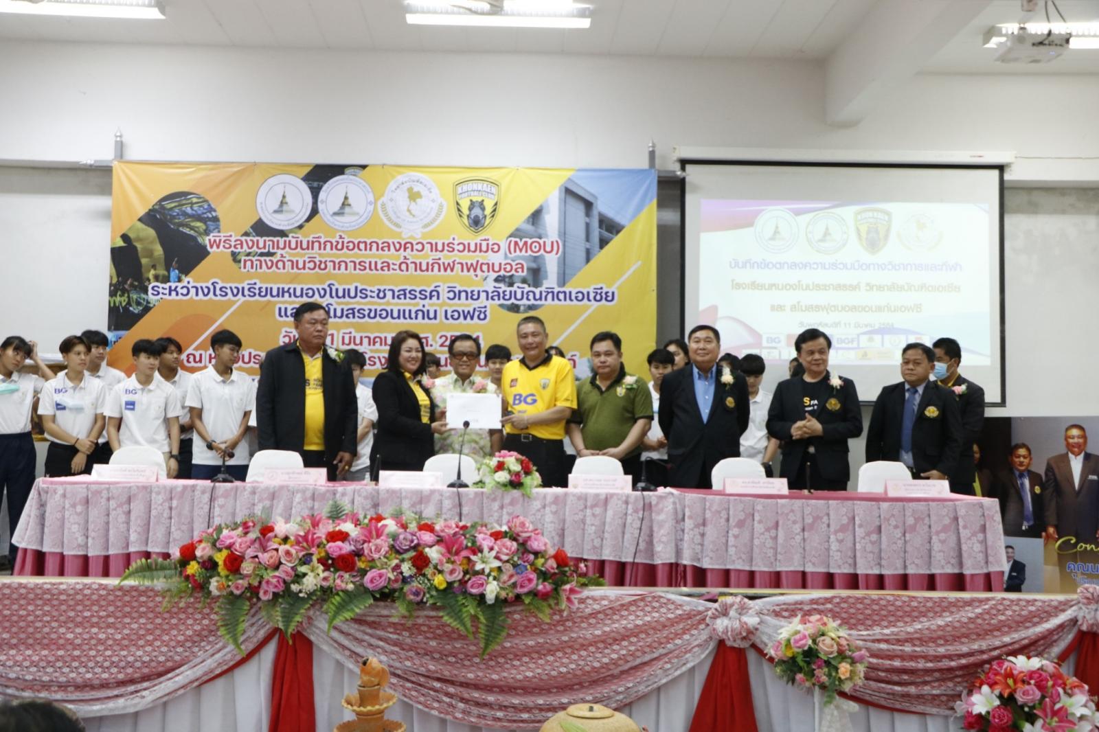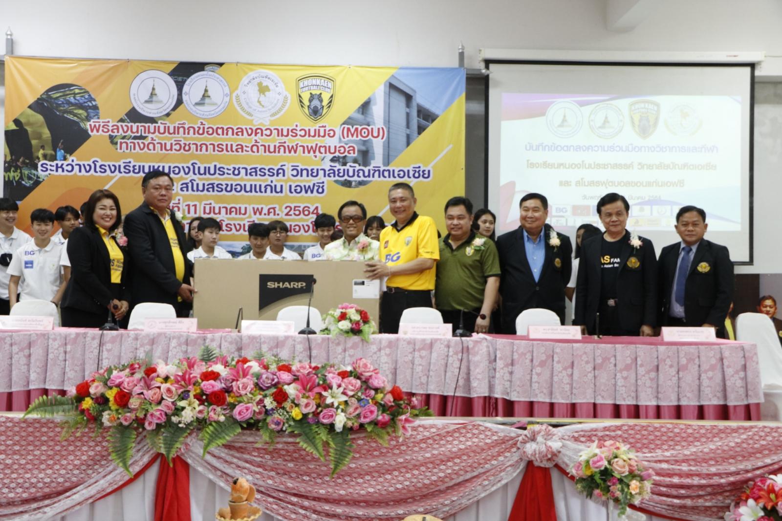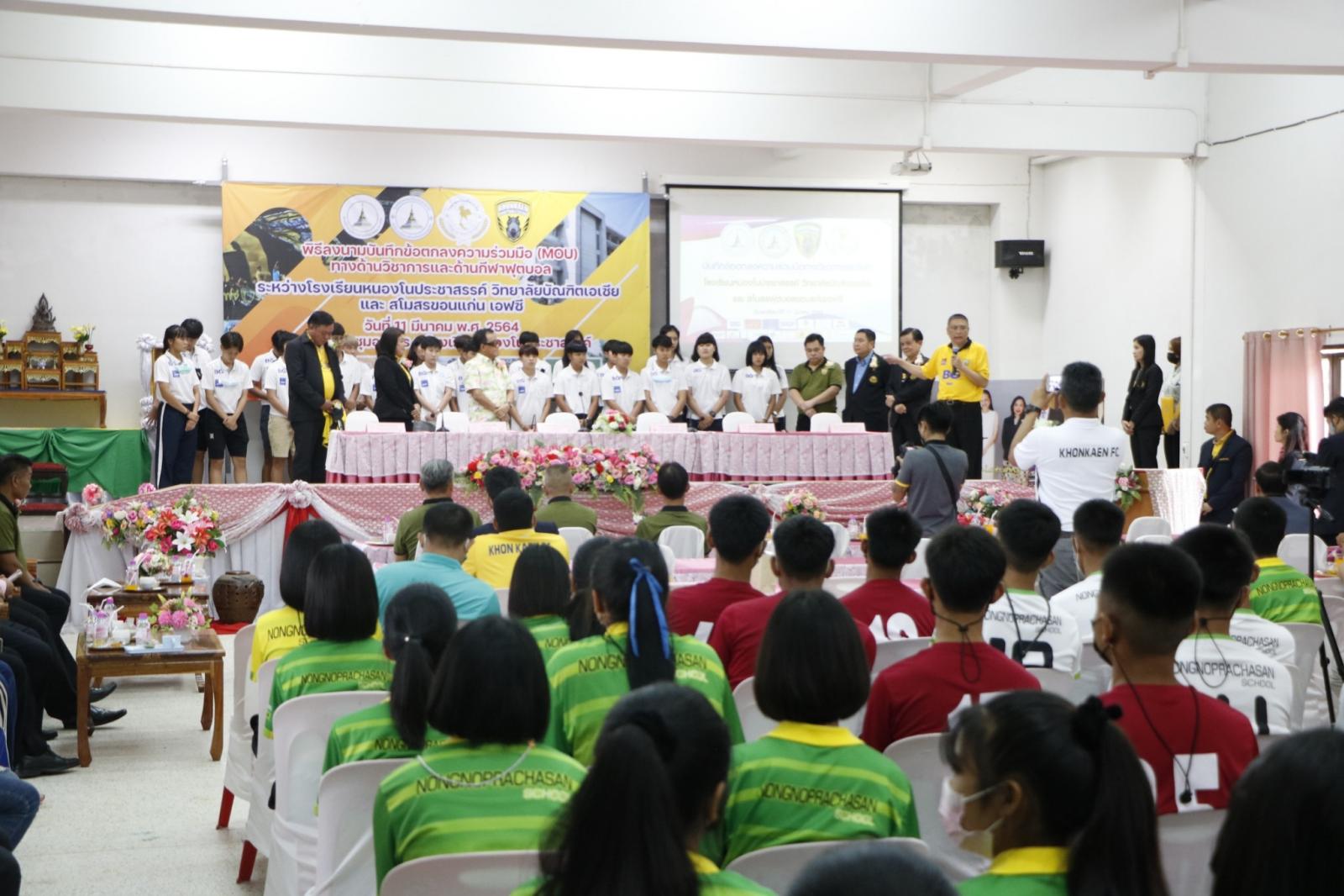 ร่วมลงนามบันทึกข้อตกลงความร่วมมือ (MOU) ทางด้านวิชาการและด้านกีฬาฟุตบอล ระหว่าง โรงเรียนหนองโนประชาสรรค์ วิทยาลัยบัณฑิตเอเซีย และสโมสรฟุตบอลขอนแก่น เอฟซี