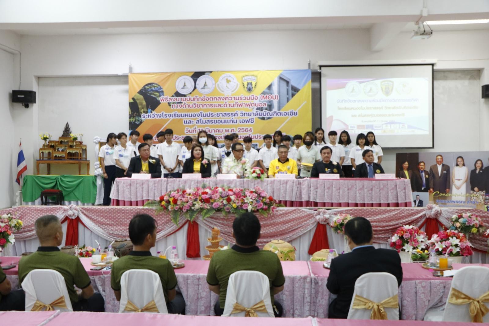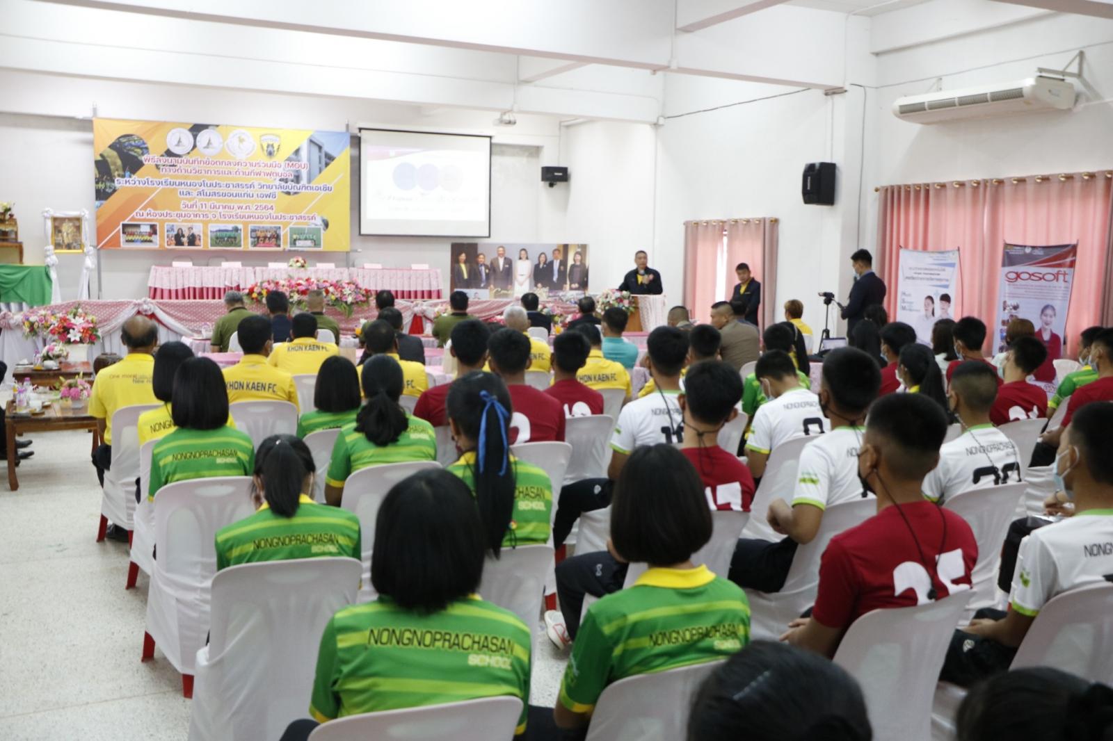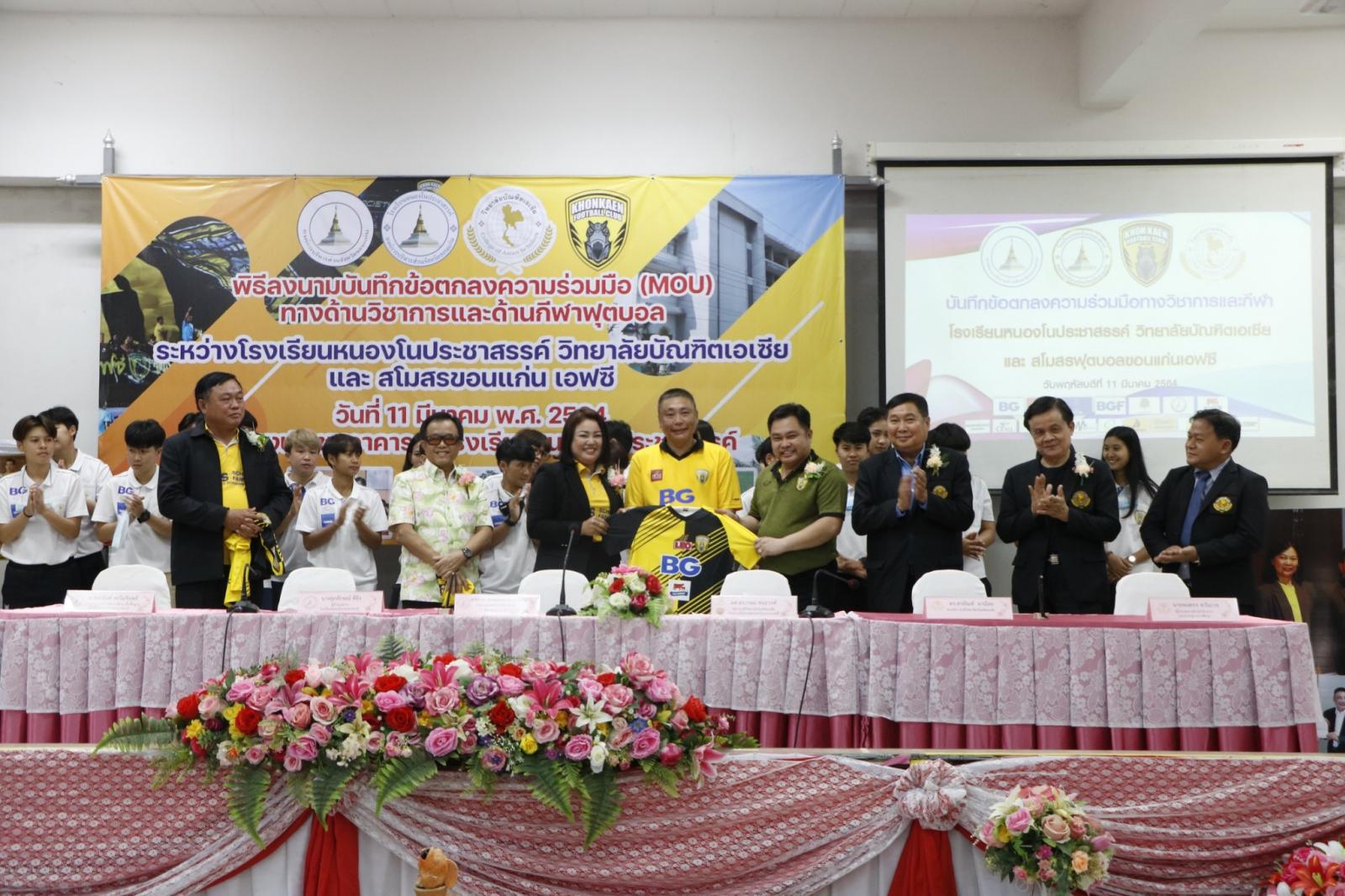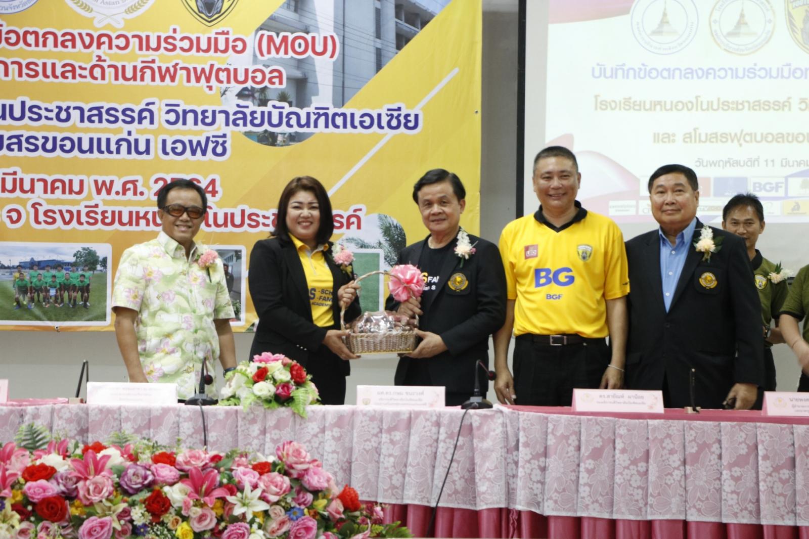 ร่วมลงนามบันทึกข้อตกลงความร่วมมือ (MOU) ทางด้านวิชาการและด้านกีฬาฟุตบอล ระหว่าง โรงเรียนหนองโนประชาสรรค์ วิทยาลัยบัณฑิตเอเซีย และสโมสรฟุตบอลขอนแก่น เอฟซี