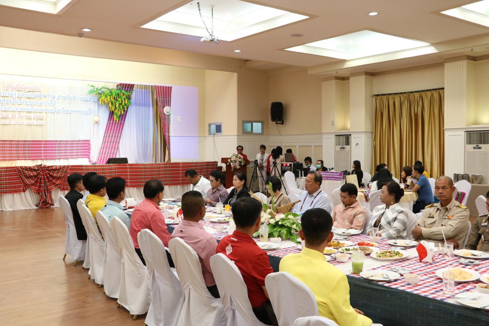 เมื่อวันที่ 15 มีนาคม 2564 เวลา 18.00 น. ดร.พงษ์ศักดิ์ ตั้งวานิชกพงษ์ นายก อบจ.ขอนแก่น มอบหมายให้ นายธาดา พรหมสาขา ณ สกลนคร รองนายก อบจ.ขอนแก่น ร่วมกล่าวต้อนรับและบรรยายสรุปการดำเนินงานอุทยานธรณีขอนแก่น ในกิจกรรมรับฟังบรรยายสรุปอุทยานธรณีขอนแก่น ภายใต้โครงการ “เยาวชนสัญจรสร้างการรับรู้และการมีส่วนร่วมสานฝัน สร้างอนาคต สู่สันติสุขจังหวัดชายแดนภาคใต้” โดยมี ดร.สมศักดิ์ จังตระกุล ผู้ว่าราชการจังหวัดขอนแก่น เป็นประธาน พร้อมปาฏกถาทิศทางการพัฒนาจังหวัดขอนแก่นตามนโยบาย Smart City และอุทยานธรณีขอนแก่น นางทัศนีย์ ผลชานิโก รองอธิบดีกรมประชาสัมพันธ์ กล่าวขอบคุณจังหวัดขอนแก่นและองค์การบริหารส่วนจังหวัดขอนแก่น ณ ราชาวดี รีสอร์ท แอนด์ โฮเทล ขอนแก่น อ.เมืองขอนแก่น จ.ขอนแก่น