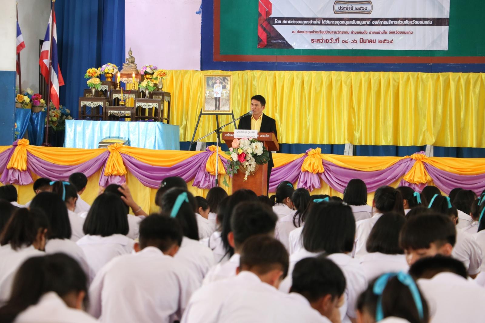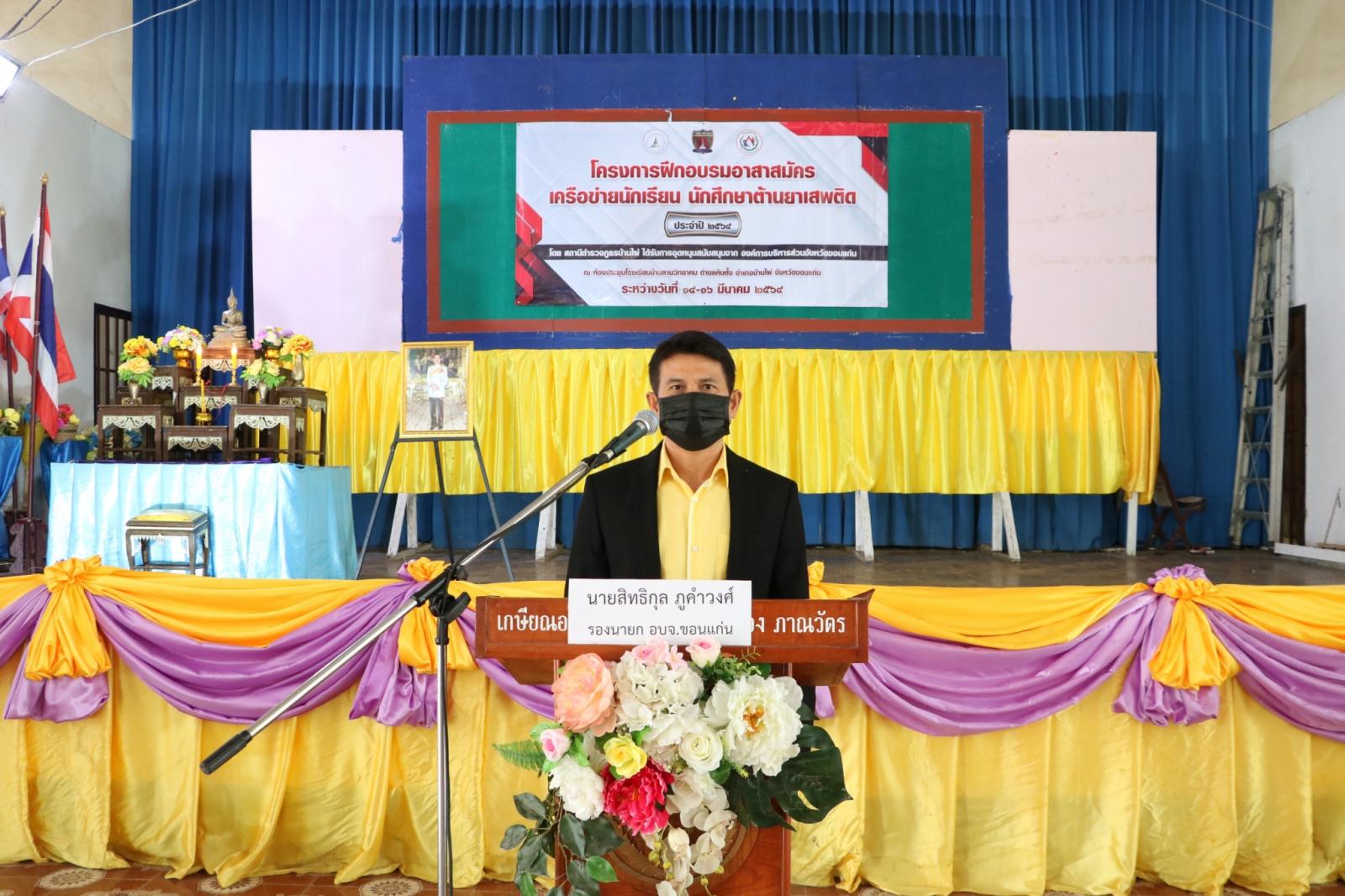 เมื่อวันที่ 15 มีนาคม 2564 เวลา 10.00 น. ดร.พงษ์ศักดิ์ ตั้งวานิชกพงษ์ นายก อบจ.ขอนแก่น มอบหมายให้ นายสิทธิกุล ภูคำวงศ์ รองนายก อบจ.ขอนแก่น เป็นประธานในพิธีเปิดโครงการฝึกอบรมอาสาสมัครเครือข่ายนักเรียน นักศึกษาต้านยาเสพติด ประจำปี 2564 โดยมี พ.ต.ท.วาริน สุขพร สวป.สภ.บ้านไผ่ กล่าวรายงาน ในโอกาสนี้มี พ.ต.อ.พิชัยภูษิส จารุพงศ์ ผกก.สภ.บ้านไผ่, นายจิตรายุทธ ฉัตรชัยพลรัตน์ ส.อบจ.ขอนแก่น อ.บ้านไผ่ เขต 2 ผู้นำท้องถิ่น เข้าร่วมเป็นเกียรติ ณ หอประชุมโรงเรียนบ้านลานวิทยาคม ต.หินตั้ง อ.บ้านไผ่ จ.ขอนแก่น