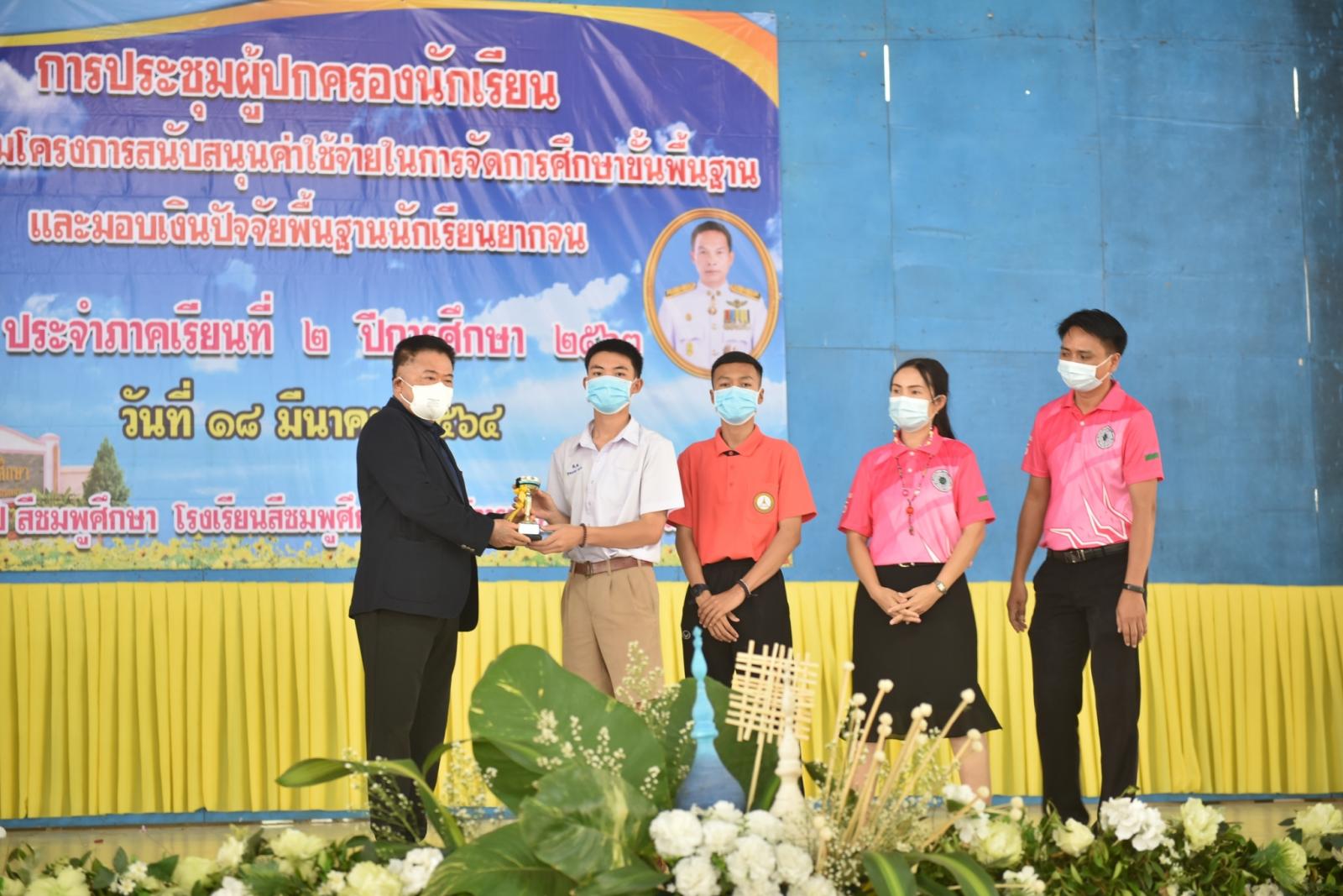 วันที่ 18 มีนาคม 2564 เวลา 09.00 น. ดร.พงษ์ศักดิ์ ตั้งวานิชกพงษ์ นายกองค์การบริหารส่วนจังหวัดขอนแก่น เป็นประธานในพิธีเปิดการประชุมผู้ปกครองนักเรียน มอบเงินตามโครงการสนับสนุนค่าใช้จ่ายในการจัดการศึกษาขั้นพื้นฐาน และมอบเงินปัจจัยพื้นฐานนักเรียนยากจน ประจำภาคเรียนที่ 2 ปีการศึกษา 2563 โดยมี นายบุญจันทร์ มูลกัน ผู้อำนวยการโรงเรียนสีชมพูศึกษา กล่าวรายงาน ในโอกาสนี้มี นายจารุพรรณ ภูวสันติ ส.อบจ.ขอนแก่น เขต อ.สีชมพู ร่วมเป็นเกียรติ คณะกรรมการสถานศึกษาขั้นพื้นฐาน คณะครู ผู้ปกครองนักเรียน ร่วมให้การต้อนรับอย่างอบอุ่น ณ หอประชุมอาคาร 40 ปี โรงเรียนสีชมพูศึกษา อ.สีชมพู จ.ขอนแก่น