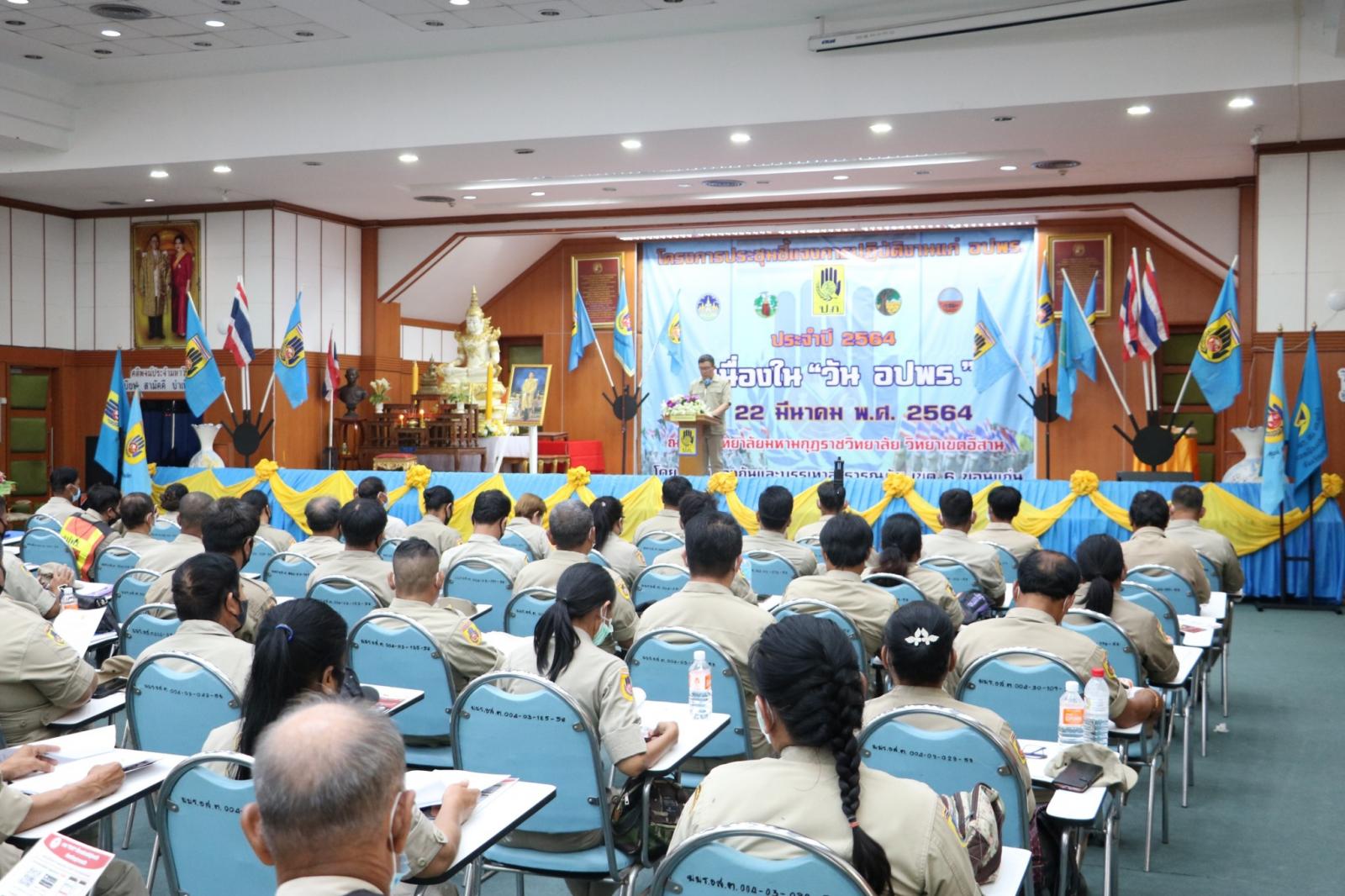 เมื่อวันที่ 22 มีนาคม 2564 เวลา 13.30 น. ดร.พงษ์ศักดิ์ ตั้งวานิชกพงษ์ นายก อบจ.ขอนแก่น มอบหมายให้ นายประสิทธิ์ ทองแท่งไทย รองนายก อบจ.ขอนแก่น ร่วมพิธีเปิดโครงการประชุมชี้แจงนโยบายการปฏิบัติงานแก่ อปพร. ประจำปี 2564 เนื่องใน “วัน อปพร.” โดยมี ดร.สมศักดิ์ จังตระกุล ผู้ว่าราชการจังหวัดขอนแก่น ในฐานะ ผู้อำนวยการศูนย์ อปพร.จังหวัดขอนแก่น เป็นประธาน นายสิริศักดิ์ สกุลโสรัจจะ ผู้อำนวยการศูนย์ ปภ เขต 6 ขอนแก่น กล่าวรายงาน ในโอกาสนี้มี นายธณาวุธ ก้อนใจจิตร รองปลัด ทน.ขอนแก่น ผู้แทนจากหน่วยงานภาครัฐ เข้าร่วมเป็นเกียรติ ณ ห้องประชุมศูนย์วิทยบริการสิรินธร มหาวิทยาลัยมหามกุฏราชวิทยาลัย วิทยาเขตอีสาน อ.เมืองขอนแก่น จ.ขอนแก่น