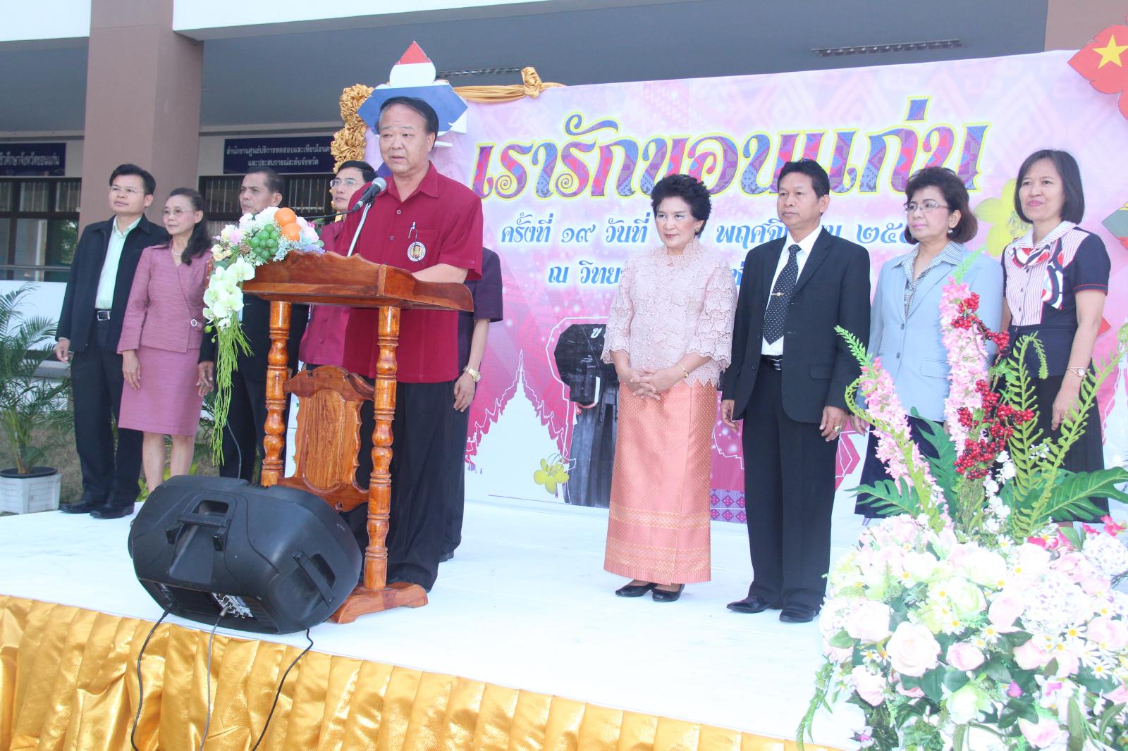 เมื่อวันที่ 27 พฤศจิกายน 2556 เวลา 07.30 น. ดร.พงษ์ศักดิ์ ตั้งวานิชกพงษ์ นายกองค์การบริหารส่วนจังหวัดขอนแก่น มอบหมายให้นางสาวนงลักษณ์ รัตนจันทร์ รองปลัดองค์การบริหารส่วนจังหวัดขอนแก่น พร้อมคณะผู้บริหารองค์การบริหารส่วนจังหวัดขอนแก่น เป็นผู้แทนองค์การบริหารส่วนจังหวัดขอนแก่น ร่วมกิจกรรม “เรารักขอนแก่น” ครั้งที่ 19 ประจำปี 2556 โดยมีวัตถุประสงค์เพื่อเป็นการพบปะหารือ แลกเปลี่ยนความคิดเห็นระหว่างส่วนราชการ หน่วยงานรัฐวิสาหกิจ รวมทั้งองค์กรภาคเอกชนในจังหวัดขอนแก่น เดือนละ 2 ครั้ง ทุกวันพุธสัปดาห์ที่ 2 และ 4 ของเดือน โดยให้ส่วนราชการผลัดเปลี่ยนหมุนเวียนกันเป็นเจ้าภาพ ในการจัดงานครั้งนี้มีสำนักงานอาชีวศึกษาจังหวัดขอนแก่นเป็นเจ้าภาพ ณ วิทยาลัยสารพัดช่างขอนแก่น ถนนมิตรภาพ ตำบลท่าพระ อำเภอเมือง จังหวัดขอนแก่น โดยมี นายสมศักดิ์ สุวรรณสุจริต ผู้ว่าราชการจังหวัดขอนแก่น เป็นประธานในพิธี