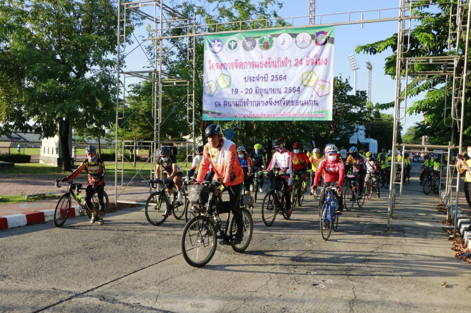 วันที่ 20 มิถุนายน 2564 เวลา 06.00 น. ดร.พงษ์ศักดิ์ ตั้งวานิชกพงษ์ นายก อบจ.ขอนแก่น มอบหมายให้ นายสิทธิกุล ภูคำวงศ์ รองนายก อบจ.ขอนแก่น ร่วมพิธีเปิดกิจกรรมการปั่นจักรยานเพื่อสุขภาพ ในโครงการการแข่งขันกีฬา 24 ชั่วโมง ประจำปี 2564 โดยมี นายสุเทพ มณีโชติ รองผู้ว่าราชการจังหวัดขอนแก่น เป็นประธาน ดร.สุรสิทธิ์ สิงห์หลง ท่องเที่ยวและกีฬาจังหวัดขอนแก่น กล่าวรายงาน ณ สนามกีฬาองค์การบริหารส่วนจังหวัดขอนแก่น อ.เมืองขอนแก่น จ.ขอนแก่น