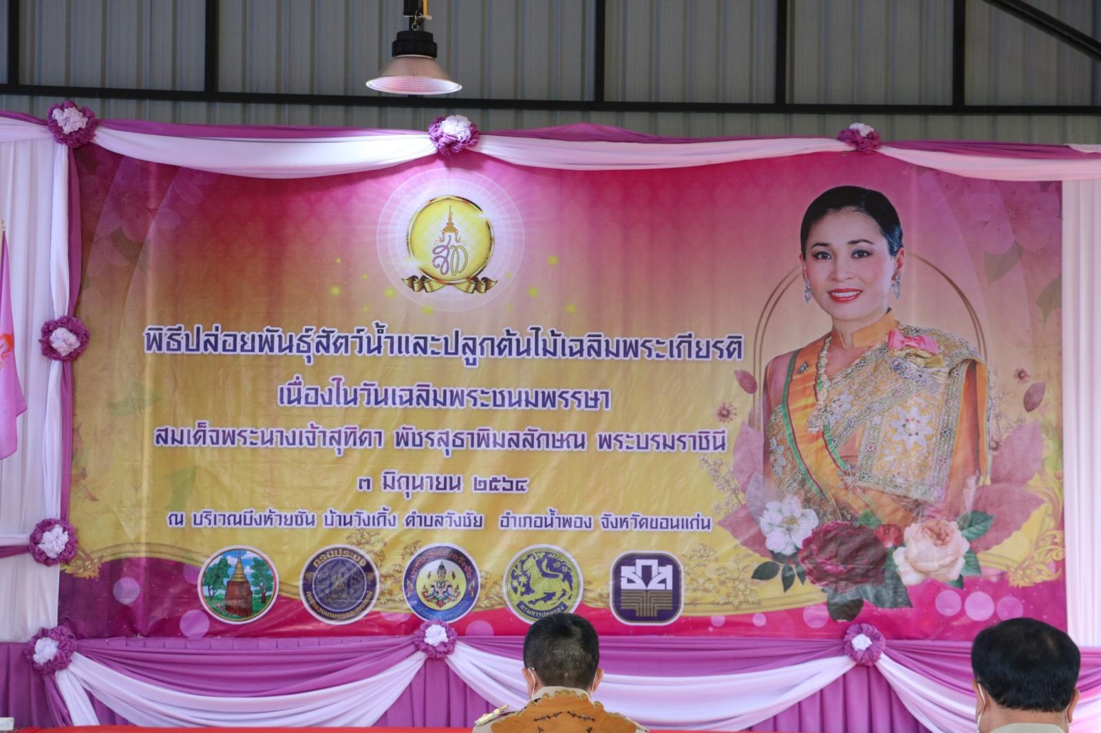 ร่วมพิธีปล่อยพันธุ์สัตว์น้ำเนื่องในวันเฉลิมพระชนมพรรษา สมเด็จพระนางเจ้าสุทิดา พัชรสุธาพิมลลักษณ พระบรมราชินี เพื่อเป็นการเฉลิมพระเกียรติและถวายเป็นพระราชเป็นพระราชกุศล
