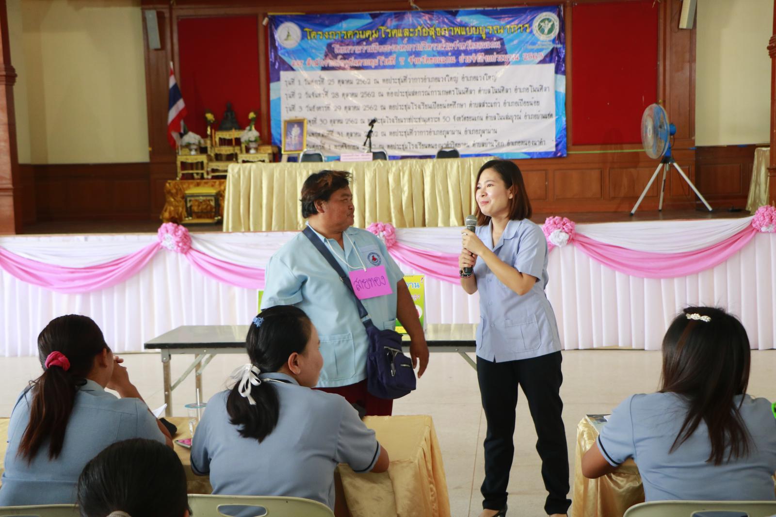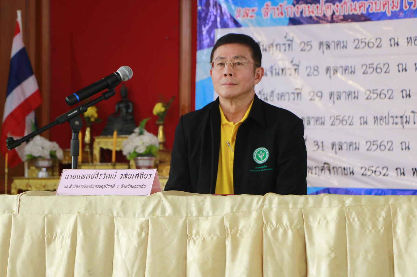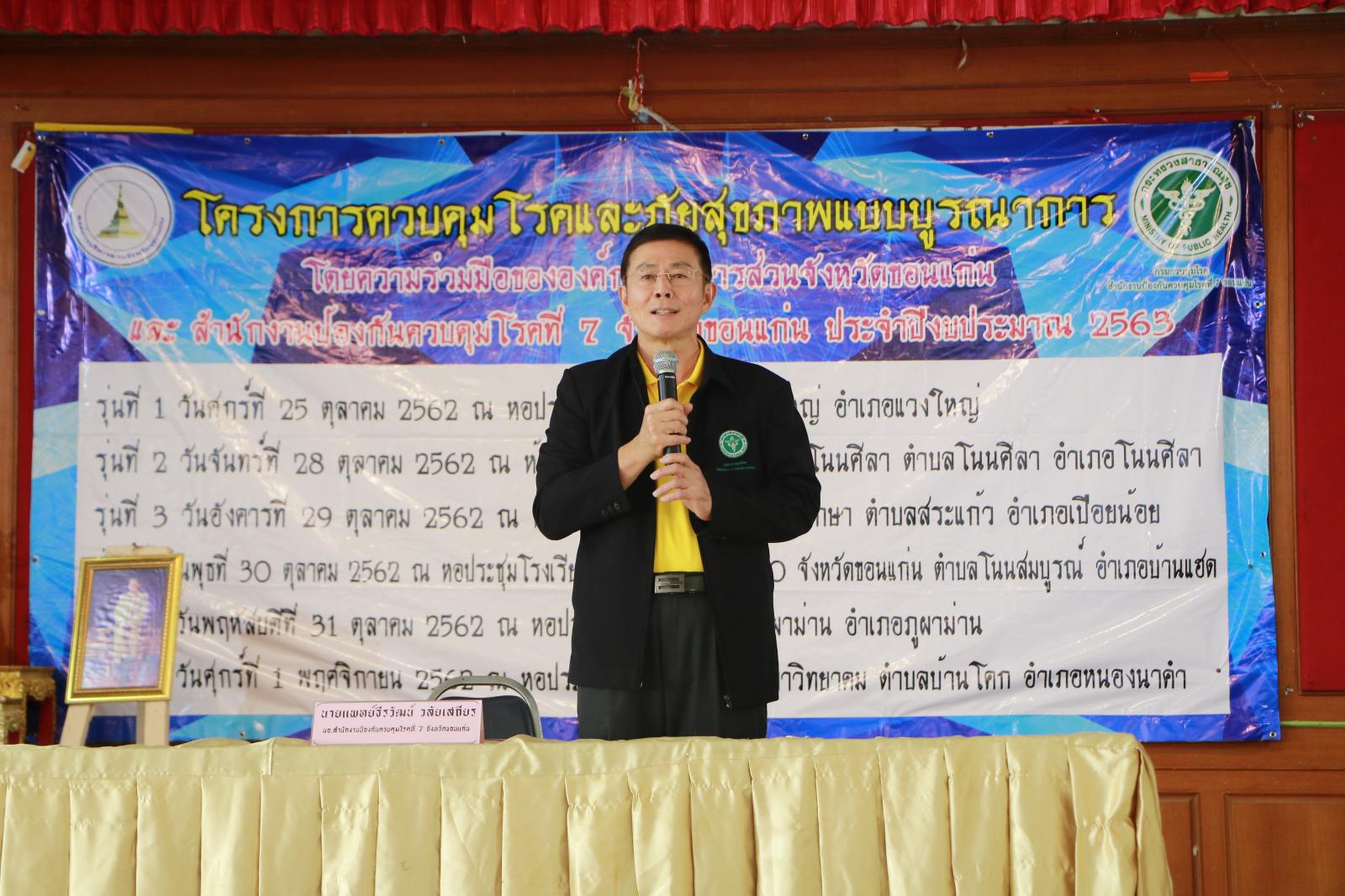 วันที่ 25 ตุลาคม 2562 อบจ.ขอนแก่น ร่วมกับ สำนักงานป้องกันควบคุมโรคที่7 จังหวัดขอนแก่น ดำเนินการโครงการควบคุมโรคแบบบูรณาการประจำปีงบประมาณ 2563 รุ่นที่ 1 โดยมีนายแพทย์ธีรวัฒน์ วลัยเสถียร ผอ.สำนักงานป้องกันควบคุมโรคที่ 7 จังหวัดขอนแก่น ประธานพิธีเปิด ในโอกาสนี้มี นายทองสุข ธนูรัตน์ ส.อบจ.ขอนแก่น เขต อ.แวงใหญ่ ,นายสุรพล เวียงวงษ์ นายกเทศมนตรี ตำบลแวงใหญ่,ดร.เกษร แถวโนนงิ้ว รองผอ. สคร.ที่7 จังหวัดขอนแก่น, นายสุชาติ ผาบสิมมา สสอ.แวงใหญ่,นายบุญเพิ่ม ชัยสา ประธานชมรม อสม.อำเภอแวงใหญ่ ,คณะวิทยากรจาก สคร.ที่7 จังหวัดขอนแก่นและวิทยากรจากศูนย์วิทยาศาสตร์การแพทย์ที่7 จังหวัดขอนแก่น เข้าร่วมเป็นเกียรติ ณ หอประชุมที่ว่าการอำเภอแวงใหญ่ อ.แวงใหญ่ จ.ขอนแก่น