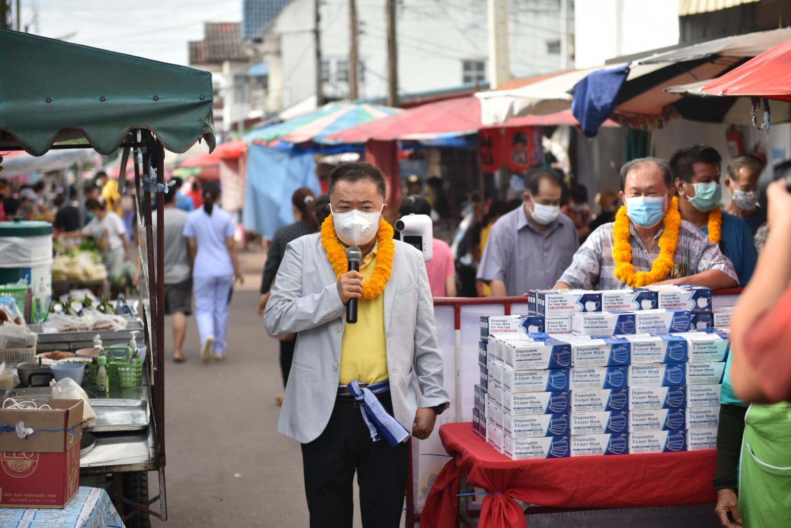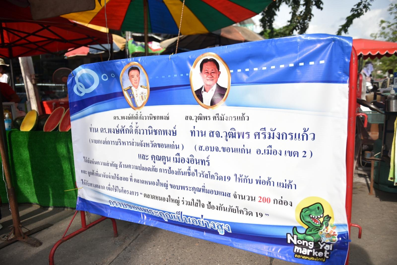 วันที่ 16 กรกฎาคม 2564 เวลา 16.00 น. ดร.พงษ์ศักดิ์ ตั้งวานิชกพงษ์ นายกองค์การบริหารส่วนจังหวัดขอนแก่น พร้อมด้วย นายวุฒิพร ศรีมังกรแก้ว ส.อบจ.ขอนแก่น อ.เมือง เขต 2 มอบหน้ากากอนามัย เพื่อป้องกันการแพร่ระบาดของโรคติดเชื้อไวรัสโควิด-19 จำนวน 200 กล่อง เพื่อใช้ในโครงการ "ตลาดหนองใหญ่ ร่วมใส่ใจ ป้องกันภัยโควิด-19 " ให้แก่ พ่อค้า แม่ค้า และประชาชนที่มาจับจ่ายใช้สอย ณ ตลาดหนองใหญ่ อ.เมืองขอนแก่น จ.ขอนแก่น