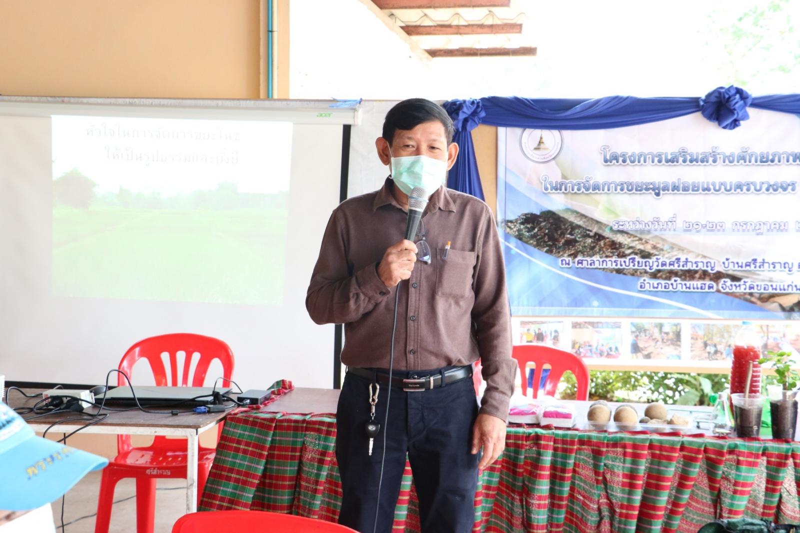 เมื่อวันที่ 23 กรกฎาคม 2564 เวลา 10.00 น. ดร.พงษ์ศักดิ์ ตั้งวานิชกพงษ์ นายก อบจ.ขอนแก่น มอบหมายให้ นายประสิทธิ์ ทองแท่งไทย รองนายก อบจ.ขอนแก่น เป็นประธานพิธีเปิดโครงการเสริมสร้างศักยภาพชุมชนในการขยะมูลฝอยแบบครบวงจร ประจำปี 2564 โดยมี นายเทพมงคล ประดาพล หัวหน้าฝ่ายบริการและเผยแพร่วิชาการ เป็นผู้กล่าวรายงาน ในโอกาสนี้มี ส.อบจ. เขต อ.บ้านแฮด นางนริศรา อรุณเดชาชัย พบปะประชาชน ณ ศาลาการเปรียญวัดศรีสำราญ ต.โนนสมบูรณ์ อ.บ้านแฮด จ.ขอนแก่น