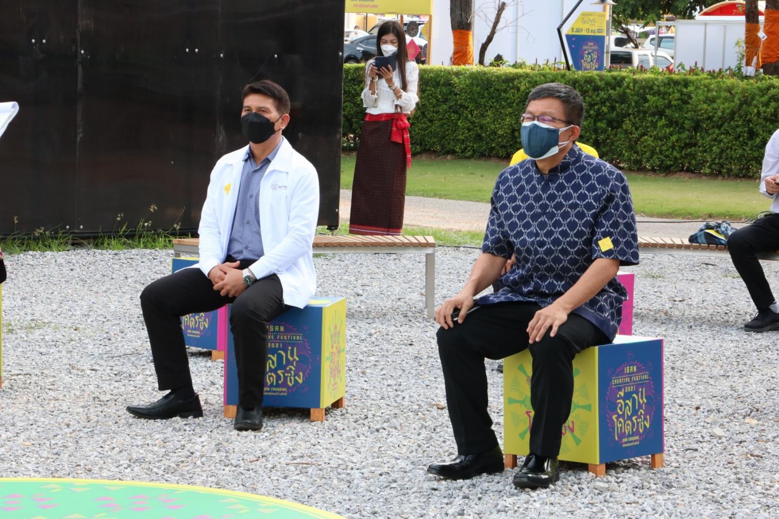 เมื่อวันที่ 6 สิงหาคม 2564 เวลา 17.00 น. ดร.พงษ์ศักดิ์ ตั้งวานิชกพงษ์ นายก อบจ.ขอนแก่น มอบหมายให้ นายสิทธิกุล ภูคำวงศ์ รองนายก อบจ.ขอนแก่น ร่วมกิจกรรมนำชมการจัดแสดงผลงานเทศกาลอีสานสร้างสรรค์ 2564 Isan Creative Festival 2021 Hi-Light Program Tour โดยมี ดร.สมศักดิ์ จังตระกุล ผู้ว่าราชการจังหวัดขอนแก่น เป็นประธาน นายชุตยาเวศ สินธุพันธุ์ ผอ.สำนักส่งเสริมเศรษฐกิจสร้างสรรค์ ขอนแก่น กล่าวต้อนรับ ในโอกาสนี้มี นายศรัทธา คชพลายุกต์ รองผู้ว่าราชการจังหวัดขอนแก่น พร้อมด้วย ผู้แทนจากหน่วยงานภาครัฐและเอกชน เข้าร่วมกิจกรรม ณ ศูนย์สร้างสรรค์งานออกแบบ ขอนแก่น อ.เมืองขอนแก่น จ.ขอนแก่น