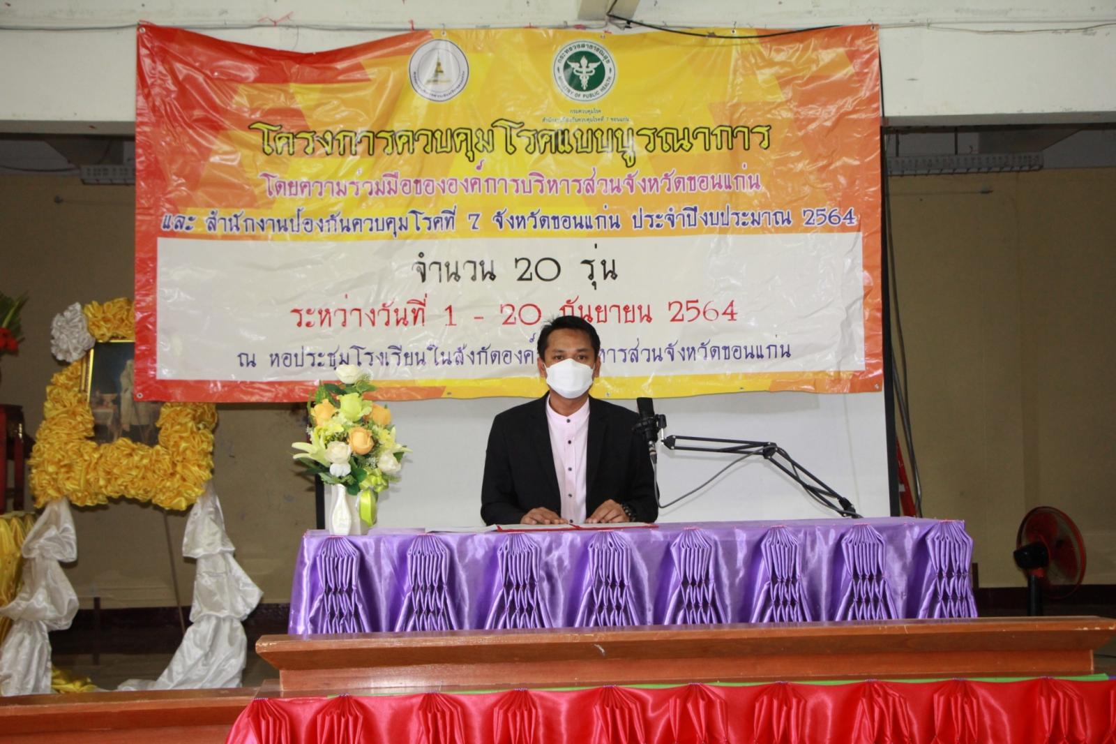 ในวันที่ 4 กันยายน 2564 เวลา 11.30 น. ดร.พงษ์ศักดิ์ ตั้งวานิชกพงษ์ นายก อบจ.ขอนแก่น มอบหมายให้ นายอรรคพล คามดิษฐ์ ส.อบจ.ขอนแก่น เขต อ.ชนบท เป็นประธานในการเปิดโครงการควบคุมโรคแบบบูรณาการ รุ่นที่ 4 โดยความร่วมมือขององค์การบริหารส่วนจังหวัดขอนแก่น และสำนักงานป้องกันควบคุมโรคที่ 7 จังหวัดขอนแก่น เพื่อพัฒนาศักยภาพอาสาสมัครสาธารณสุขประจำหมู่บ้าน บุคลากรด้านสาธารณสุข และประชาชนอาสาสมัครในพื้นที่ ให้มีความรู้และทักษะในการป้องกันควบคุมโรคที่สำคัญในพื้นที่ และการจัดอบรมในครั้งนี้ได้รับเกียรติจากสำนักงานป้องกันควบคุมโรคที่ 7 จังหวัดขอนแก่นเป็นวิทยากร โดยมีนางสาวเกษร แถวโนนงิ้ว รอง ผอ.สำนักงานป้องกันควบคุมโรคที่ 7 จังหวัดขอนแก่น เป็นผู้กล่าวรายงาน ในโอกาสนี้มี นายก อบต.บ้านแท่น ผอ.โรงเรียนแท่นศิลาทิพย์ศึกษา เจ้าหน้าที่โรงพยาบาลส่งเสริมสุขภาพประจำตำบลบ้านแท่น ประธาน อสม.ตำบลบ้านแท่น ร่วมเป็นเกียรติ ณ หอประชุมโรงเรียนแท่นศิลาทิพย์ศึกษา อ.ชนบท จ.ขอนแก่น