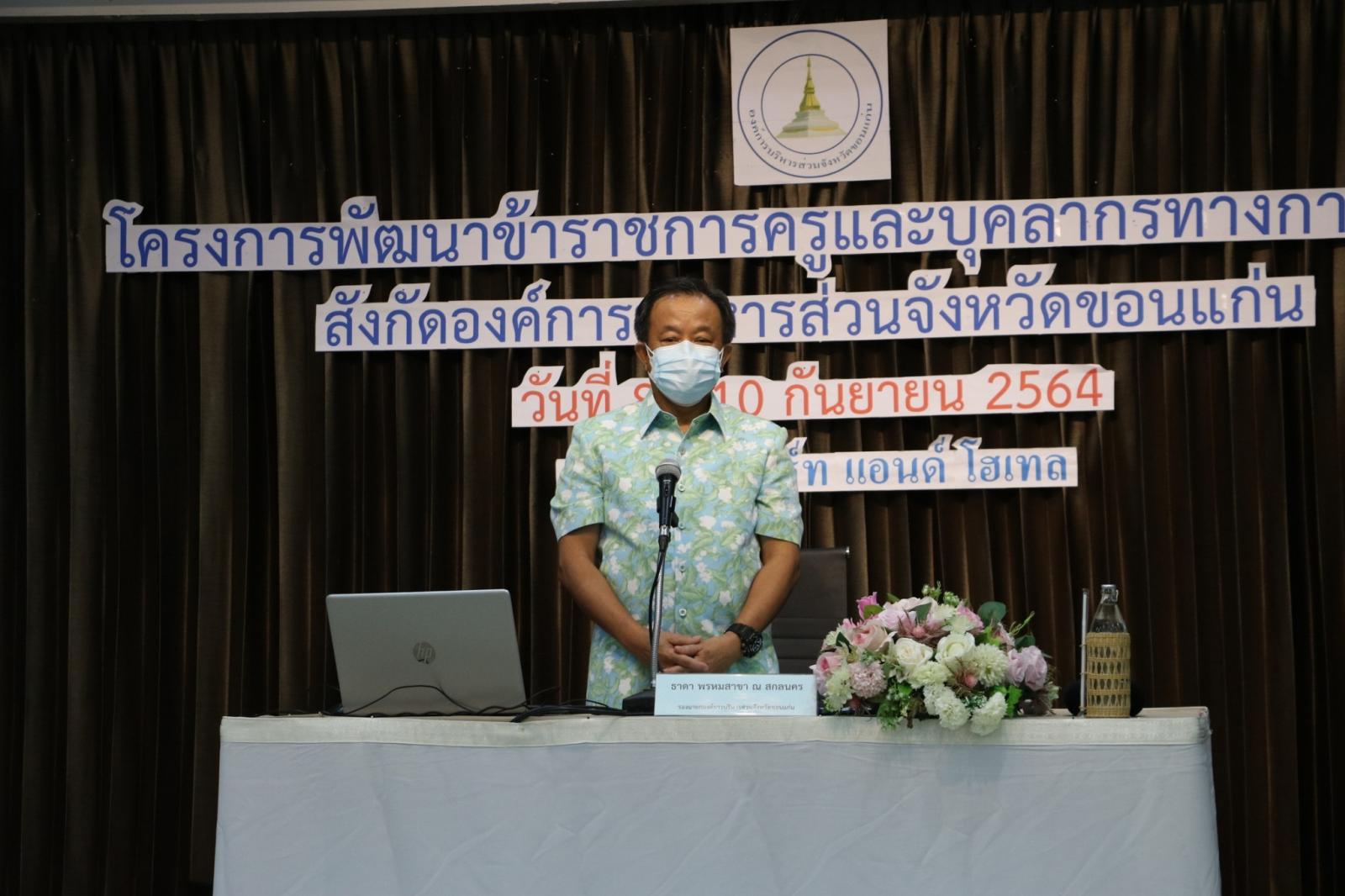 เมื่อวันที่ 8 กันยายน 2564 เวลา 09.00 น. ท่านนายก อบจ.ขอนแก่น ดร.พงษ์ศักดิ์ ตั้งวานิชกพงษ์ มอบหมายให้ รองนายก อบจ.ขอนแก่น นายธาดา พรหมสาขา ณ สกลนคร เป็นประธานพิธีเปิดโครงการพัฒนาข้าราชการครูและบุคลากรทางการศึกษา สังกัดองค์การบริหารส่วนจังหวัดขอนแก่น ในโอกาสนี้ นายนำศิลป์ วิเศษ ผู้อำนวยการสำนักการศึกษาศาสนาและวัฒนธรรม รักษาราชการแทนรองปลัด อบจ.ขอนแก่น กล่าวรายงาน และมีคณะครูบุคลากรทางการศึกษา เข้าร่วมโครงการพัฒนาข้าราชการครูและบุคลากรทางการศึกษา ณ โรงแรมราชาวดี รีสอร์ท แอนด์ โฮเทล อ.เมือง จ.ขอนแก่น
