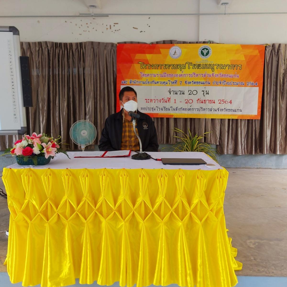 เมื่อวันที่ 13 กันยายน 2564 เวลา 11.00 น. ดร.พงษ์ศักดิ์ ตั้งวานิชกพงษ์ นายก อบจ.ขอนแก่น มอบหมายให้ นายรุ่งโรจน์ เย็นสบาย ส.อบจ.ขอนแก่น อ.อุบลรัตน์ เป็นประธานในการเปิดโครงการควบคุมโรคแบบบูรณาการ รุ่นที่ 13 โดยความร่วมมือขององค์การบริหารส่วนจังหวัดขอนแก่น และสำนักงานป้องกันควบคุมโรคที่ 7 จังหวัดขอนแก่น เพื่อพัฒนาศักยภาพอาสาสมัครสาธารณสุขประจำหมู่บ้าน บุคลากรด้านสาธารณสุข และประชาชนอาสาสมัครในพื้นที่ ให้มีความรู้และทักษะในการป้องกันควบคุมโรคที่สำคัญในพื้นที่ และการจัดอบรมในครั้งนี้ได้รับเกียรติจากสำนักงานป้องกันควบคุมโรคที่ 7 จังหวัดขอนแก่นเป็นวิทยากร โดยมีนางศิริพร ประดาพล หัวหน้าฝ่ายอำนวยการเป็นผู้กล่าวรายงาน ในโอกาสนี้มี นายเบญจพล บรรพตะธิ รองผอ.โรงเรียนพูวัดพิทยาคม นายอาคม ปัญญาแก้ว สาธารณสุขอำเภออุบลรัตน์ นายณรงค์ บึงมุม ผู้ช่วยสาธารณสุขอำเภออุบลรัตน์ เจ้าหน้าที่ รพ.สต.บ้านอุดมศิลป์และคณะคุณครู ร่วมเป็นเกียรติในพิธีเปิด ณ หอประชุมโรงเรียนพูวัดพิทยามคม อ.อุบลรัตน์ จ.ขอนแก่น