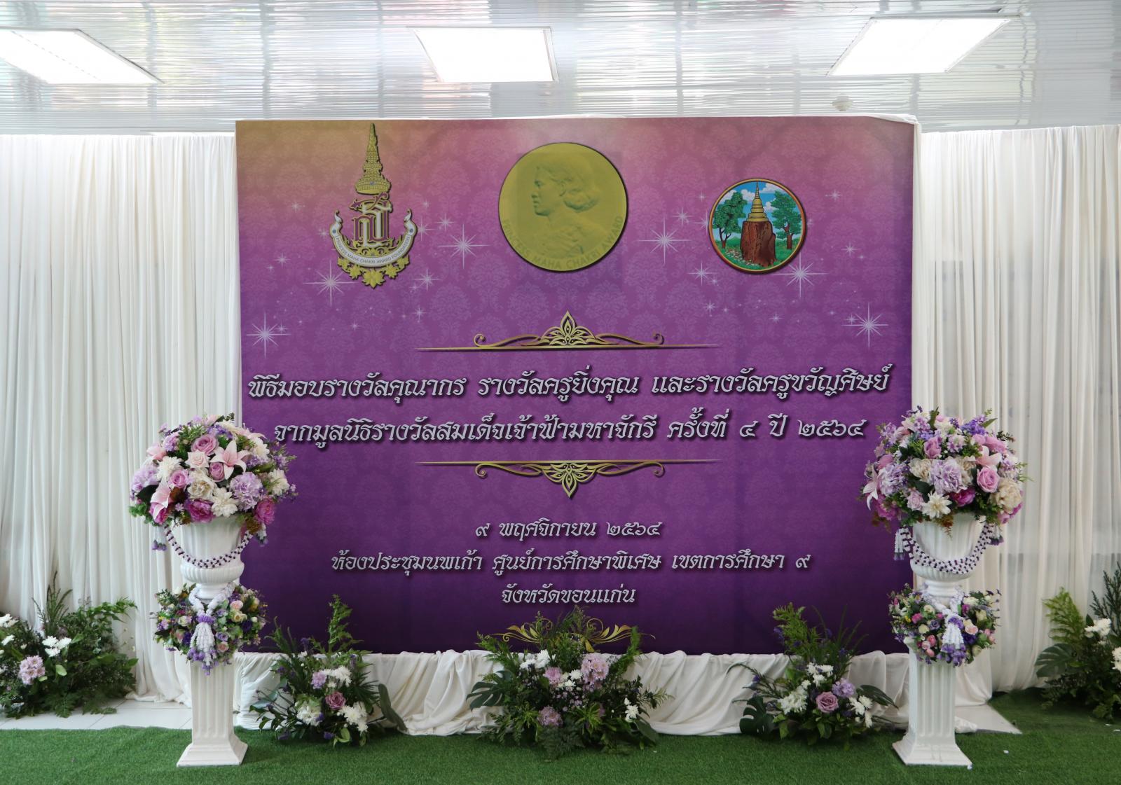 วันที่ 9 พฤศจิกายน 2564 เวลา 09.00 น. ดร.พงษ์ศักดิ์ ตั้งวานิชกพงษ์ นายกองค์การบริหารส่วนจังหวัดขอนแก่น มอบหมายให้นายธาดา พรหมสาขา ณ สกลนคร รองนายกองค์การบริหารส่วนจังหวัดขอนแก่น ร่วมพิธีมอบรางวัลคุณากร รางวัลครูยิ่งคุณ และรางวัลครูขวัญศิษย์ ปี 2564 โดยมี ดร.สมศักดิ์ จังตระกุล ผู้ว่าราชการจังหวัดขอนแก่น เป็นประธานในพิธี และ ดร.กันตธี เนื่องศรี รองศึกษาธิการจังหวัดขอนแก่น เป็นผู้กล่าวรายงาน ณ ห้องประชุมนพเก้า ชั้น 2 ศูนย์การศึกษาพิเศษ เขตการศึกษา 9 จังหวัดขอนแก่น