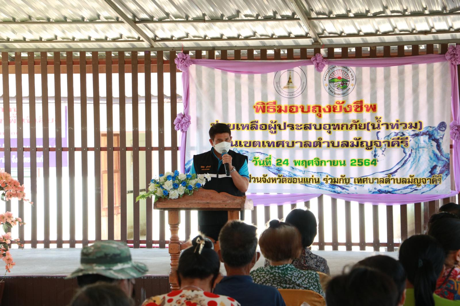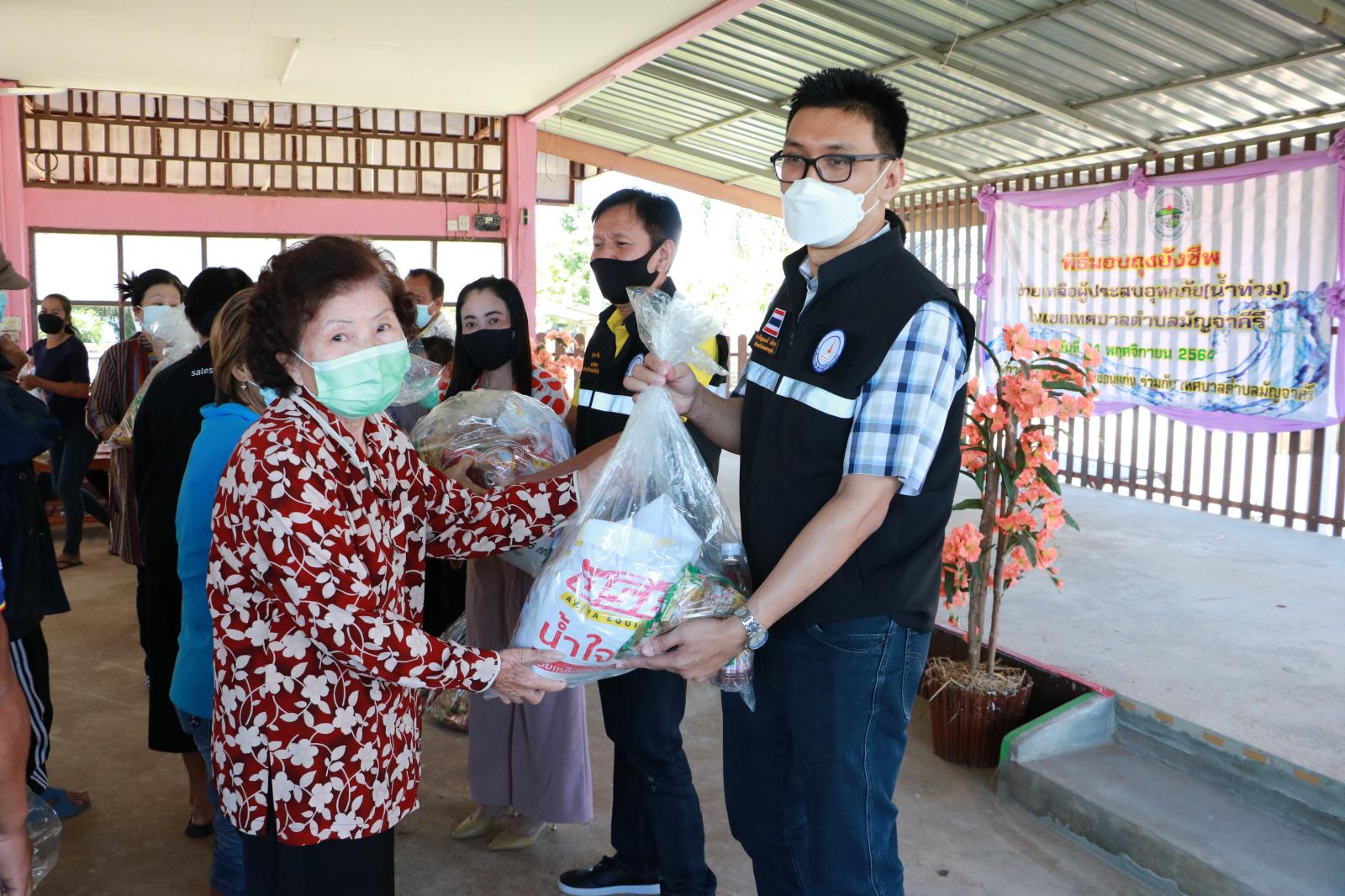 มอบถุงยังชีพให้กับประชาชนที่ประสบอุทกภัยในเขตพื้นที่อำเภอมัญจาคีรี