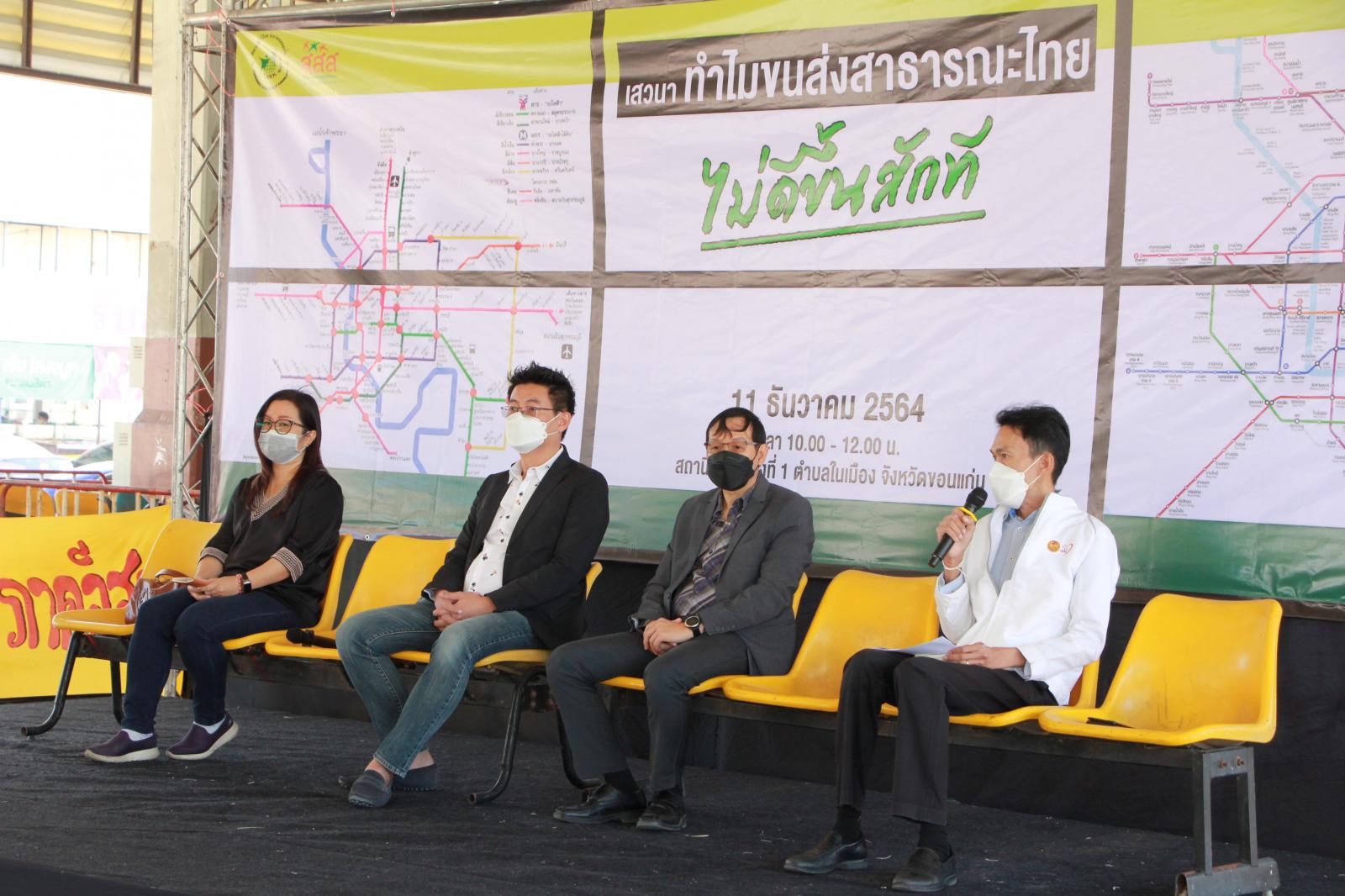 มื่อวันที่ 11 ธันวาคม 2564 เวลา 09.30 น. ดร.พงษ์ศักดิ์ ตั้งวานิชกพงษ์ นายก อบจ.ขอนแก่น มอบหมายให้ นายประสิทธิ์ ทองแท่งไทย รองนายก อบจ.ขอนแก่น ร่วมเสวนาในหัวข้อ “ทำไมขนส่งสาธารณะไทย ไม่ดีขึ้นสักที” โดยมี ผู้แทนจากขนส่งจังหวัดขอนแก่น ,เทศบาลนครขอนแก่น, เครือข่ายผู้บริโภค ภาคอีสาน และผู้แทนจากภาคประชาชน เข้าร่วมรับฟังเสวนา ณ สถานีขนส่งแห่งที่ 1 อ.เมืองขอนแก่น จ.ขอนแก่น