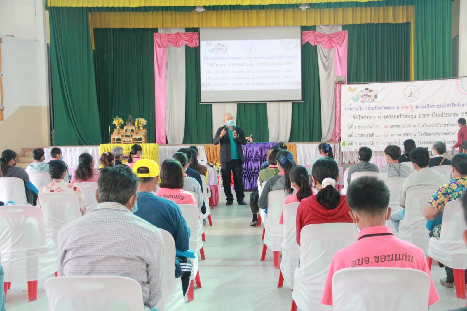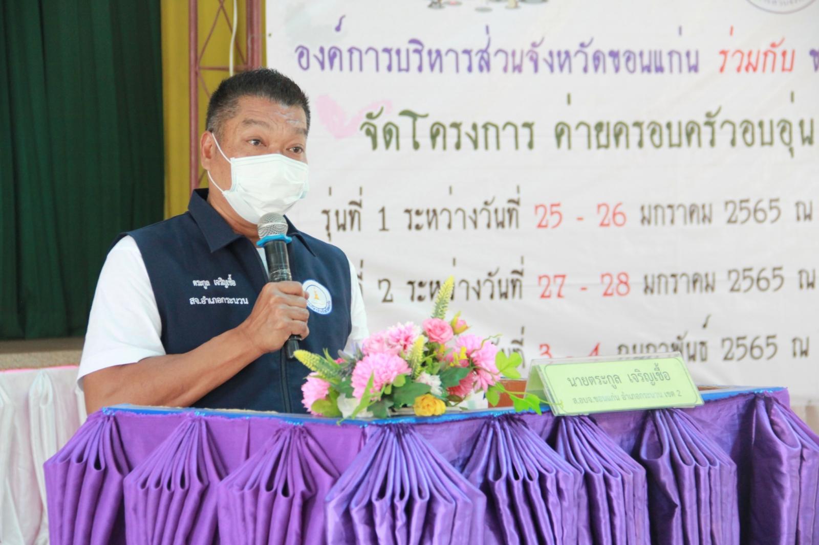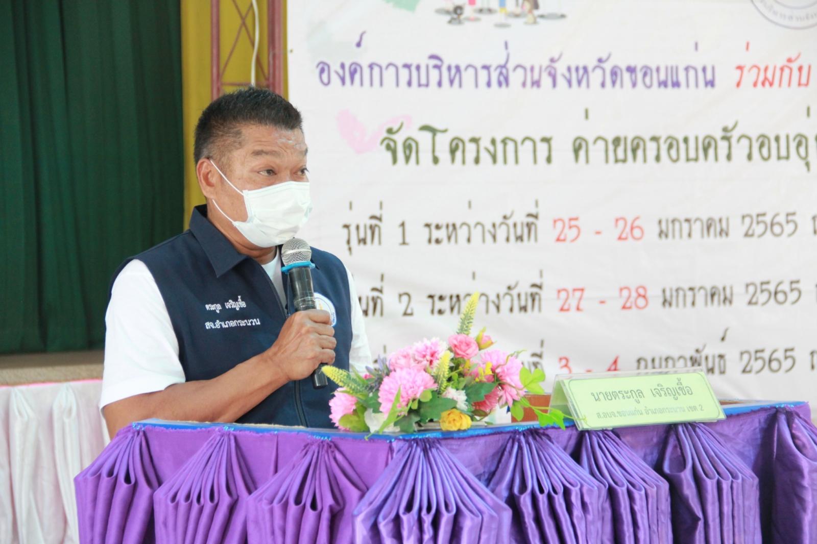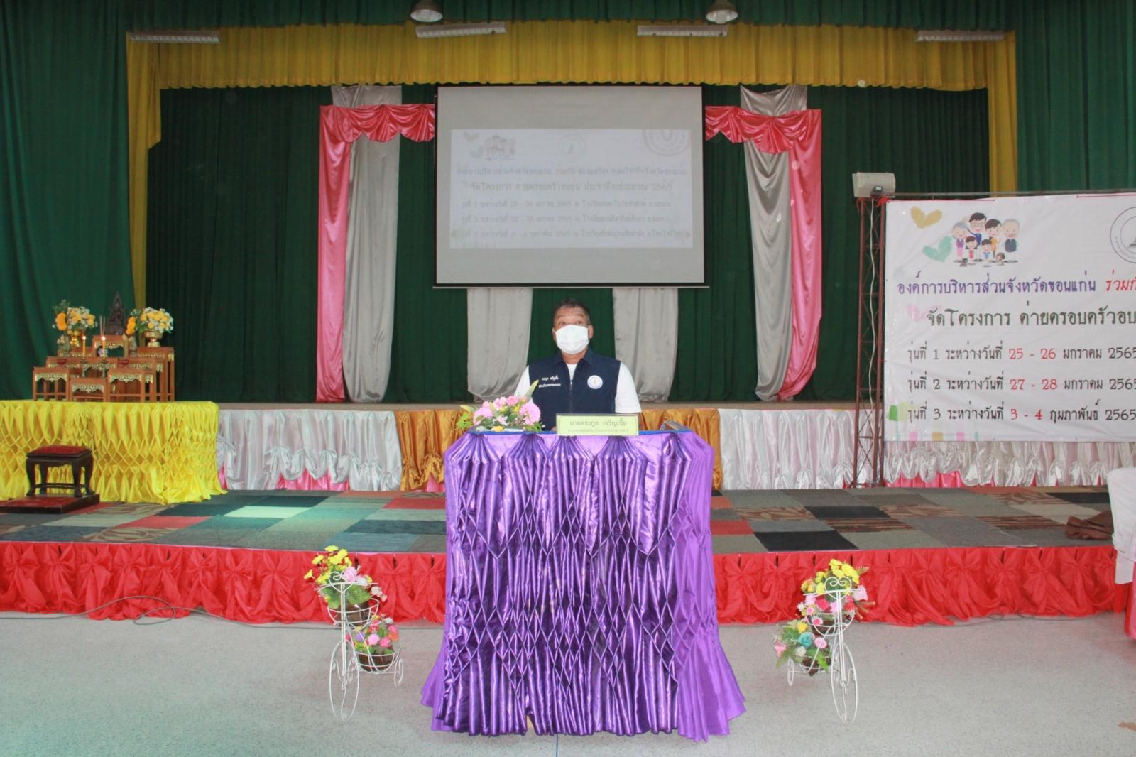 เมื่อวันที่ 25 มกราคม 2565 เวลา 13.30 น. ดร.พงษ์ศักดิ์ ตั้งวานิชกพงษ์ นายก อบจ.ขอนแก่น มอบหมายให้ นายตระกูล เจริญเชื้อ ส.อบจ.ขอนแก่น อ.กระนวน เขต 2 เป็นประธานในพิธีเปิดโครงการค่ายครอบครัวอบอุ่น รุ่นที่ 1 ประจำปีงบประมาณ 2565 ระหว่างวันที่ 25 – 26 มกราคม ณ รร.หนองโนประชาสรรค์ โดยมี นางศิริพร ประดาพล หัวหน้าฝ่ายอำนวยการ เป็นผู้กล่าวรายงาน ในโอกาสนี้มี นางสุภลักษณ์ ดียิ่ง พร้อมคณะครู ร่วมเป็นเกียรติ ณ โรงเรียนหนองโนประชาสรรค์ อ.กระนวน จ.ขอนแก่น