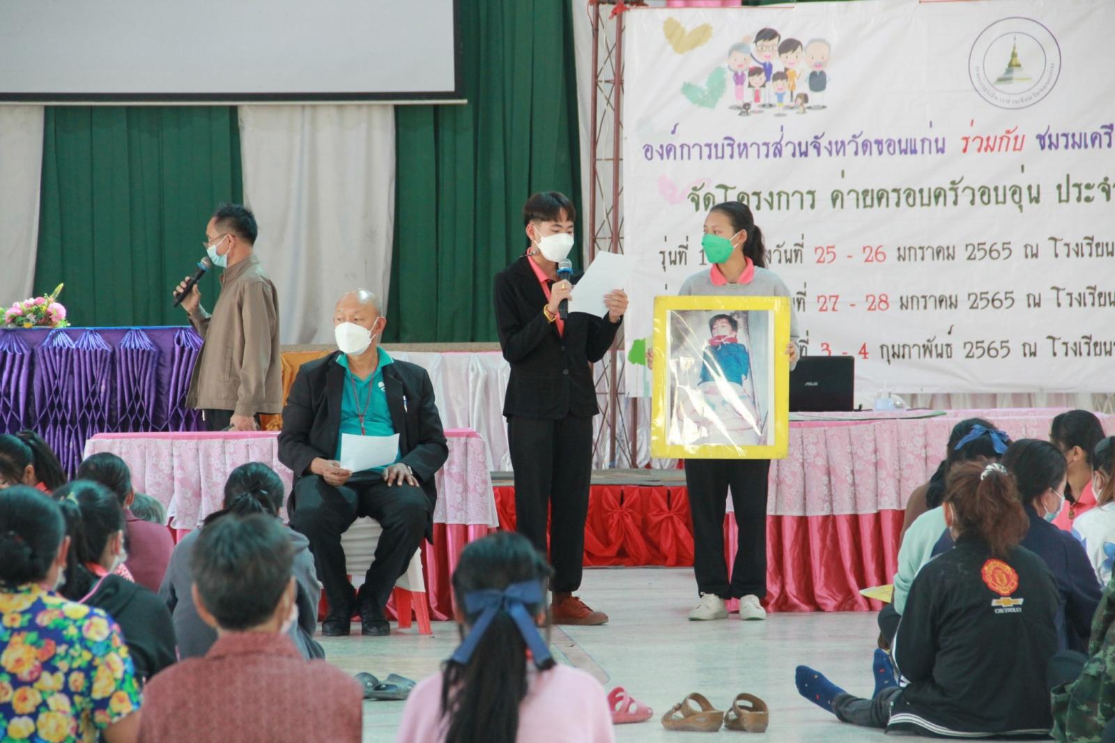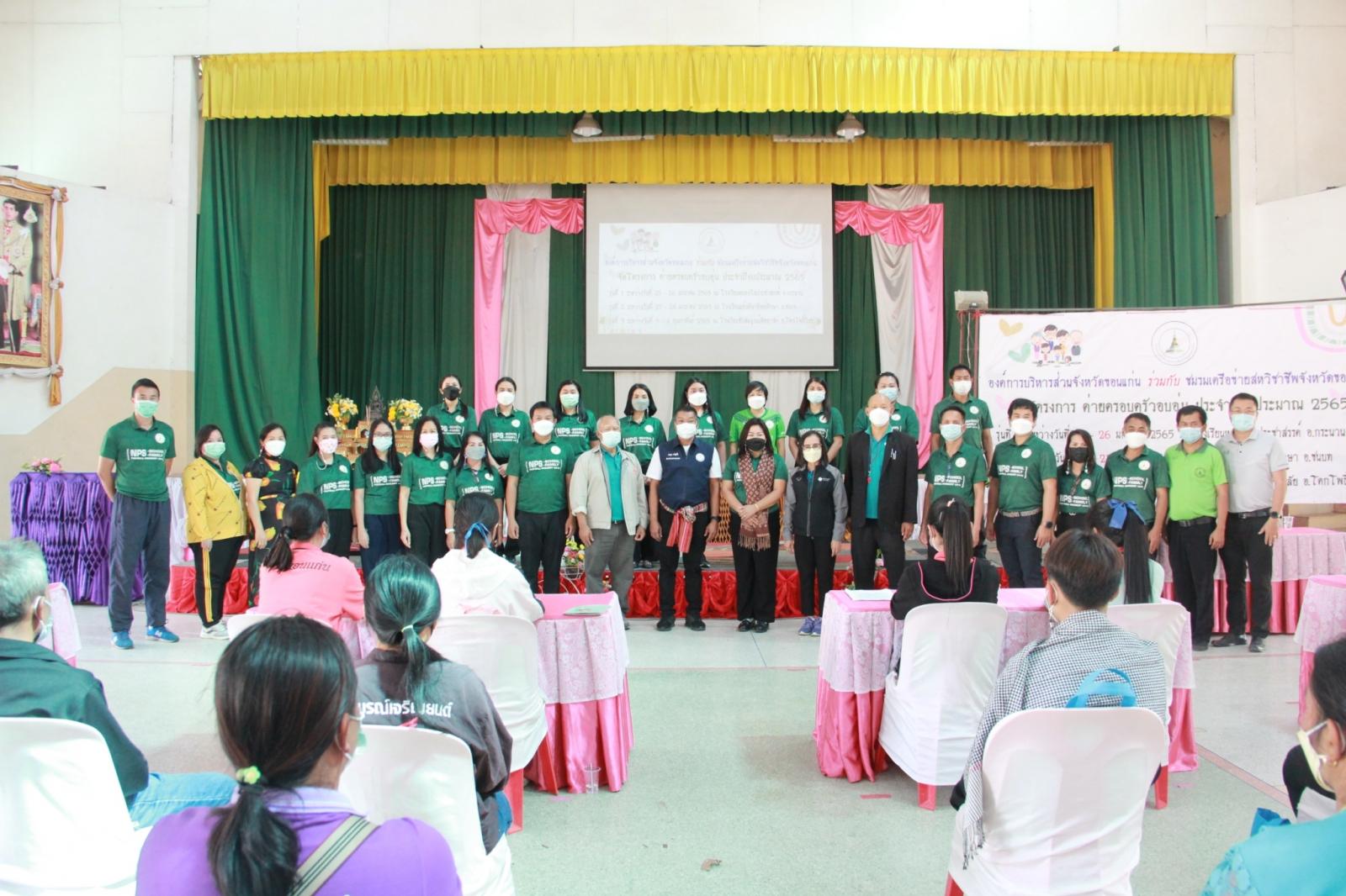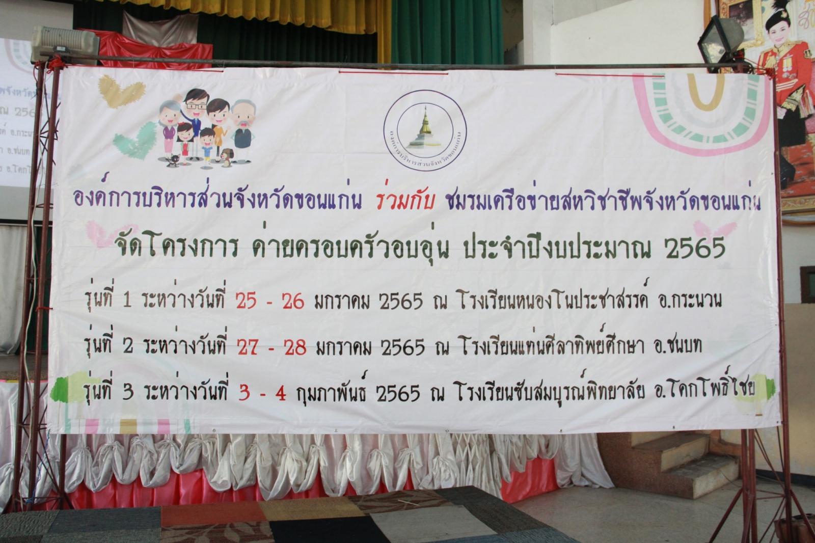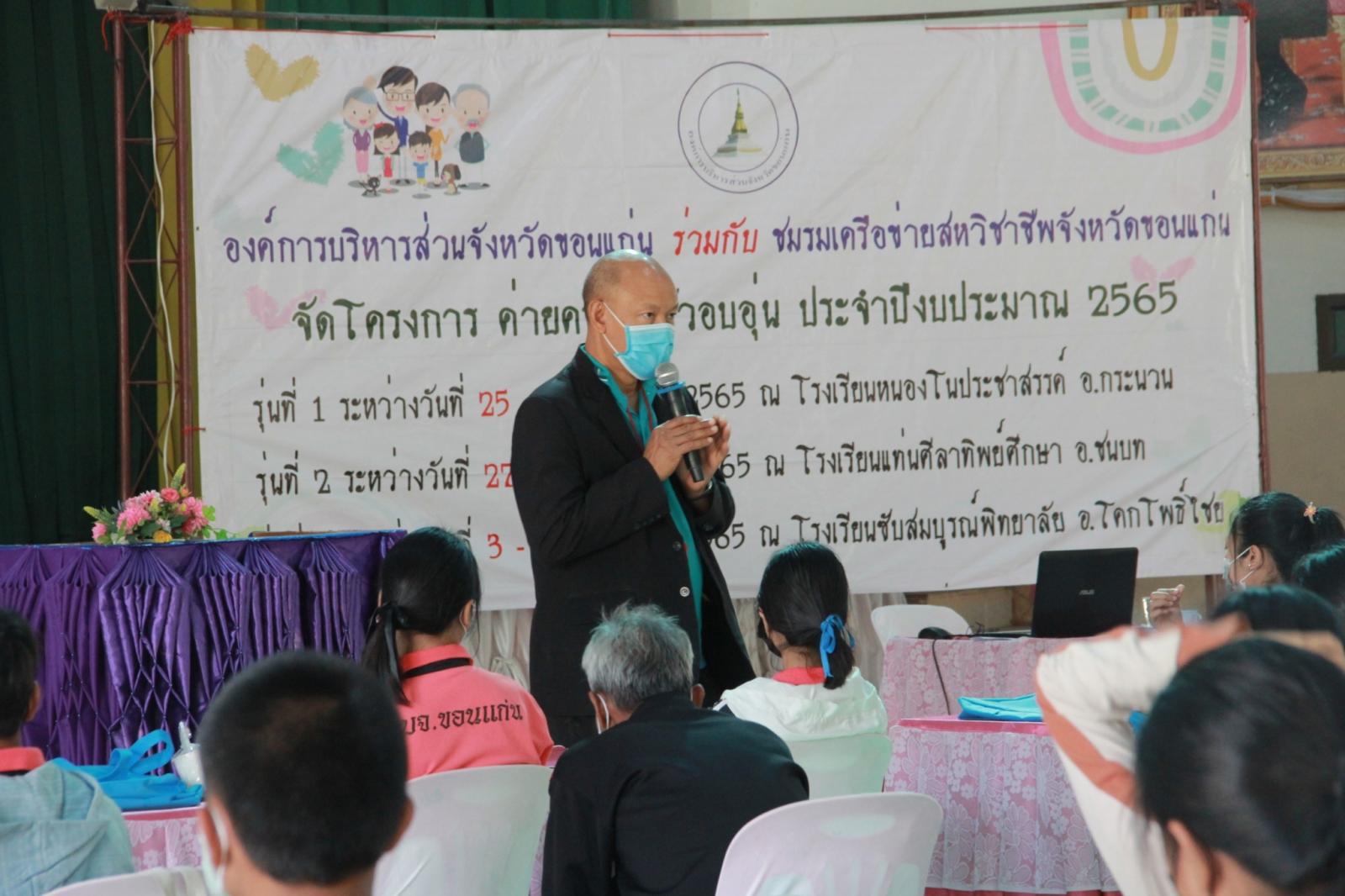 เมื่อวันที่ 25 มกราคม 2565 เวลา 13.30 น. ดร.พงษ์ศักดิ์ ตั้งวานิชกพงษ์ นายก อบจ.ขอนแก่น มอบหมายให้ นายตระกูล เจริญเชื้อ ส.อบจ.ขอนแก่น อ.กระนวน เขต 2 เป็นประธานในพิธีเปิดโครงการค่ายครอบครัวอบอุ่น รุ่นที่ 1 ประจำปีงบประมาณ 2565 ระหว่างวันที่ 25 – 26 มกราคม ณ รร.หนองโนประชาสรรค์ โดยมี นางศิริพร ประดาพล หัวหน้าฝ่ายอำนวยการ เป็นผู้กล่าวรายงาน ในโอกาสนี้มี นางสุภลักษณ์ ดียิ่ง พร้อมคณะครู ร่วมเป็นเกียรติ ณ โรงเรียนหนองโนประชาสรรค์ อ.กระนวน จ.ขอนแก่น
