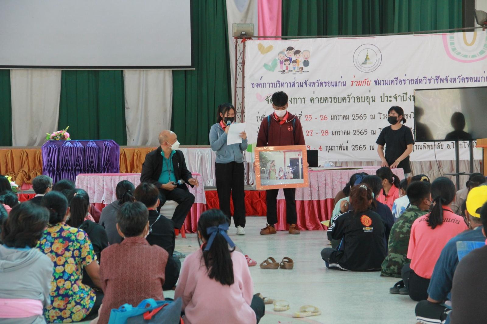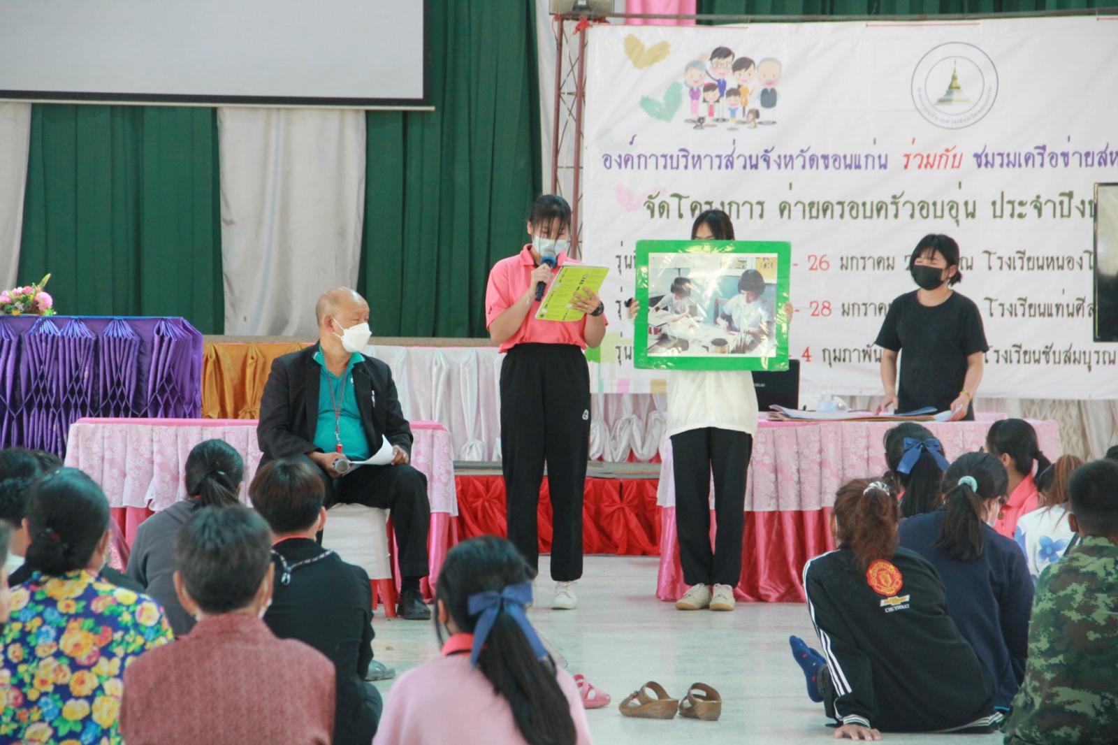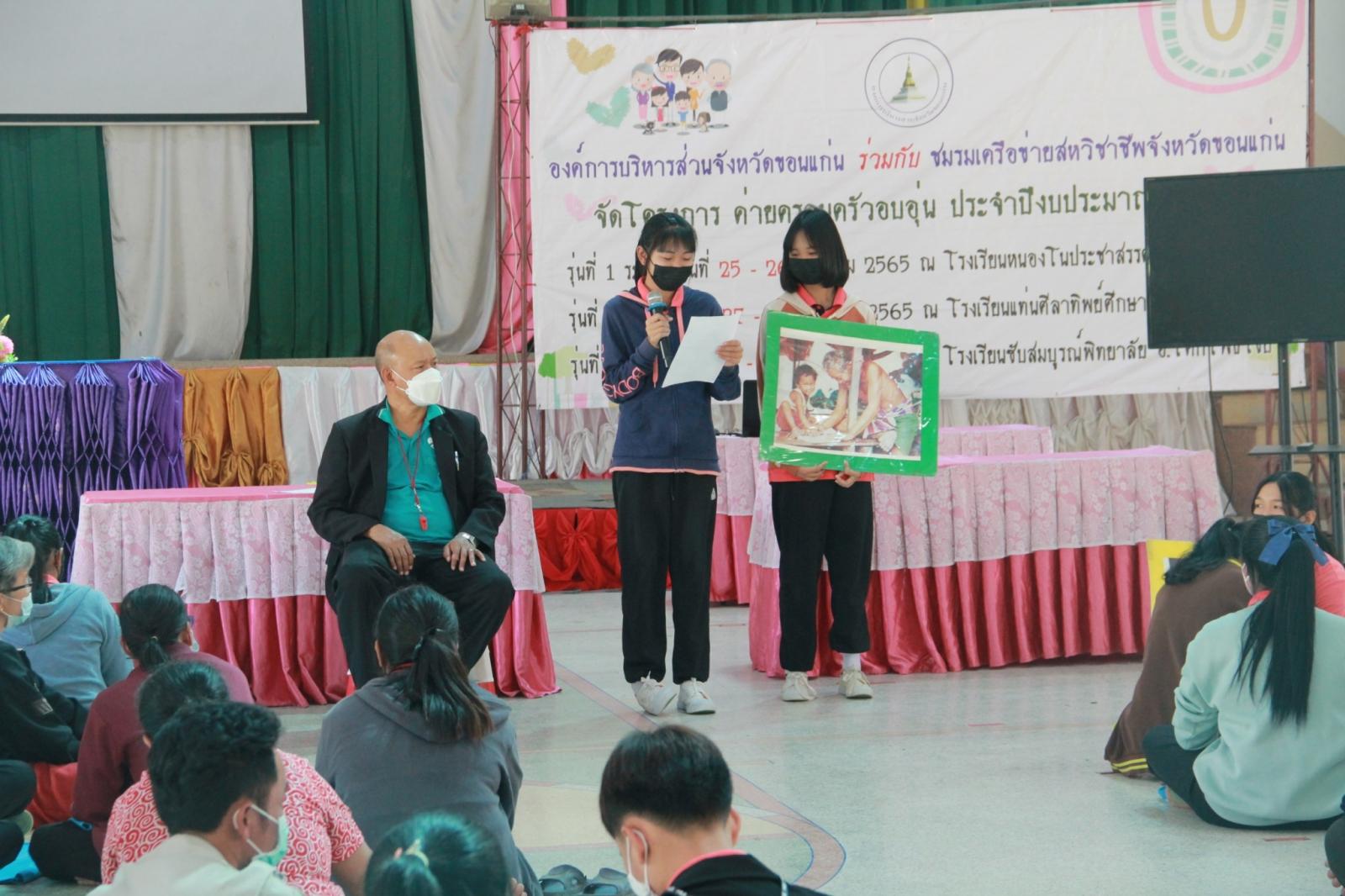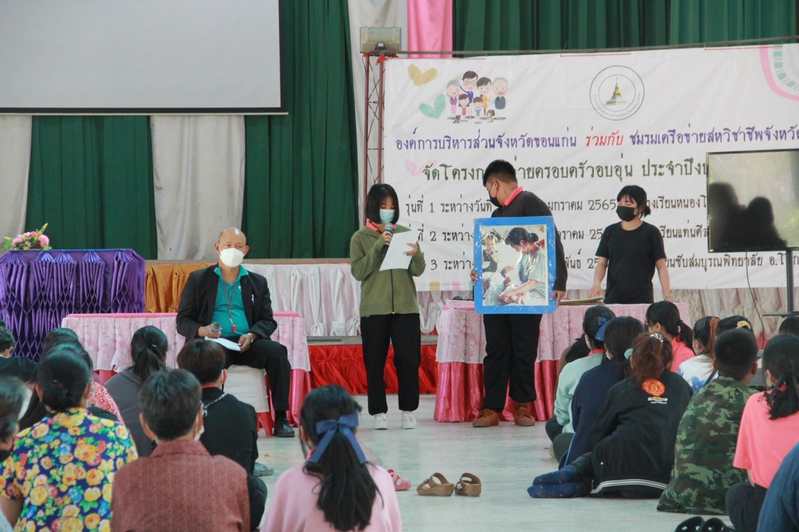 เมื่อวันที่ 25 มกราคม 2565 เวลา 13.30 น. ดร.พงษ์ศักดิ์ ตั้งวานิชกพงษ์ นายก อบจ.ขอนแก่น มอบหมายให้ นายตระกูล เจริญเชื้อ ส.อบจ.ขอนแก่น อ.กระนวน เขต 2 เป็นประธานในพิธีเปิดโครงการค่ายครอบครัวอบอุ่น รุ่นที่ 1 ประจำปีงบประมาณ 2565 ระหว่างวันที่ 25 – 26 มกราคม ณ รร.หนองโนประชาสรรค์ โดยมี นางศิริพร ประดาพล หัวหน้าฝ่ายอำนวยการ เป็นผู้กล่าวรายงาน ในโอกาสนี้มี นางสุภลักษณ์ ดียิ่ง พร้อมคณะครู ร่วมเป็นเกียรติ ณ โรงเรียนหนองโนประชาสรรค์ อ.กระนวน จ.ขอนแก่น