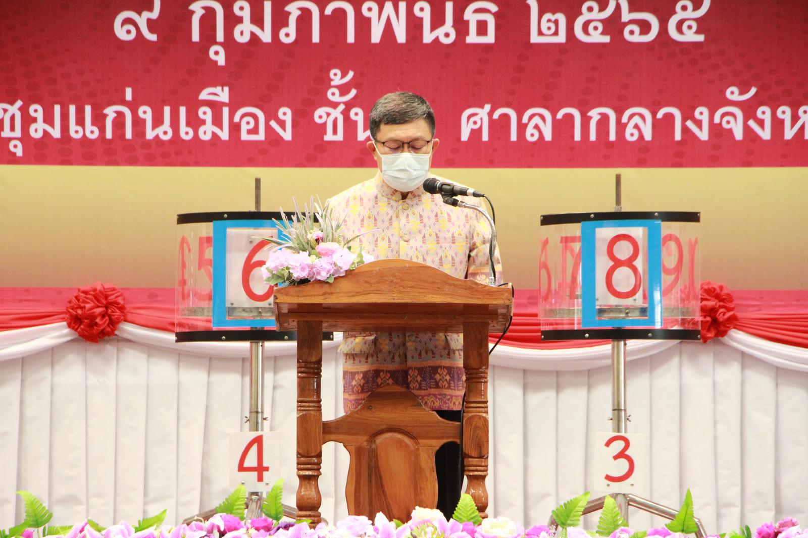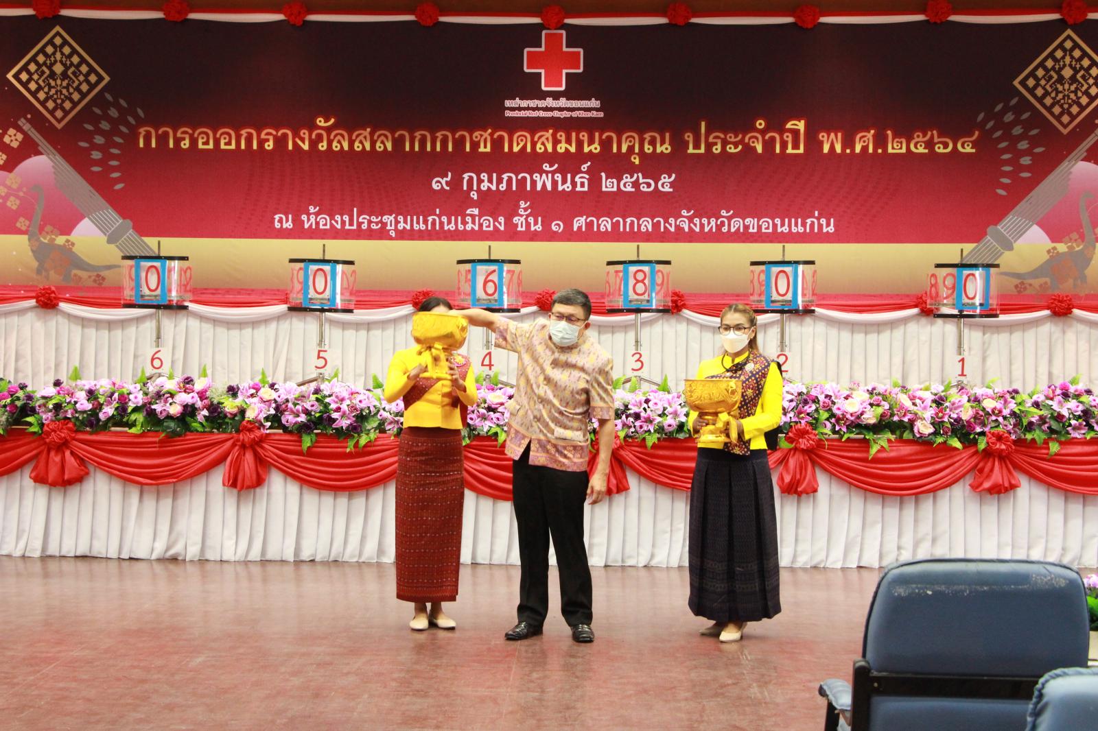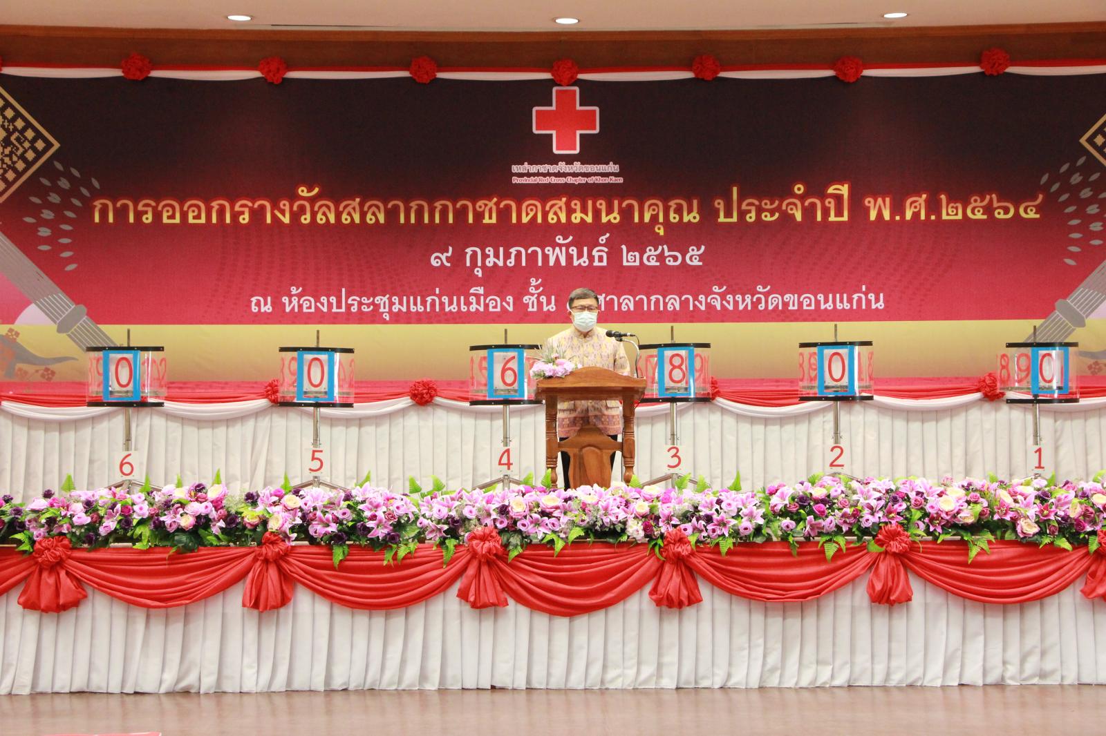เมื่อวันที่ 9 กุมภาพันธ์ 2564 เวลา 13.30 น. ดร.พงษ์ศักดิ์ ตั้งวานิชกพงษ์ นายก อบจ.ขอนแก่น มอบหมายให้ นายสิมธิกุล ภูคำวงศ์ รองนายก อบจ.ขอนแก่น ร่วมเป็นเกียรติและสักขีพยานการออกสลากกาชาดสมนาคุณ ประจำปี 2564 โดยมี ดร.สมศักดิ์ จังตระกุล ผู้ว่าราชการจังหวัดขอนแก่น เป็นประธาน นางสิริพร จังตระกุล นายกเหล่ากาชาดจังหวัดขอนแก่น กล่าวรายงาน ในโอกาสนี้มี นายจารึก เหล่าประเสริฐ, นายพันธุ์เทพ เสาโกลศล รองผู้ว่าราชการจังหวัดขอนแก่น ผู้แทนจากหน่วยงานภาครัฐและเอกชน เข้าร่วมเป็นเกียรติ ณ ห้องประชุมแก่นเมือง ศาลากลางจังหวัดขอนแก่น อ.เมืองขอนแก่น จ.ขอนแก่น