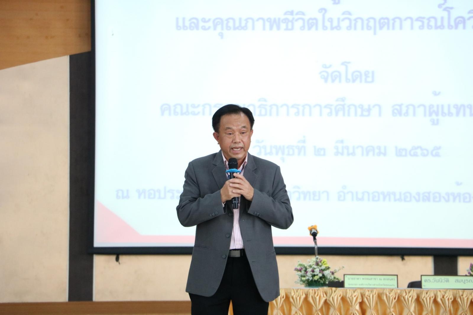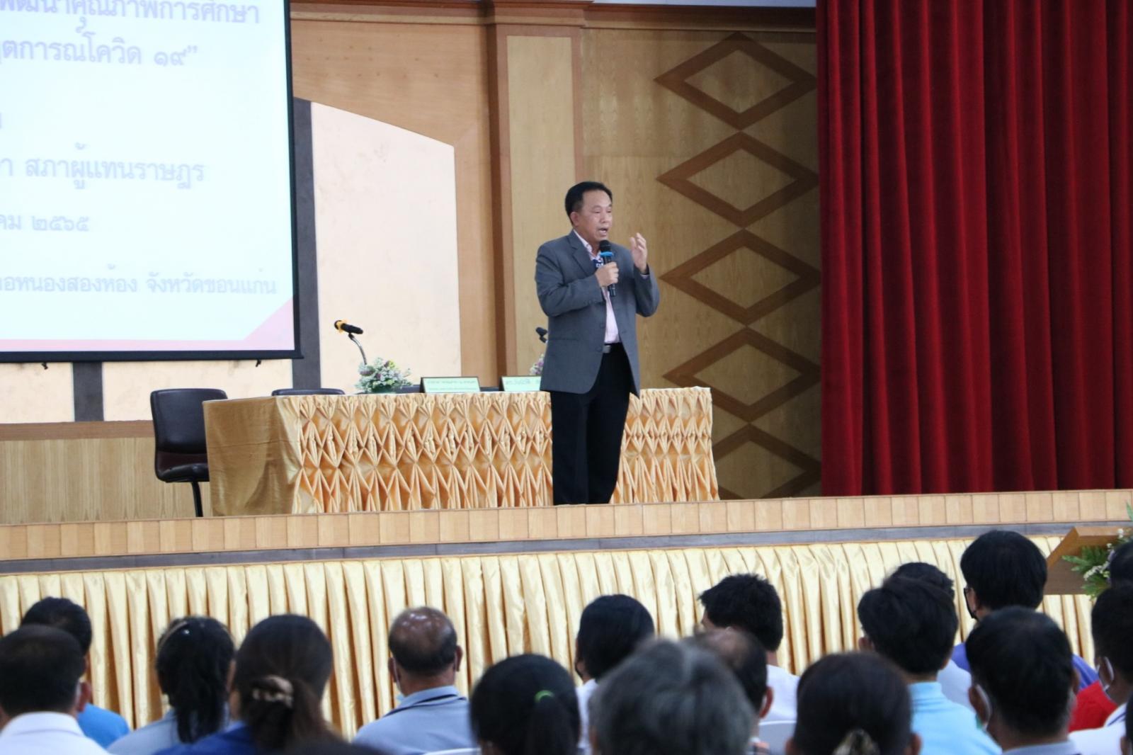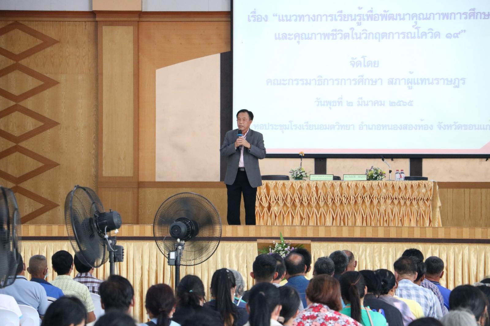 เมื่อวันที่ 1 มีนาคม 2565 เวลา 09.00 น. ดร.พงษ์ศักดิ์ ตั้งวานิชกพงษ์ นายก อบจ.ขอนแก่น มอบหมายให้ นายธาดา พรหมสาขา ณ สกลนคร รองนายก อบจ.ขอนแก่น พร้อมด้วย นายศิริชัย ฉัตรชัยพลรัตน์ ส.อบจ.ขก อ.หนองสองห้อง เขต 1, นายณัฐพล กลุ่มเหรียญทอง ส.อบจ.ขก อ.หนองสองห้อง เขต 2 และนายศรัญ กสิกิจวร-กุล ส.อบจ.ขก อ.โนนศิลา เข้าร่วมเป็นวิทยากร การสัมมนาในหัวข้อเรื่อง “แนวทางการเรียนรู้เพื่อพัฒนาคุณภาพการศึกษาและคุณภาพชีวิตในวิกฤตการณ์โควิด 19” โดยมี ดร.วันนิวัติ สมบูรณ์ สส.จังหวัดขอนแก่น เขต 9 เป็นประธานในพิธี และดร.รัตนาภรณ์ สมบูรณ์ ผู้อำนวยการโรงเรียนอมตวิทยา เป็นผู้กล่าวต้อนรับ ในโอกาสนี้ได้รับเกียรติจาก ผู้แทนจากหน่วยงานภาครัฐในพื้นที่อำเภอหนองสองห้อง รวมถึงตัวแทนจากภาคประชาชน อาสาสมัครสาธารณสุขประจำหมู่บ้าน(อสม.) เข้าร่วมพิธี ในครั้งนี้ ณ หอประชุมโรงเรียนอมตวิทยา