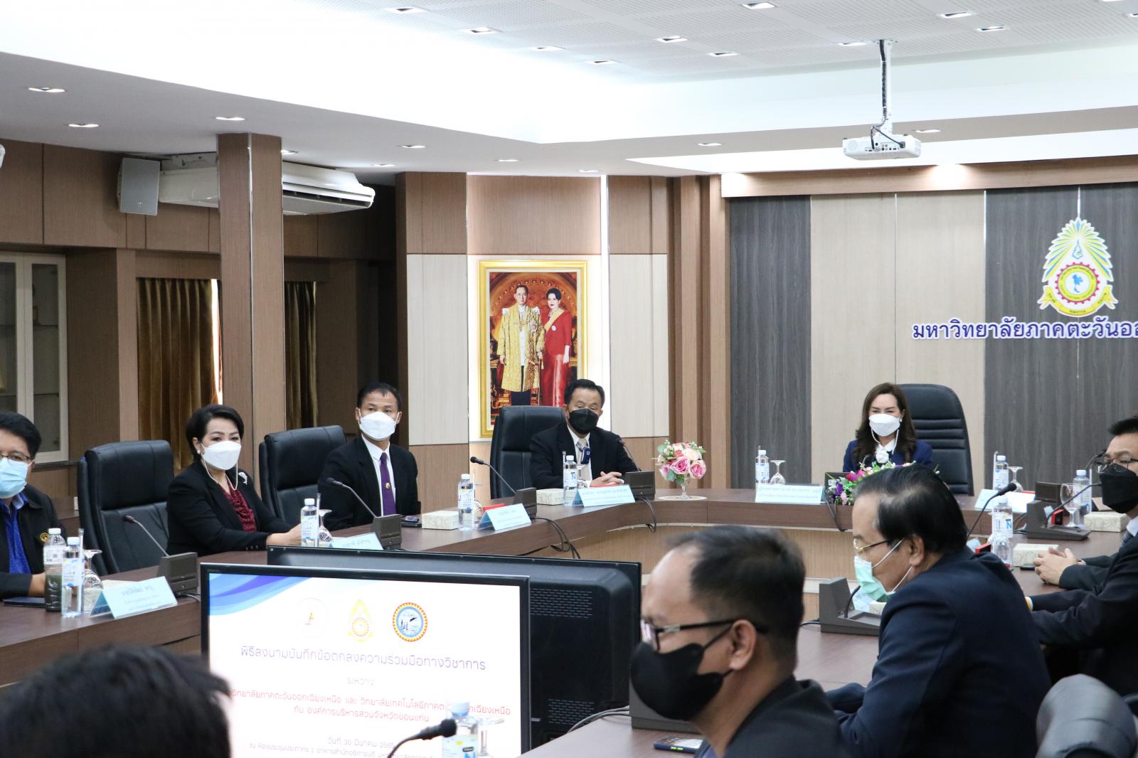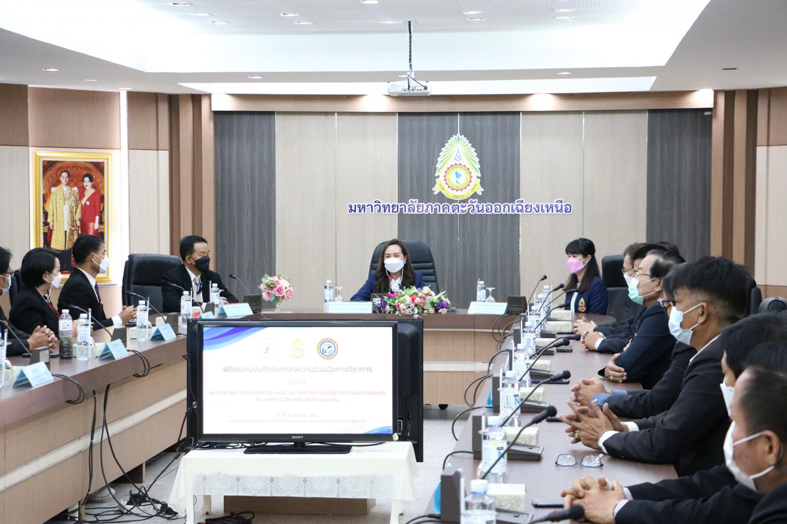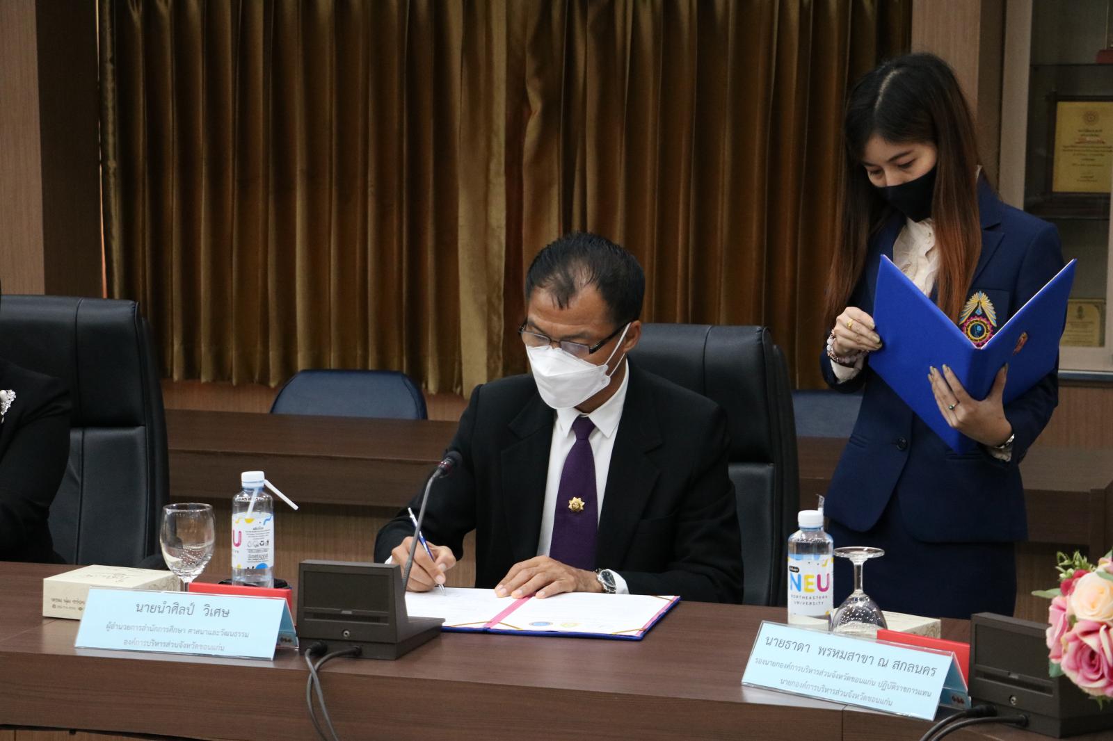 เมื่อวันที่ 30 มีนาคม 2565 เวลา 10.00 น. ดร.พงษ์ศักดิ์ ตั้งวานิชกพงษ์ นายก อบจ.ขอนแก่น มอบหมายให้ นายธาดา พรหมสาขา ณ สกลนคร รองนายก อบจ.ขอนแก่น พร้อมด้วย นายนำศิลป์ วิเศษ ผอ.สำนักการศึกษา ศาสนาและวัฒนธรรม, นางสุภาวดี แก้วสำราญ ผู้อำนวยการส่วนบริหารการศึกษา, ข้าราชการสังกัด อบจ.ขอนแก่น และคณะผู้บริหารสถานศึกษาในสังกัด อบจ.ขอนแก่น ร่วมลงนามข้อตกลงความร่วมมือเพื่อพัฒนางานด้านการส่งเสริมและให้ความรู้ในการพัฒนาคุณภาพการศึกษา พัฒนาด้านวิชาการ ด้านบุคลากร และพัฒนาชุมชน โดยมี ผศ.ดร.กนกอร บุญมี อธิการบดีมหาวิทยาลัยภาคตะวันออกเฉียงเหนือ เป็นประธาน ในโอกาสนี้ได้มีคณะผู้บริหารจากมหาวิทยาลัยภาคตะวันออกเฉียงเหนือเข้าร่วมเป็นพยานลงนาม ณ ห้องประชุมประภากร 2 อาคารสำนักอธิการบดี มหาวิทยาลัยภาคตะวันออกเฉียงเหนือ อ.เมืองขอนแก่น จ.ขอนแก่น