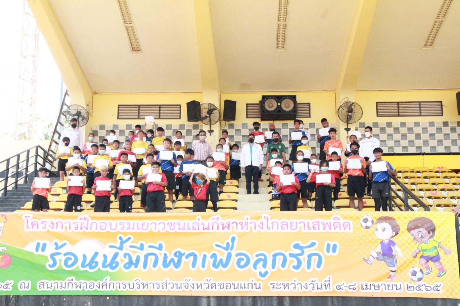 เมื่อวันที่ 8 เมษายน 2565 เวลา 15.00 น. ดร.พงษ์ศักดิ์ ตั้งวานิชกพงษ์ นายก อบจ.ขอนแก่น มอบหมายให้ นายประสิทธิ์ ทองแท่งไทย เป็นประธานในพิธีปิดและมอบใบประกาศนียบัตรโครงการฝึกอบรมเยาวชนเล่นกีฬาห่างไกลยาเสพติด “ร้อนนี้มีกีฬาเพื่อลูกรัก” ประจำปี 2565 เพื่อส่งเสริมให้เยาวชนใช้เวลาว่างให้เกิดประโยชน์ ณ สนามฟุตบอลสนามกีฬาองค์การบริหารส่วนจังหวัดขอนแก่น