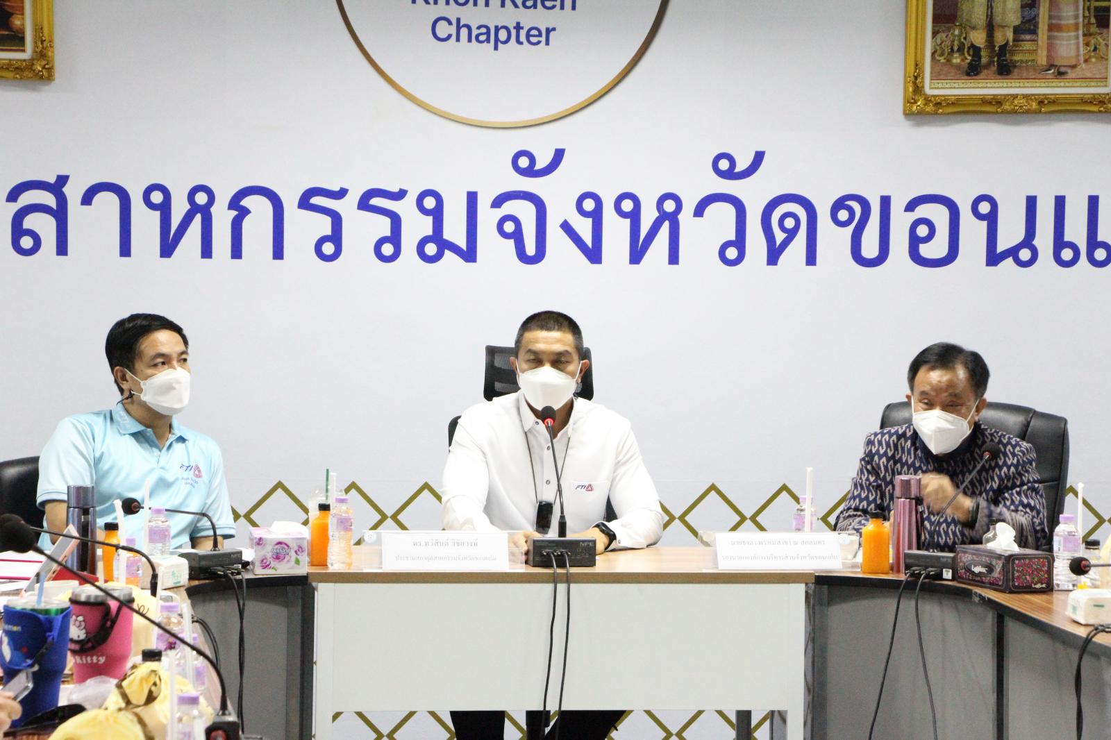 เมื่อวันที่ 27 เมษายน 2565 เวลา 13.30 น. ดร.พงษ์ศักดิ์ ตั้งวานิชกพงษ์ นายก อบจ.ขอนแก่น มอบหมายให้ นายธาดา พรหมสาขา ณ สกลนคร รองนายก อบจ.ขอนแก่น เข้าร่วมประชุมประจำเดือนเมษายน 2565 พร้อมนำเสนอโครงการจีโอปาร์คสู่การเป็นอุทยานธรณีโลก โดยมี ดร.ทวีสันต์ วิชัยวงษ์ ประธานสภาอุตสาหกรรมจังหวัดขอนแก่น เป็นประธานในการประชุม พร้อมด้วยคณะกรรมการบริหารสภาอุตสาหกรรมจังหวัดขอนแก่น และที่ปรึกษาสภาอุตสาหกรรมจังหวัดขอนแก่น รวมไปถึงผู้แทนจากธนาคารออมสิน จังหวัดขอนแก่น ผู้แทนจากภาคเอกชน อาทิ สมาคมธุรกิจการท่องเที่ยวจังหวัดขอนแก่น เข้าร่วมประชุมในครั้งนี้ ณ ห้องประชุมศิริธนชัย ชั้น 2 สภาอุตสาหกรรม จังหวัดขอนแก่น