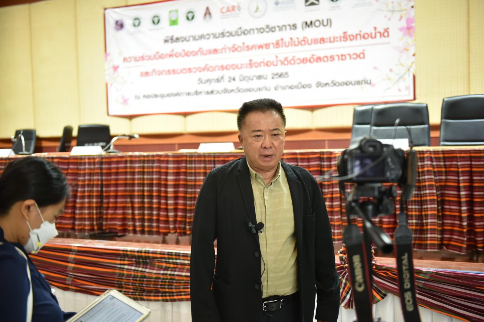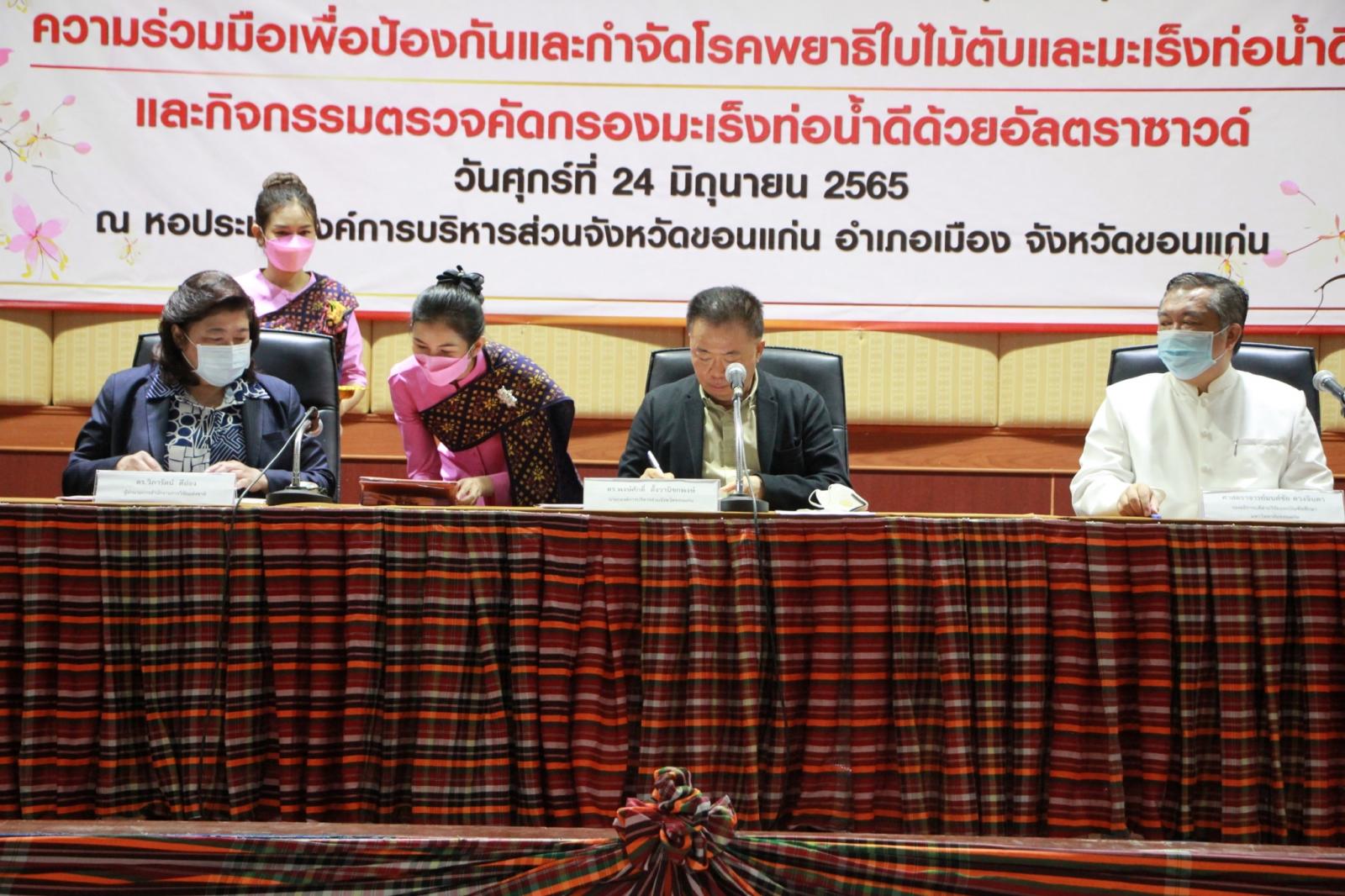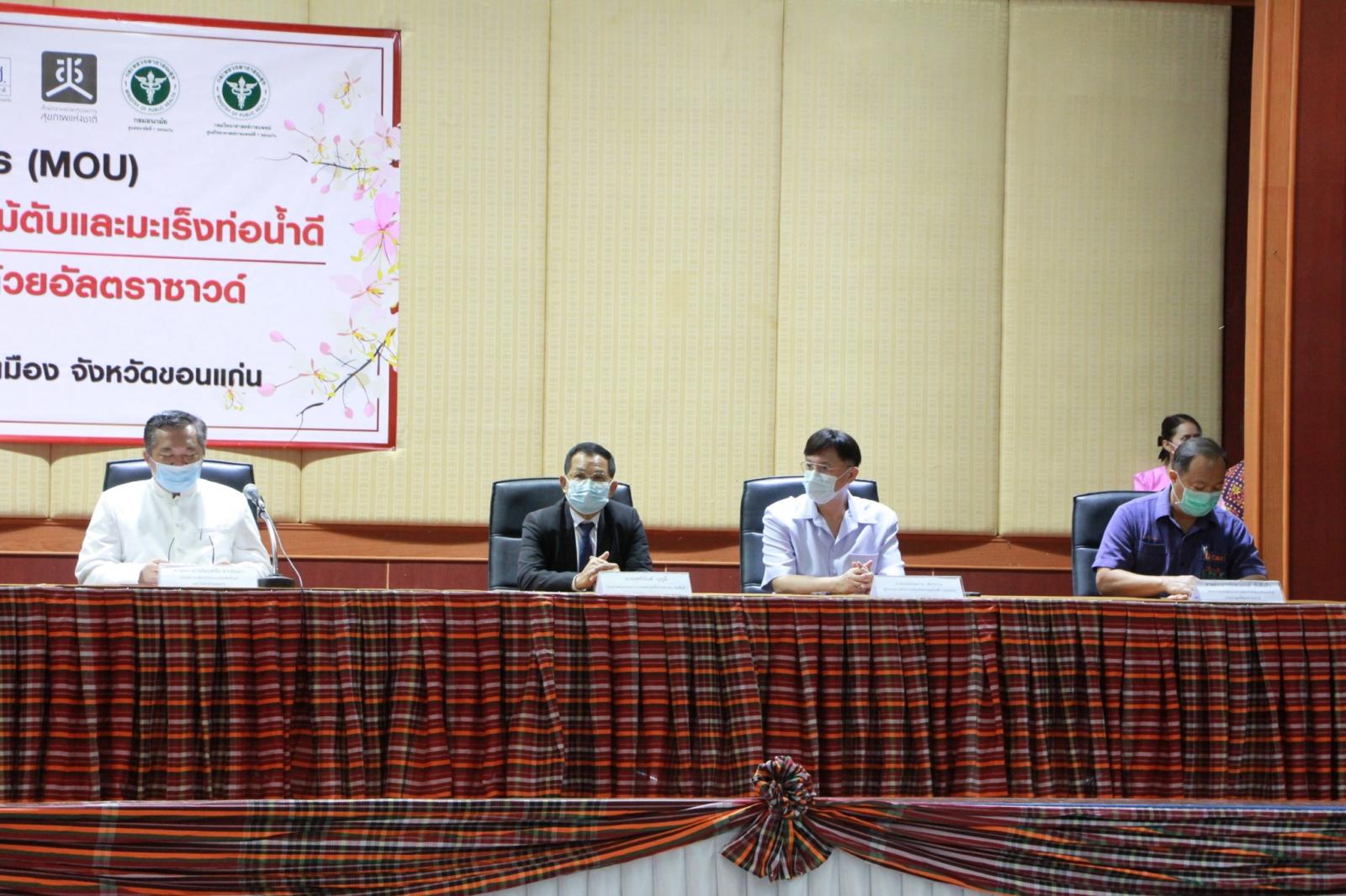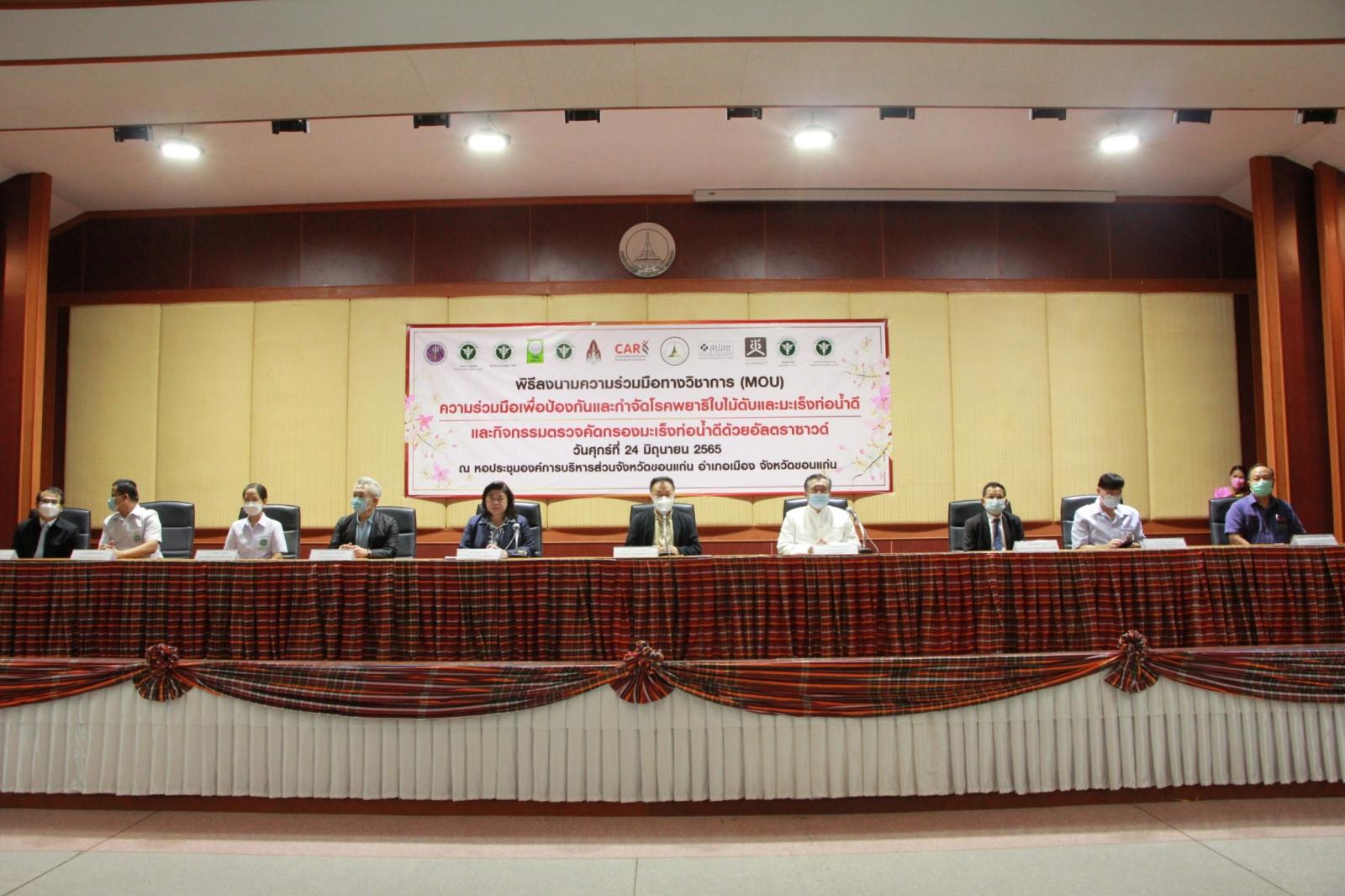 เมื่อวันที่ 24 มิถุนายน 2565 เวลา 09.00 น. ดร.พงษ์ศักดิ์ ตั้งวานิชกพงษ์ นายก อบจ.ขอนแก่น กล่าวถึงนโยบายขององค์การบริหารส่วนจังหวัดขอนแก่น เกี่ยวกับการแก้ไขปัญหาโรคพยาธิใบไม้ตับ และมะเร็งท่อน้ำดี ในพิธีลงนามความร่วมมือทางวิชาการ MOU ความร่วมมือเพื่อป้องกันและกำจัดโรคพยาธิใบไม้ตับและมะเร็งท่อน้ำดี และกิจกรรมตรวจคัดกรองมะเร็งท่อน้ำดีด้วยอัลตราซาวด์ โดยมี ศ.ดร.มนต์ชัย ดวงจินดา รองอธิการบดีฝ่ายวิขันและบัณฑิตศึกษา มข. กล่าวถึงการดำเนินงานเพื่อการแก้ไขปัญหาโรคพยาธิใบไม้ตับและมะเร็งท่อน้ำดี ของมหาวิทยาลัยขอนแก่น, ดร.วิภารัตน์ ดีอ่อง ผอ.สำนักงานการวิจัยแห่งชาติ กล่างถึงการสนับสนุนการดำเนินโครงการวิจัยท้าทานไทย : ประเทศไทยไร้พยาธิใบไม้ตับ ของสำนักงานการวิจัยแห่งชาติ และผู้แทนจากหน่วยงานที่เกี่ยวข้อง ร่วมลงนาม MOU ในโอกาสนี้มี นายสิทธิกุล ภูคำวงศ์, นายธาดา พรหมสาขา ณ สกลนคร, นายประสิทธิ์ ทองแท่งไทย รองนายก อบจ.ขอนแก่น ,ด.ต.พิชิต ศรีวิไล เลขานุการสภา อบจ.ขอนแก่น ,ว่าที่ร้อยเอกพงเจตน์ พรกุณา ปลัด อบจ.ขอนแก่น พร้อมด้วย คณะผู้บริหาร หัวหน้าส่วนราชการ ข้าราชการ อบจ.ขอนแก่น เข้าร่วมเป็นเกียรติในพิธี ณ หอประชุมองค์การบริหารส่วนจังหวัดขอนแก่น อ.เมืองขอนแก่น จ.ขอนแก่น