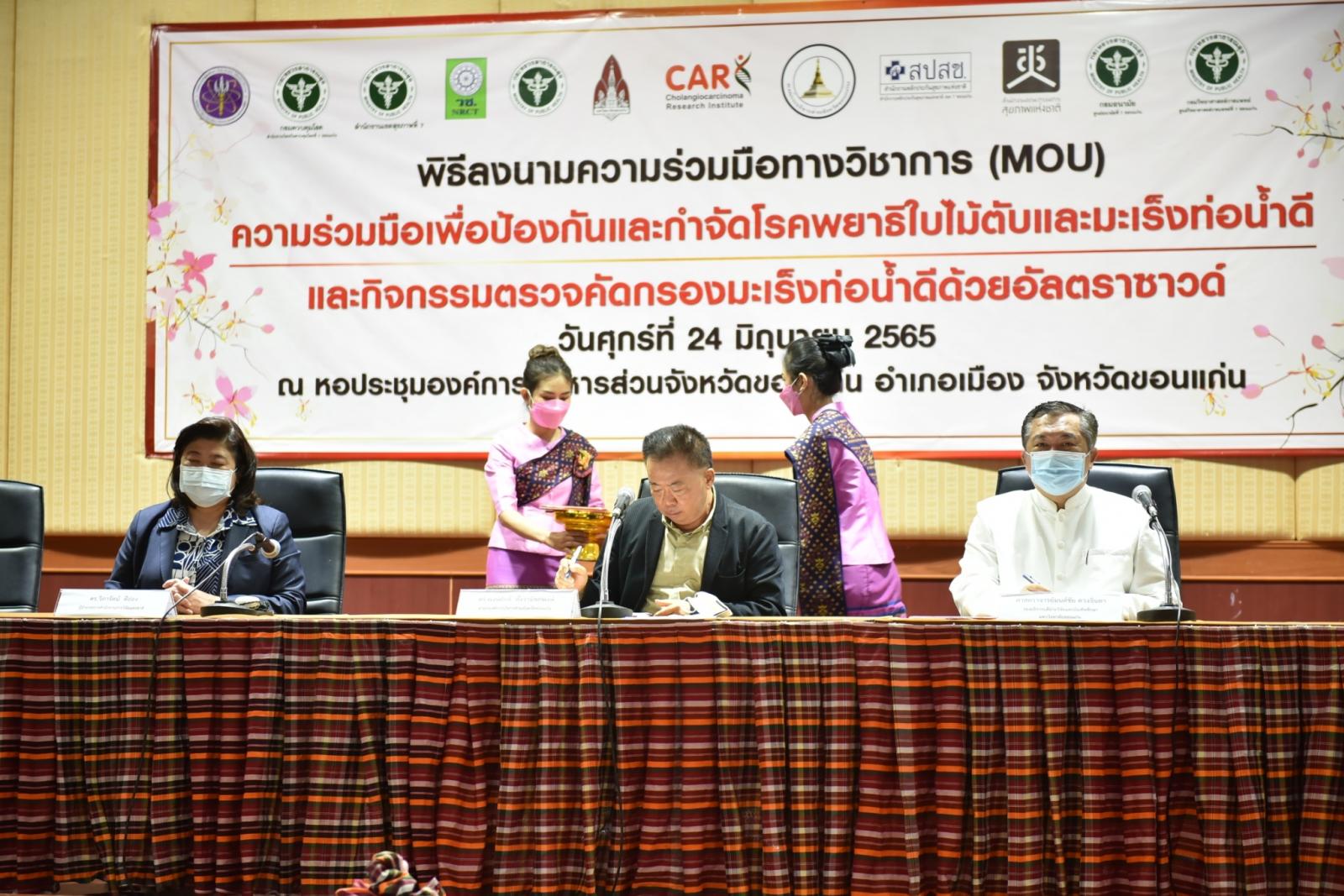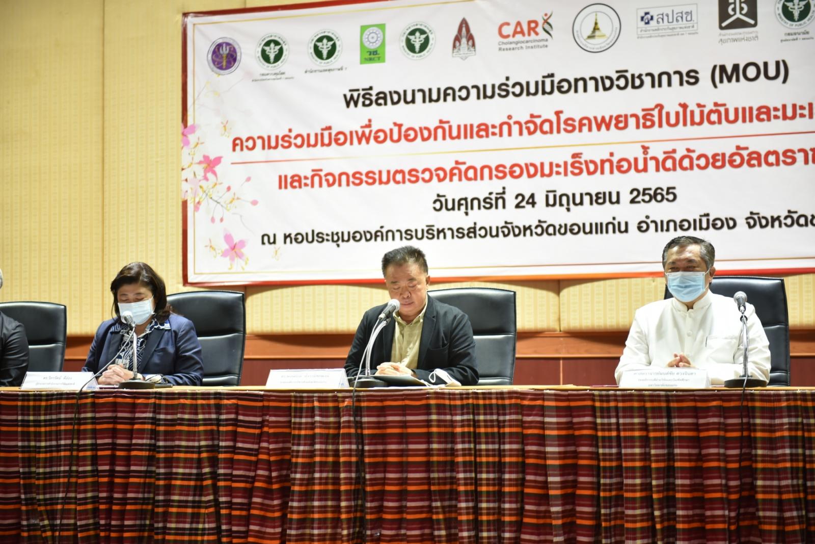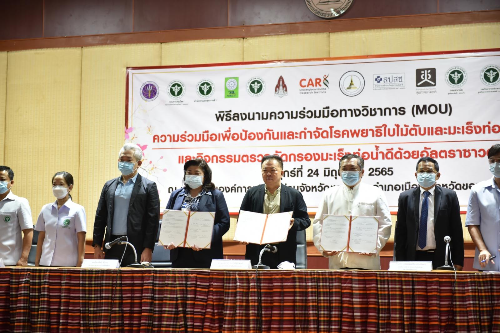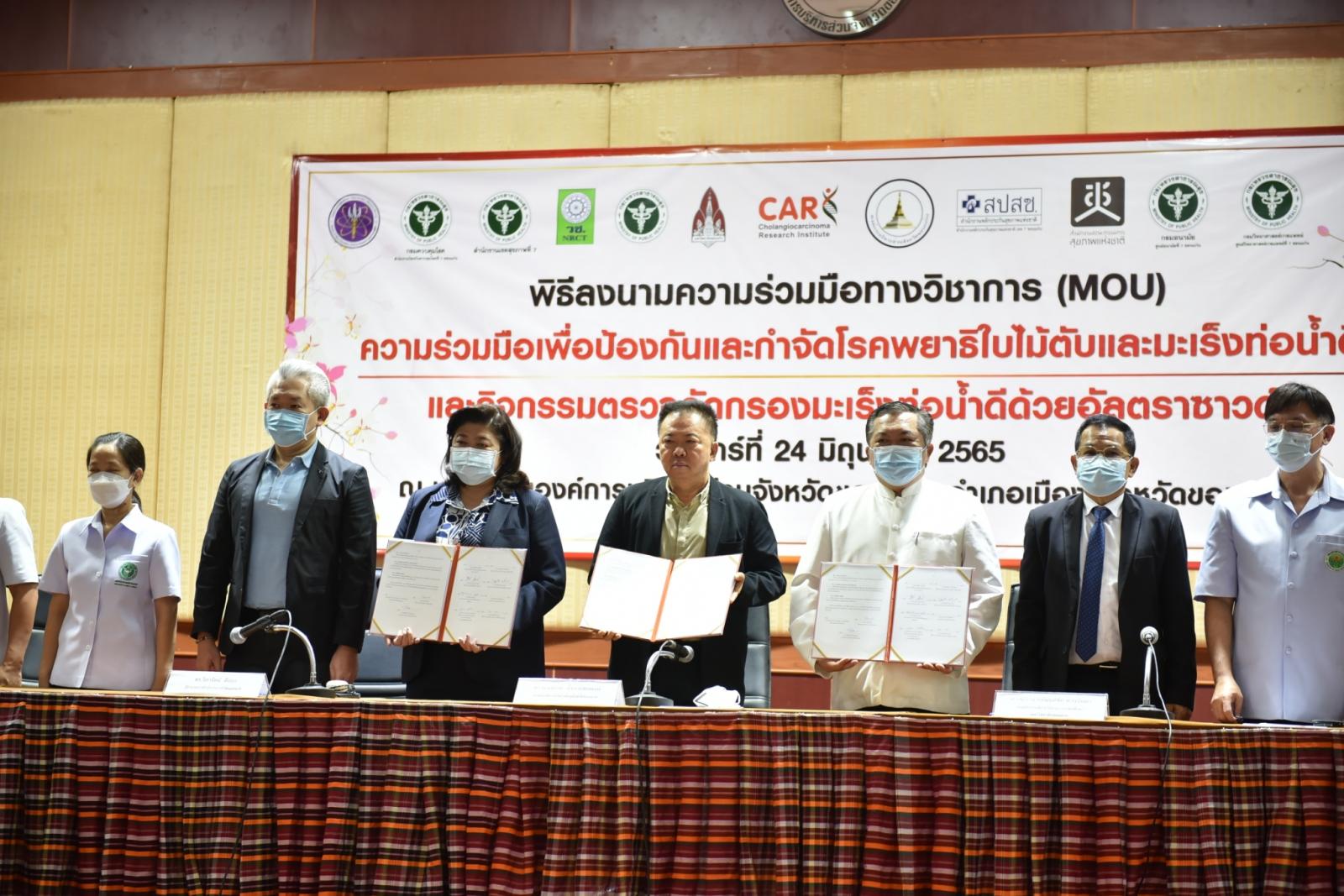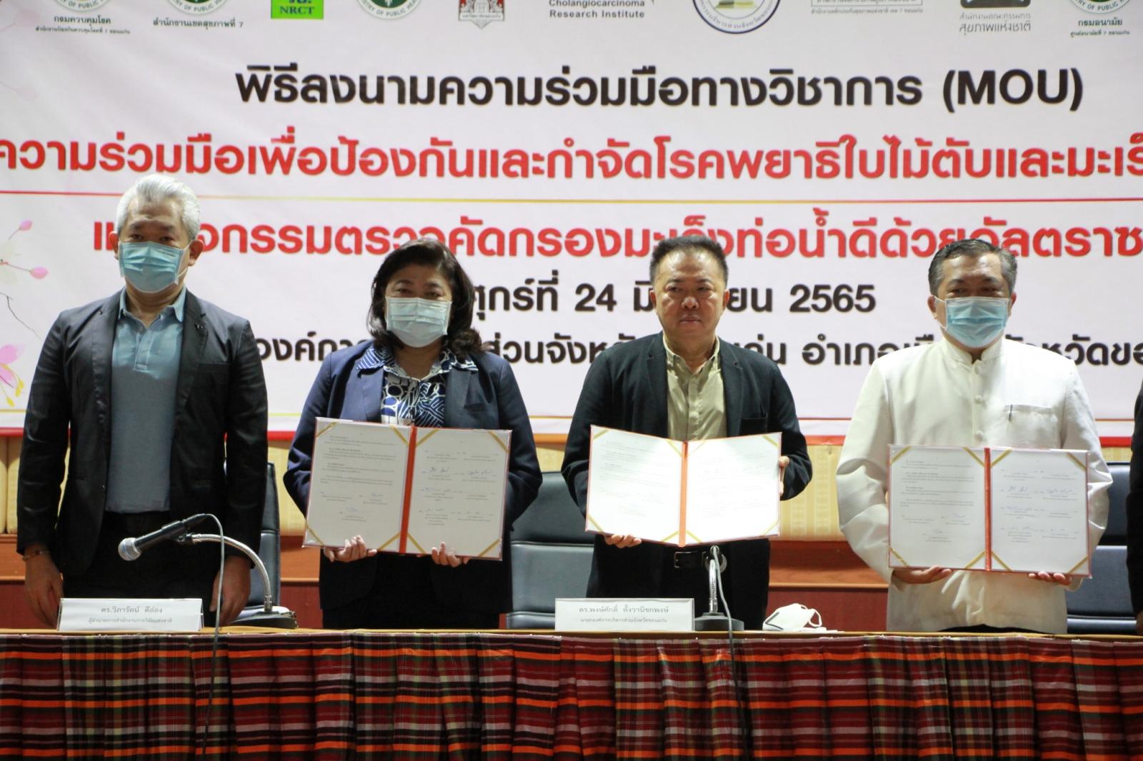 พิธีลงนามความร่วมมือทางวิชาการ MOU ความร่วมมือเพื่อป้องกันและกำจัดโรคพยาธิใบไม้ตับและมะเร็งท่อน้ำดี แ