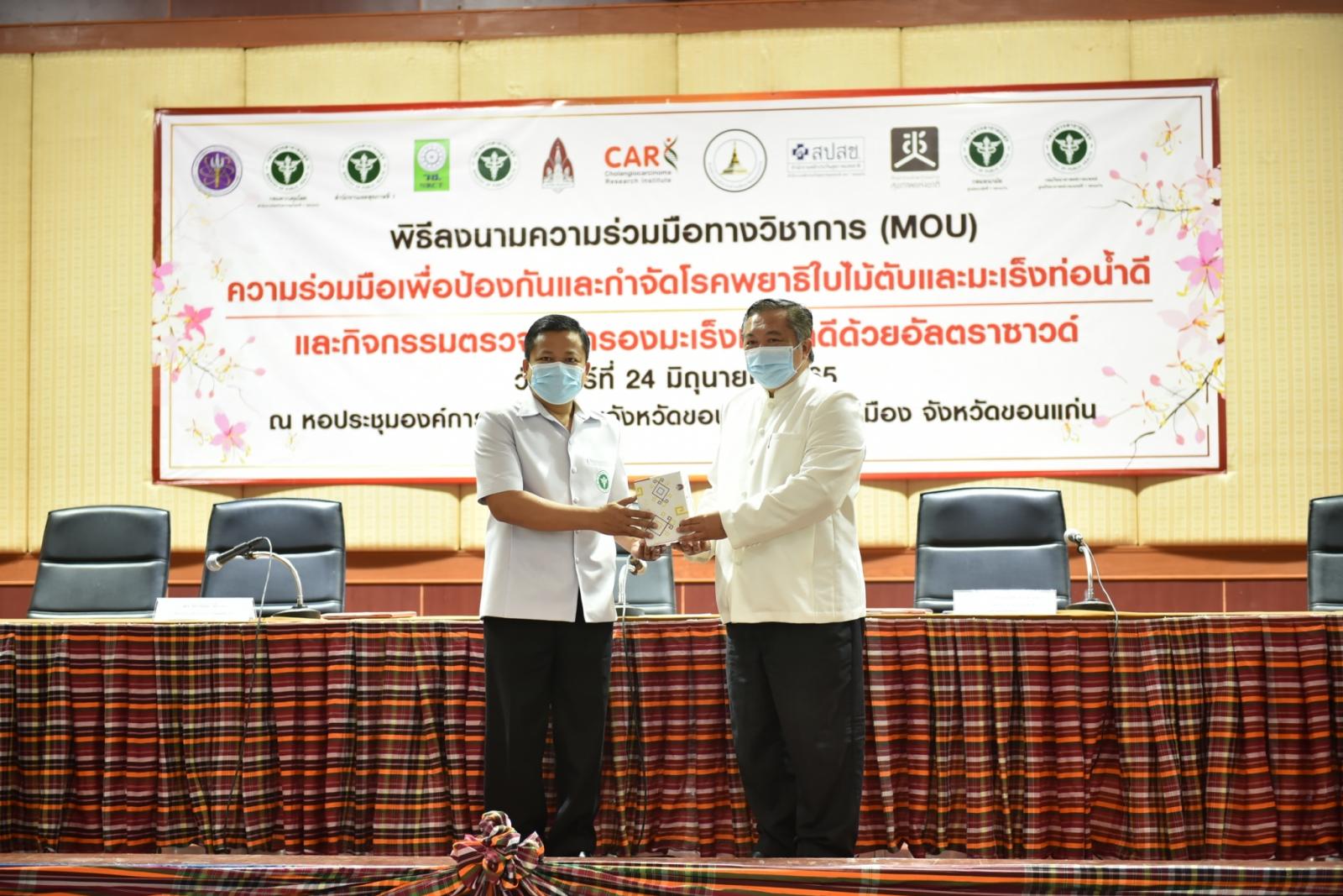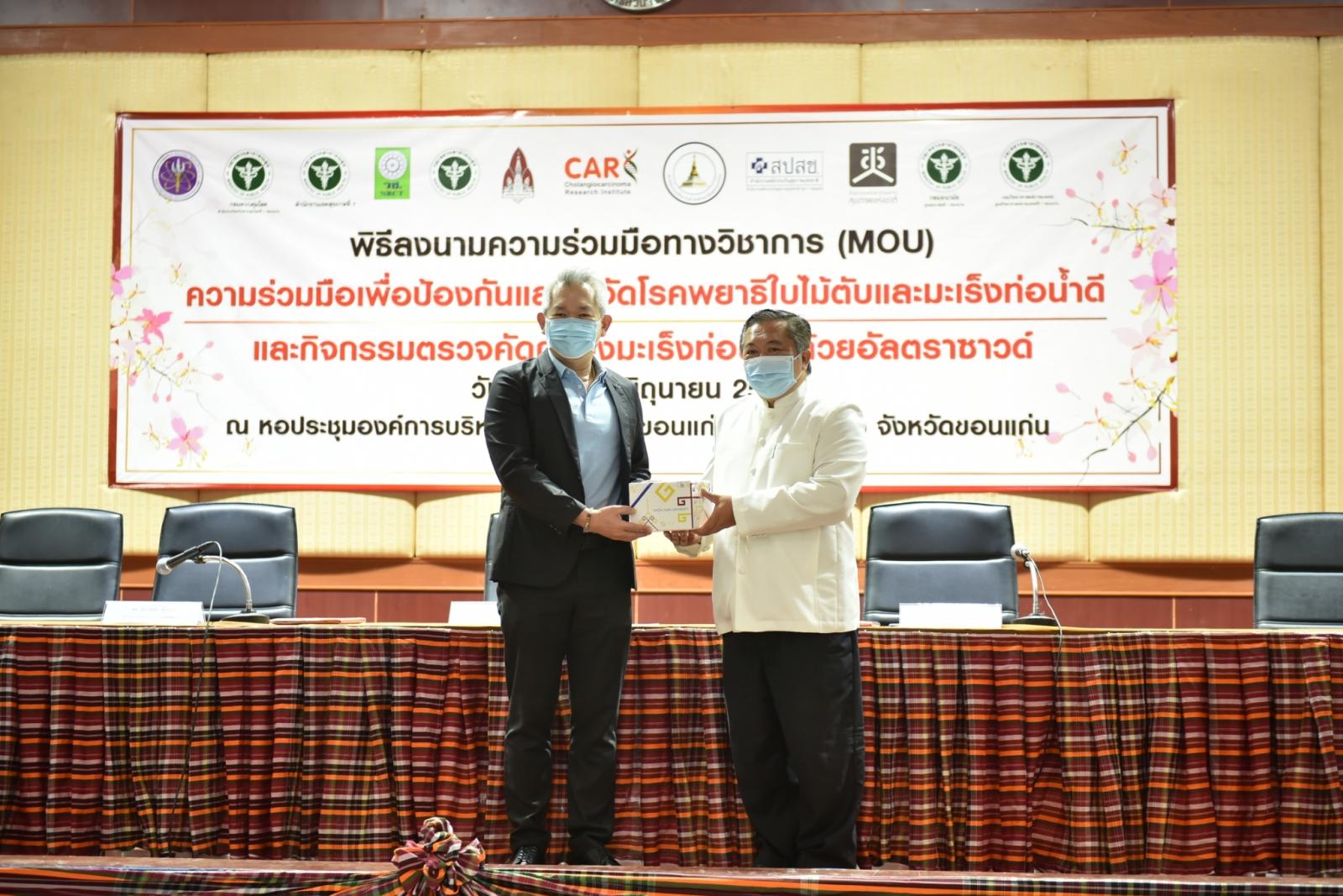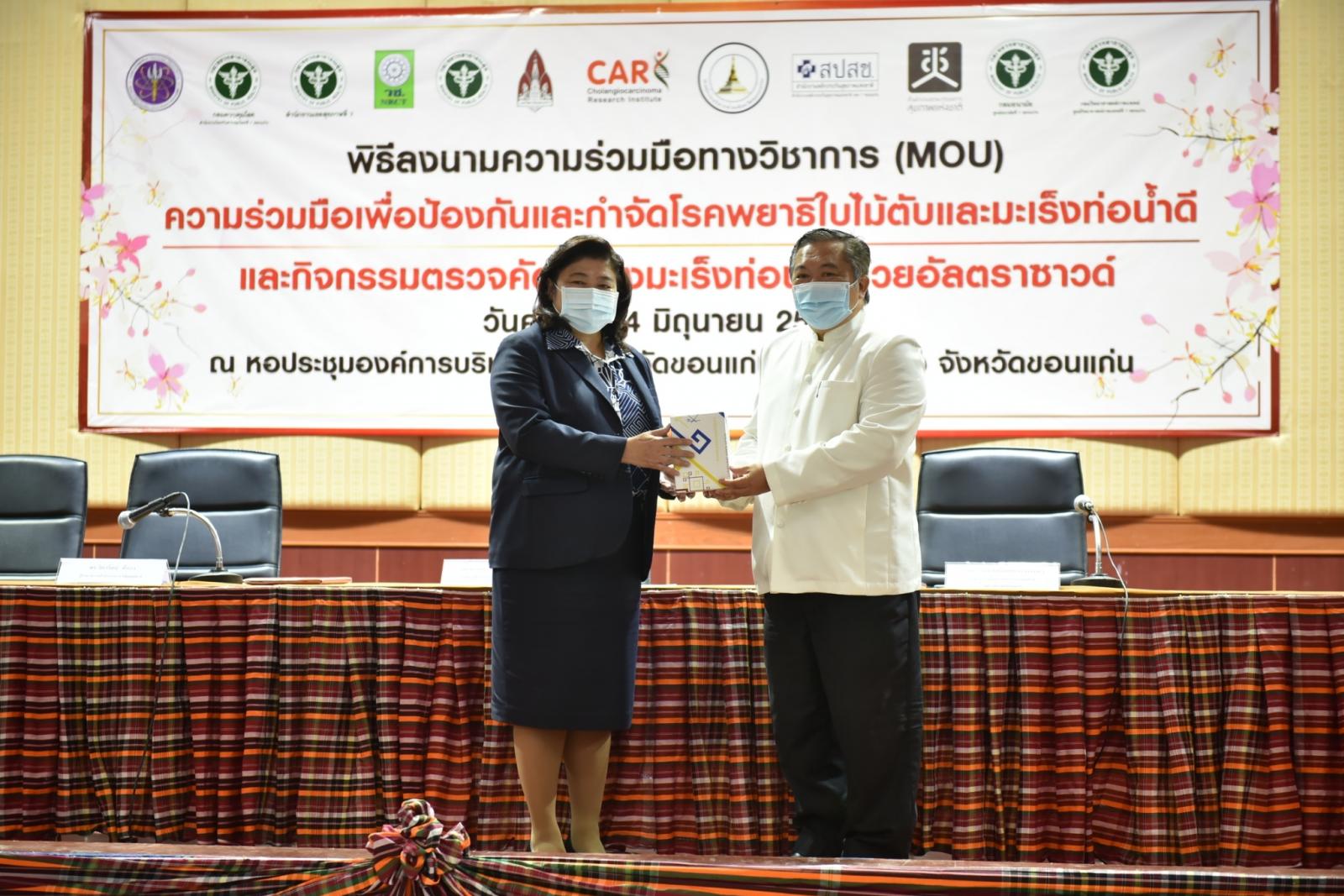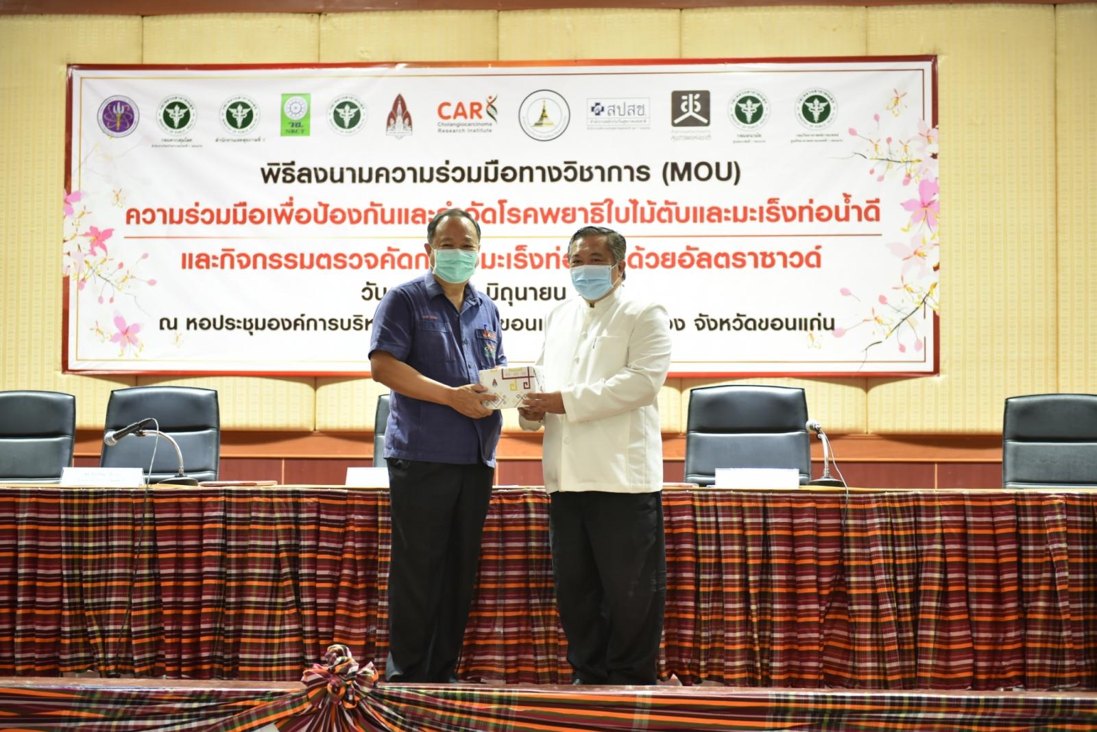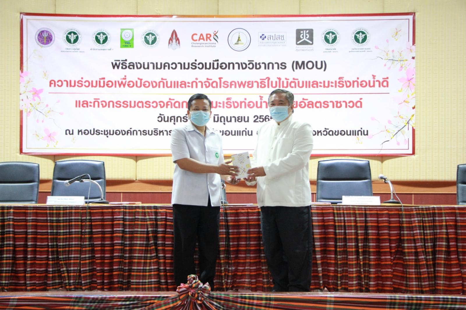 พิธีลงนามความร่วมมือทางวิชาการ MOU ความร่วมมือเพื่อป้องกันและกำจัดโรคพยาธิใบไม้ตับและมะเร็งท่อน้ำดี แ