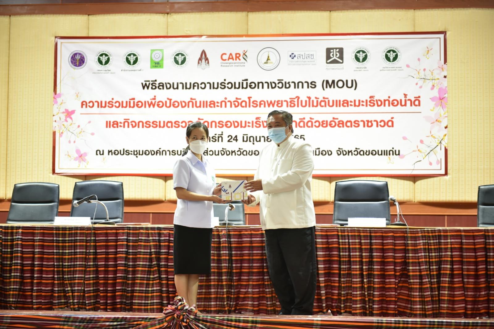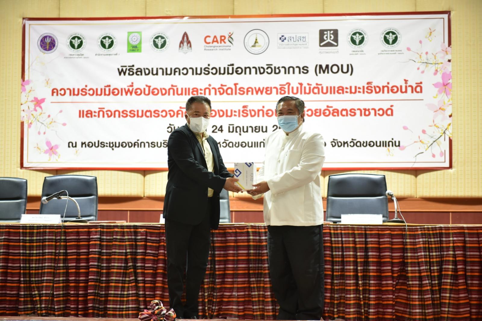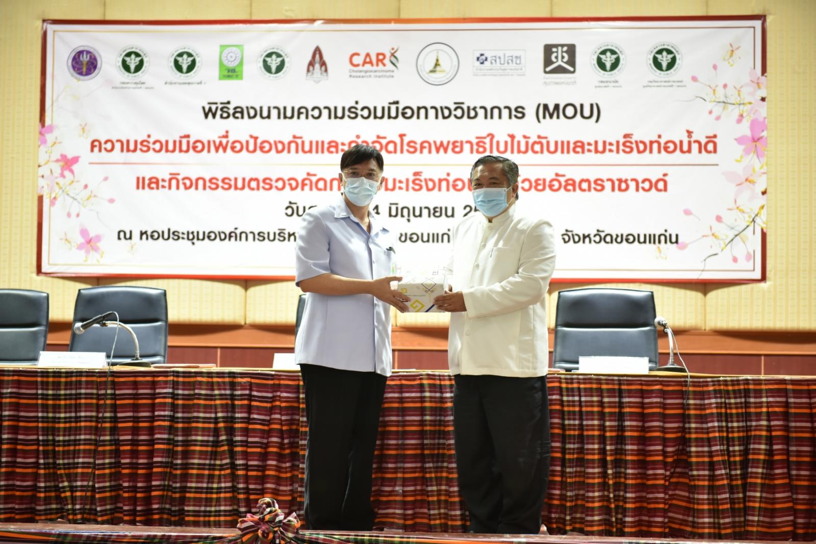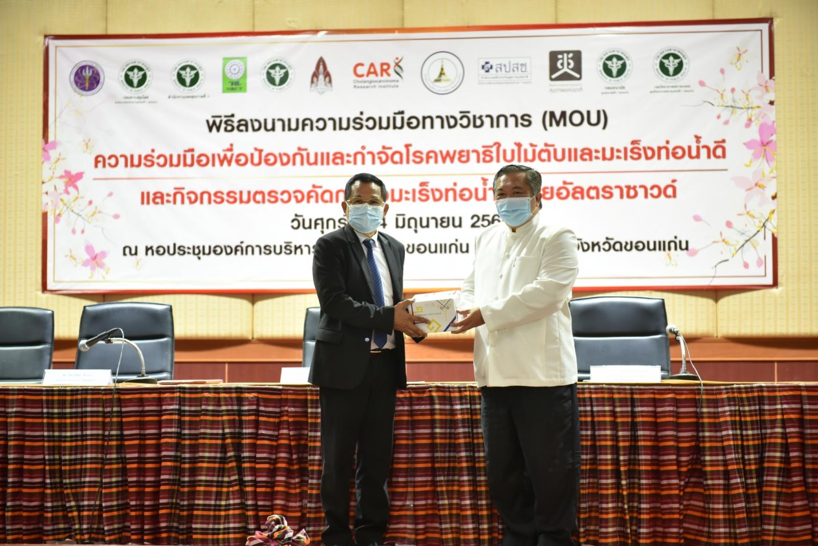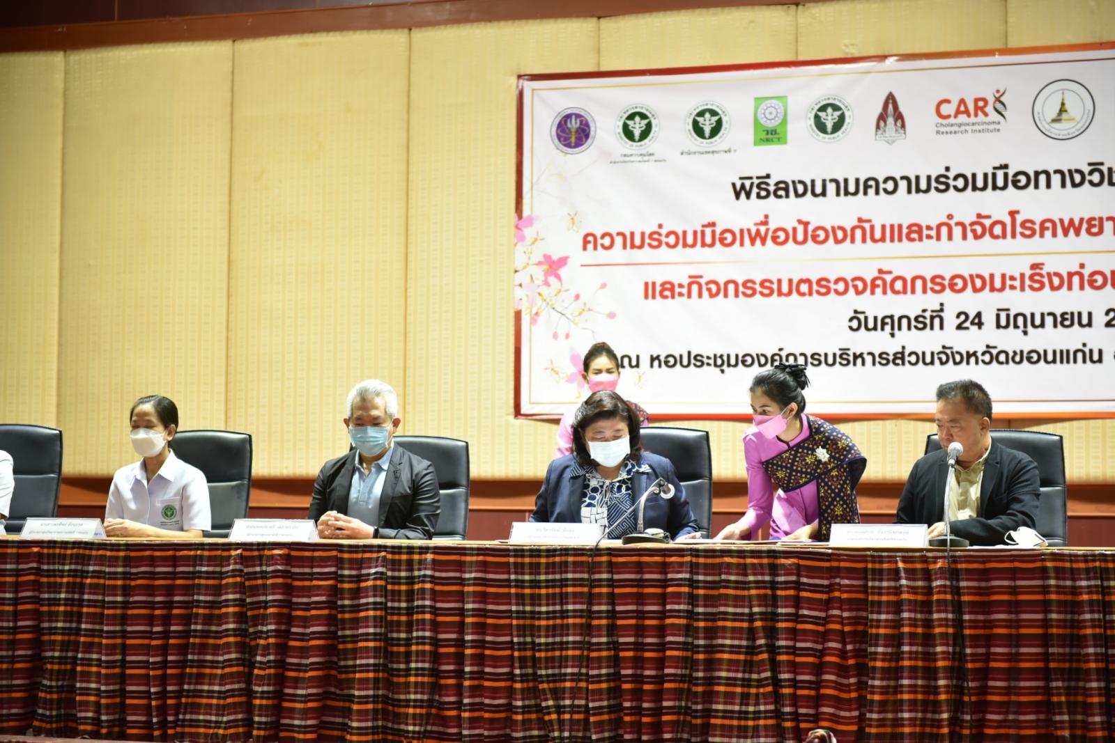 พิธีลงนามความร่วมมือทางวิชาการ MOU ความร่วมมือเพื่อป้องกันและกำจัดโรคพยาธิใบไม้ตับและมะเร็งท่อน้ำดี แ